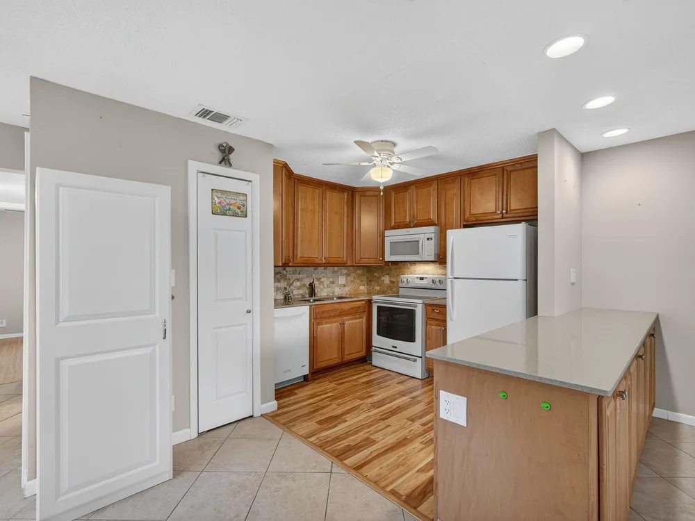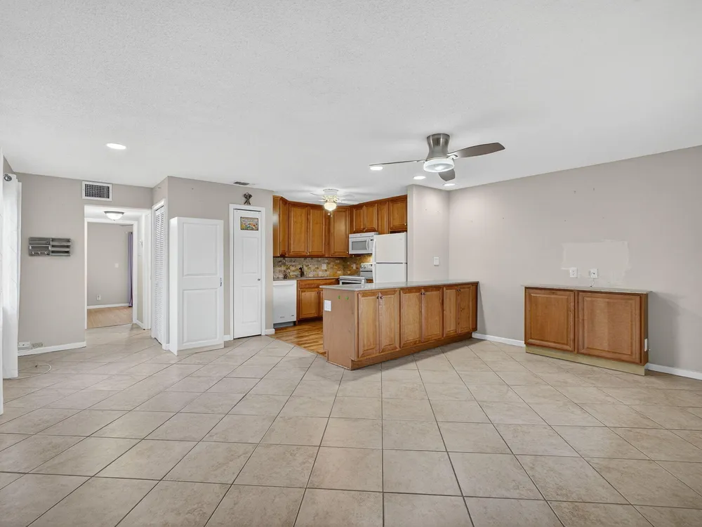 This condo offers two of the most sought-after features--an in-unit washer and dryer and central A/C--making it stand out from the rest. Located on the ground floor, this home is open, bright, and full of natural light. The updated kitchen includes a large island with cabinetry on both sides, a dishwasher, and a spacious pantry. Both bathrooms have been remodeled and the master features a walk-in shower, while the bedroom offers two walk-in closets for plenty of storage. Impact windows (except for the slider & front door) add peace of mind. A screened porch provides additional living space and convenient access to the parking lot.Don't miss this rare opportunity to own a beautifully updated condo with all the modern conveniences you've been searching for--schedule your showing today!