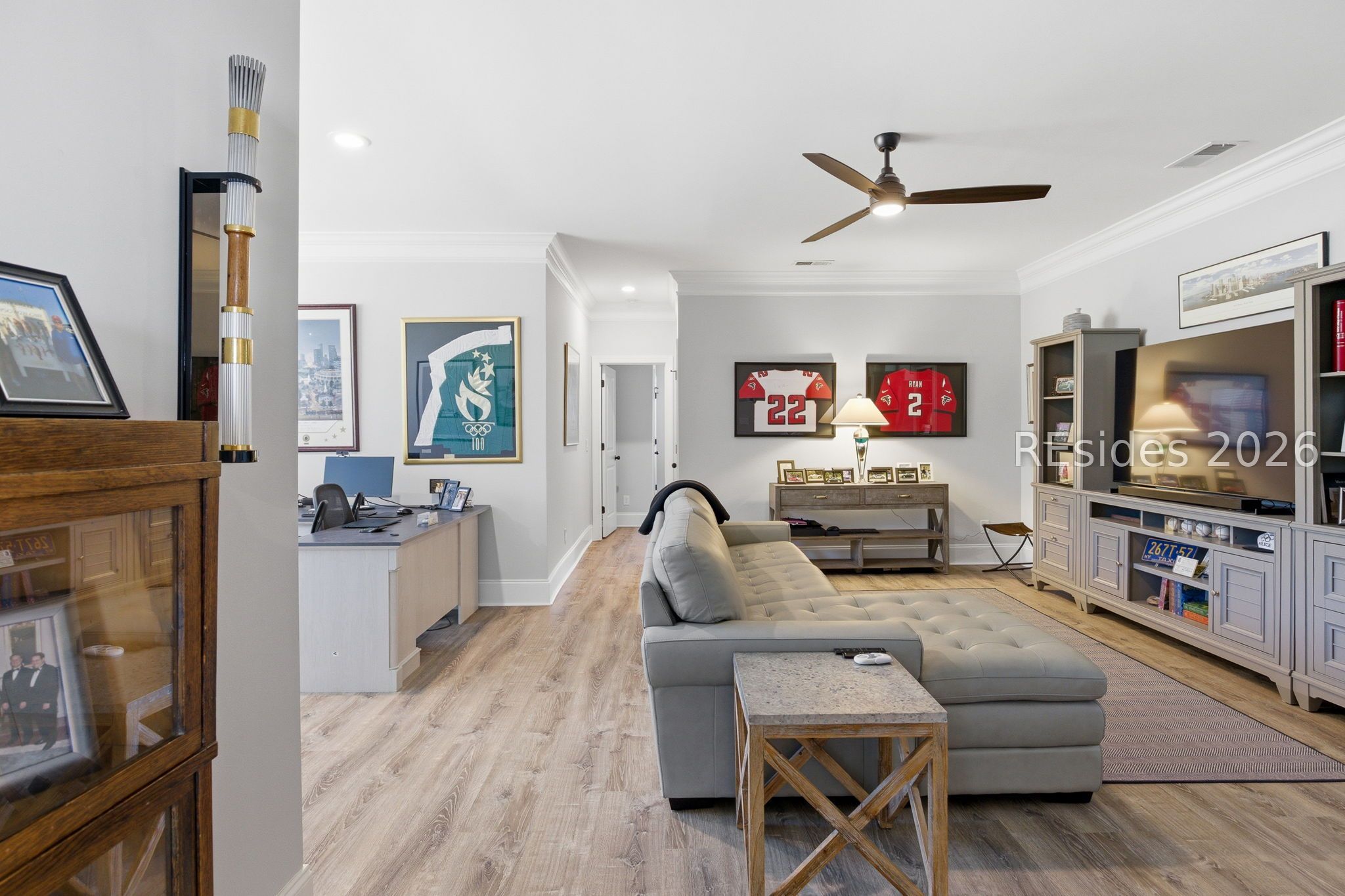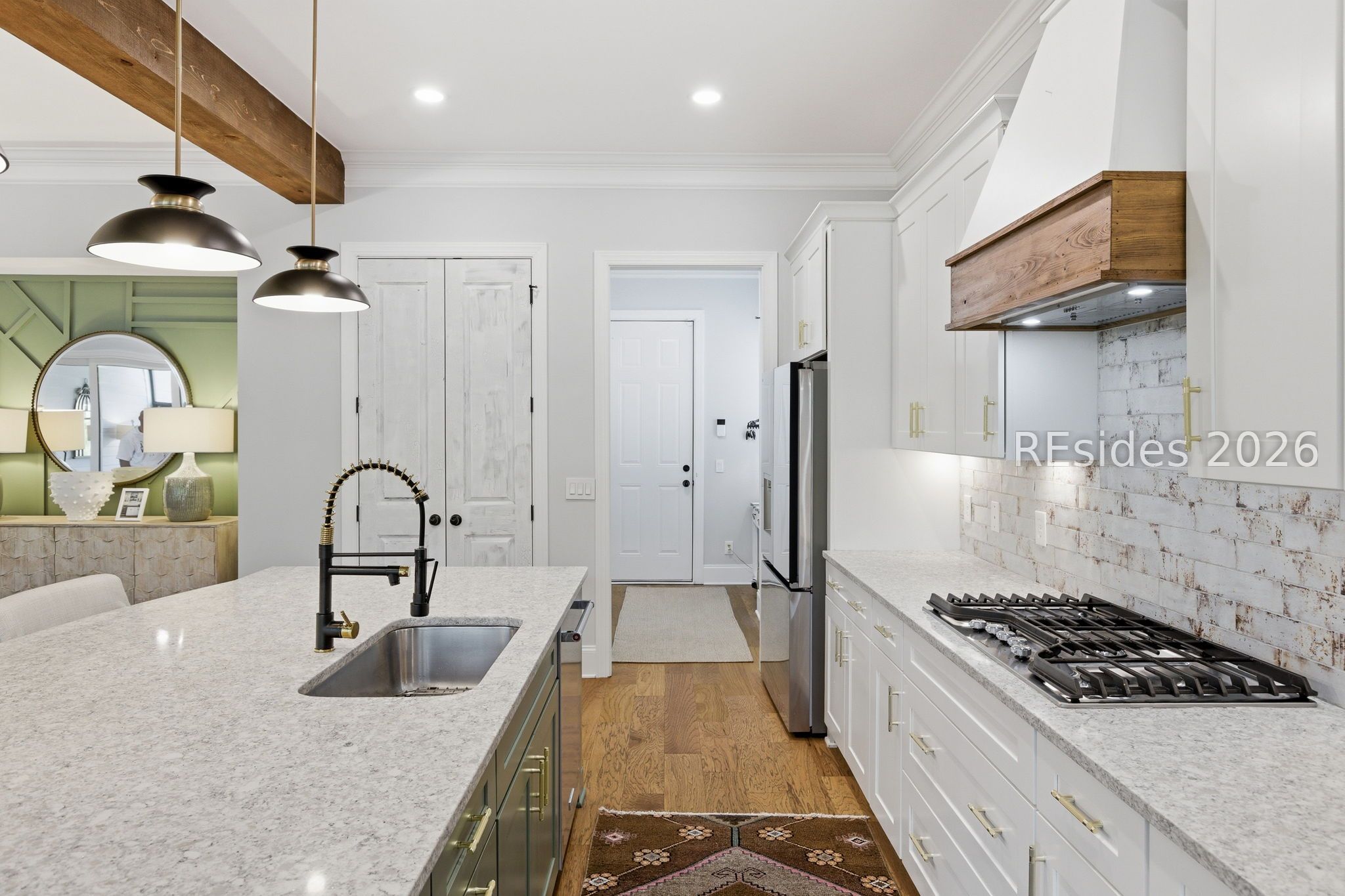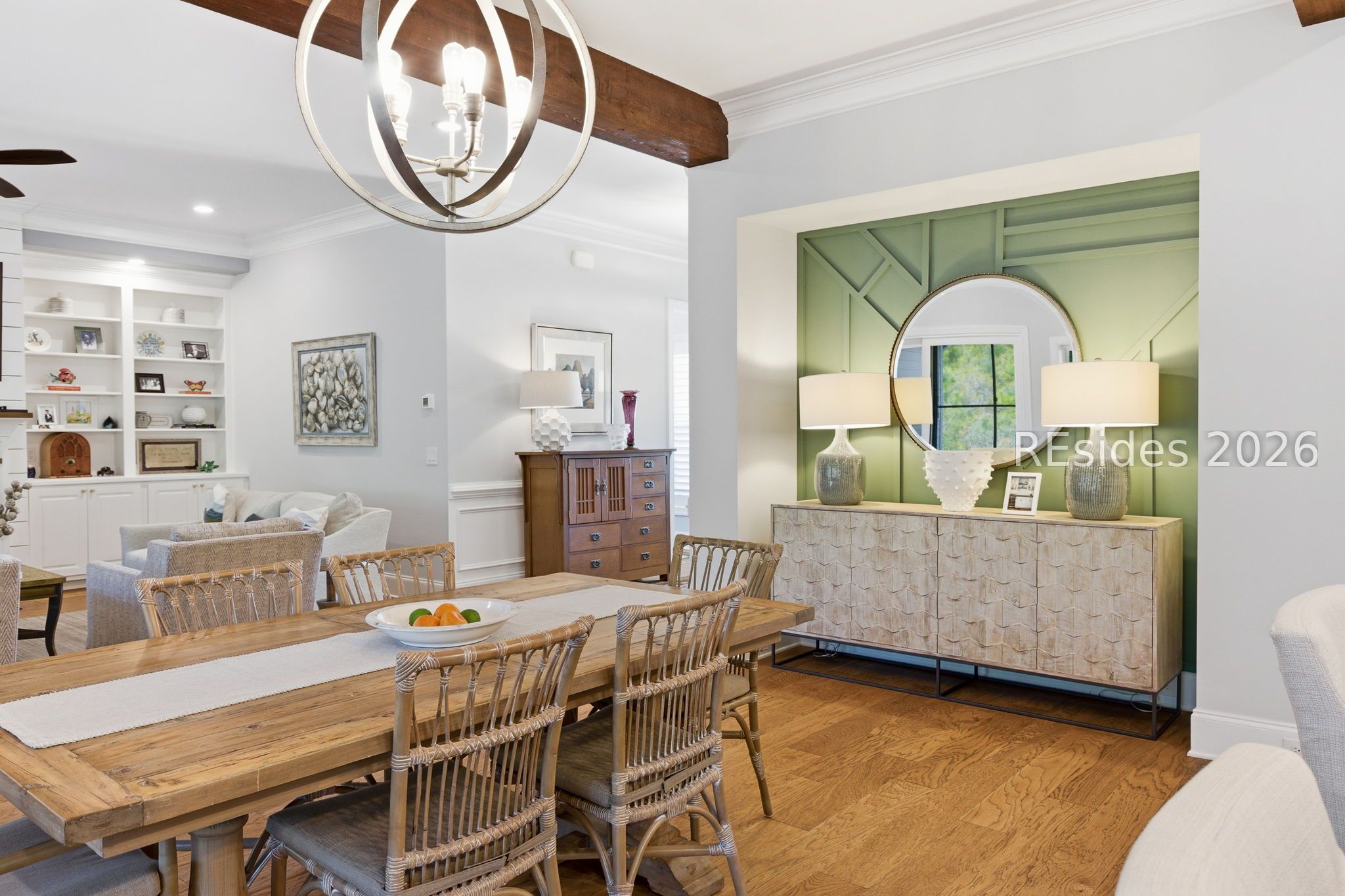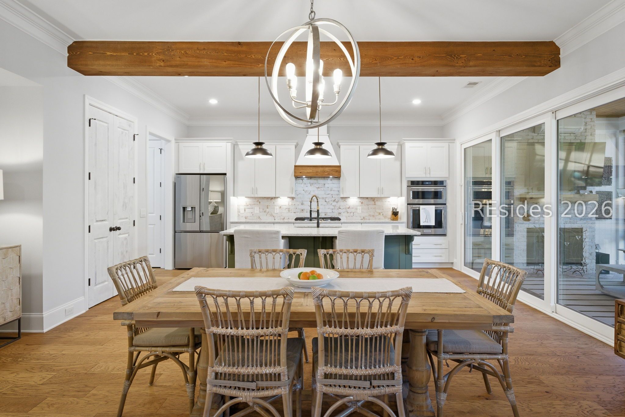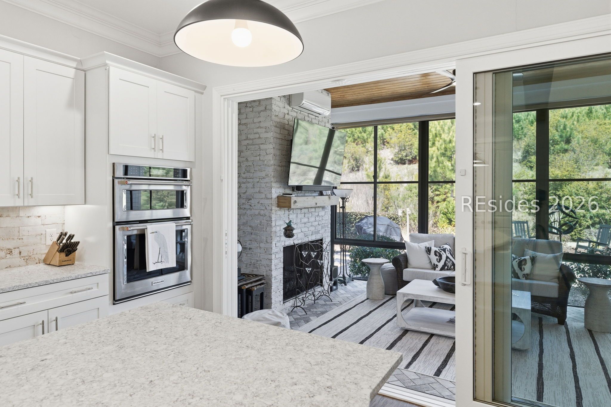 Stunning 4-bedroom residence in the award-winning Hampton Lake community-an exceptional opportunity to own a highly sought-after Logan-built Pearl model with extensive upgrades and premium finishes throughout. From the moment you enter, the open-concept design draws you in. The great room is a true focal point, featuring exposed Cypress beams, a custom wood accent wall, and a beautifully updated brick gas fireplace with shiplap detail-creating a warm, elevated space ideal for both everyday living and entertaining. The kitchen has been thoughtfully enhanced with refinished cabinetry, soft-close drawers, elegant gold hardware, and convenient roll-out shelving. A stylish dry bar with custom cabinetry adds both function and flair, making hosting effortless. The primary suite offers a private, spa-like retreat with designer tile work and a zero-entry walk-in shower. Plantation shutters throughout the home provide timeless character and privacy. The expansive 4-season lanai extends the living space year-round, complete with a Soho brick floor, fireplace, mini-split system, and updated ceiling fans-perfect for relaxing or entertaining in any season. The backyard is beautifully landscaped with vibrant flower beds and a private wooded conservation backdrop, offering both serenity and seclusion. Magnificent sunset views complete the setting. Additional highlights include custom garage cabinetry for optimal storage and organization. Homes of this caliber, condition, and level of upgrade in Hampton Lake are rarely available. Enjoy access to world-class amenities including dining, fitness, pools, and a true Lowcountry lifestyle-all within one of the area's most desirable gated communities.