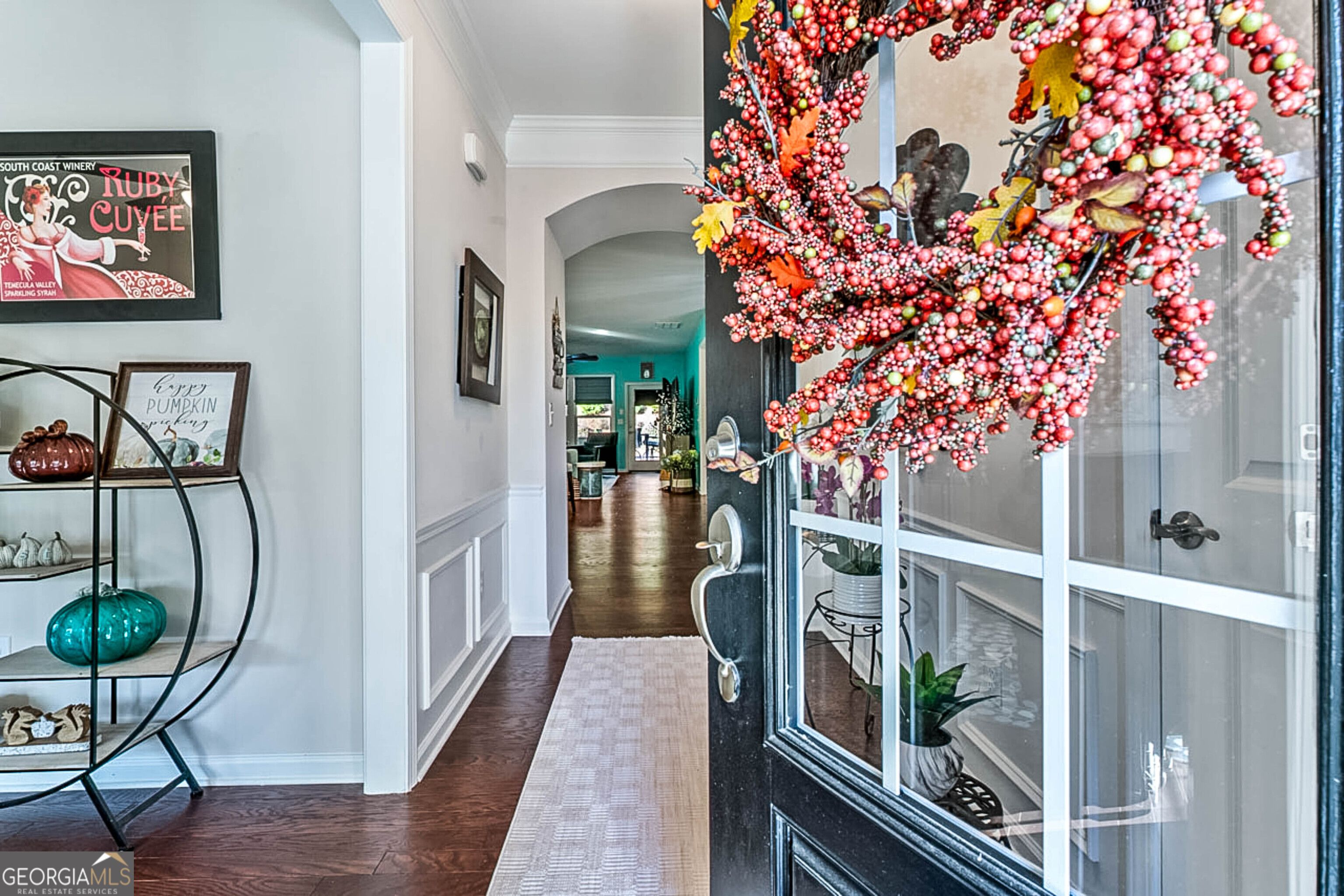 Welcome Home to the highly sought after Martin Ray floor plan in the 55+ community of Sun City Peachtree. This home is loaded with options: Spacious gourmet kitchen with large island that has a great breakfast bar and loads of prep space. Kitchen cabinets have granite countertops, soft-close door and drawers, along with roller shelves. Plus, the kitchen has a butler's pantry and walk-in pantry! Open site lines to the dining area and to the huge great room. In the front of the house, you have an office or bonus room. There is golf cart parking in the garage, along with a pull-down set of stairs to garage attic storage!! Outback is where you can drink your morning coffee in peace and later you can entertain plenty of guests on the beautiful, large stone patio and partially covered porch.