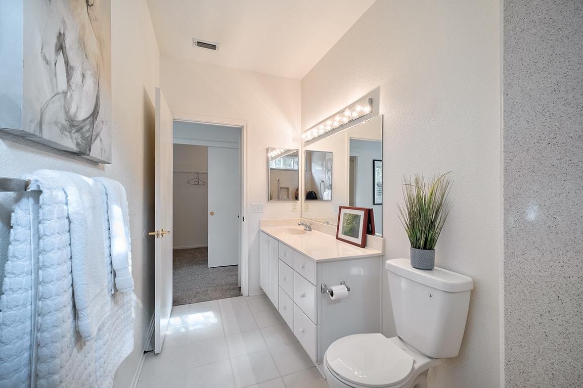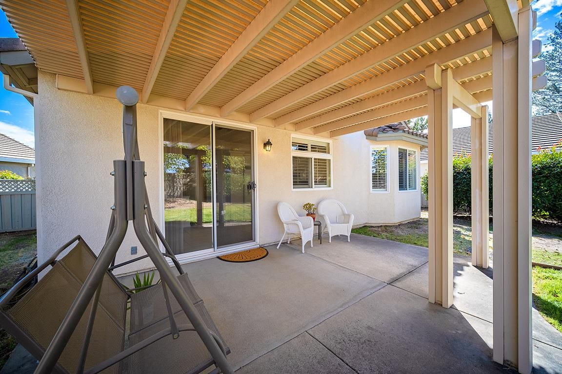 Charming MEADOW Model with 2 Bedrooms and 2 full athrooms - a rare and wonderful find in this model. Located in the Del Webb Sun City 55+ community. Home is situated on an over-sized lot at the end of a quiet court. The primary bedroom has a bay window overlooking a private, tree-filled backyard and a covered patio. You will feel pampered in the ensuite bath with a walk-in shower, multiple shower heads, built-in seat, and safety grab bars. Plentiful large windows and high ceilings throughout the home for an open, airy feel. Bright white modern kitchen with plenty of counter space, ample cabinatry and a fresh, clean look that's perfect for cooking and entertaining. A dedicated second bedroom and bathroom give flexibility and privacy. The two-car garage has white built in cabinets to keep you organized. Home is energy-efficient and economical with the coveted Roseville utilities that are as reliable as they are economical! NO Mello Roos taxes and low HOA. Close proximity to shopping, dining, and top medical services. The vibrant Del Webb Sun City is know for its beautifully landscaped parkways, golf course. clubhouse, restaurant and a variety of activities from pickleball to puzzles. Don't miss out on this perfect mix of comfort and lifestyle!