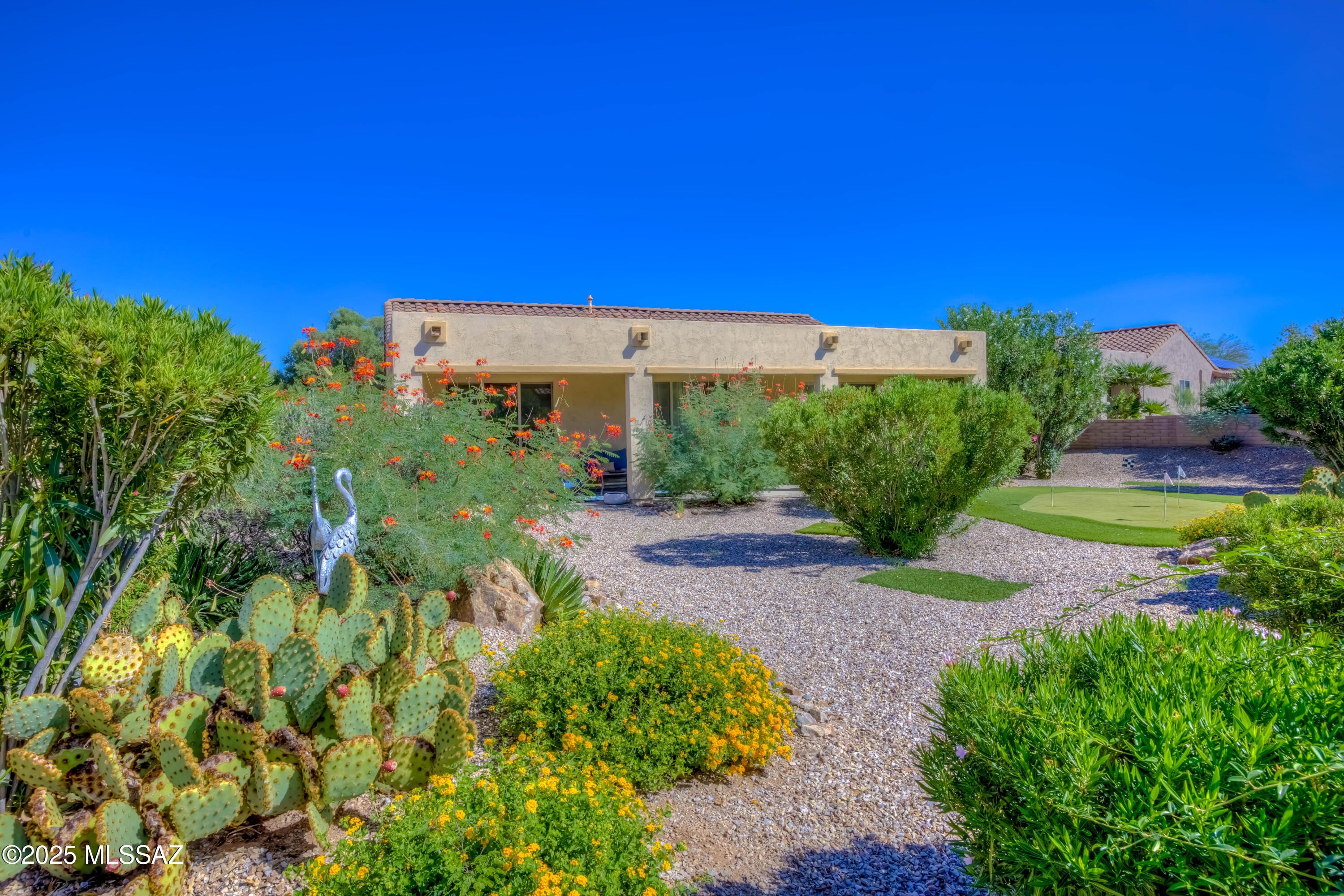 Welcome to your next chapter in comfort and style! This charming home offers a warm, open-concept layout filled with natural light, perfect for relaxed living and easy entertaining. See list of included furnishings! The spacious owner's suite features a luxurious walk-in shower with a built-in seat and a generous walk-in closet. Step outside to enjoy your oversized exterior lot complete with a furnished extended patio and your very own putting green--ideal for morning coffee or evening gatherings. Located in the prestigious Quail Creek Luxury Retirement Community, you'll enjoy a lifestyle rich with amenities including golf, pickleball, swimming, fitness classes, music, social clubs, and so much more. Don't miss the chance to make this beautiful home your own!