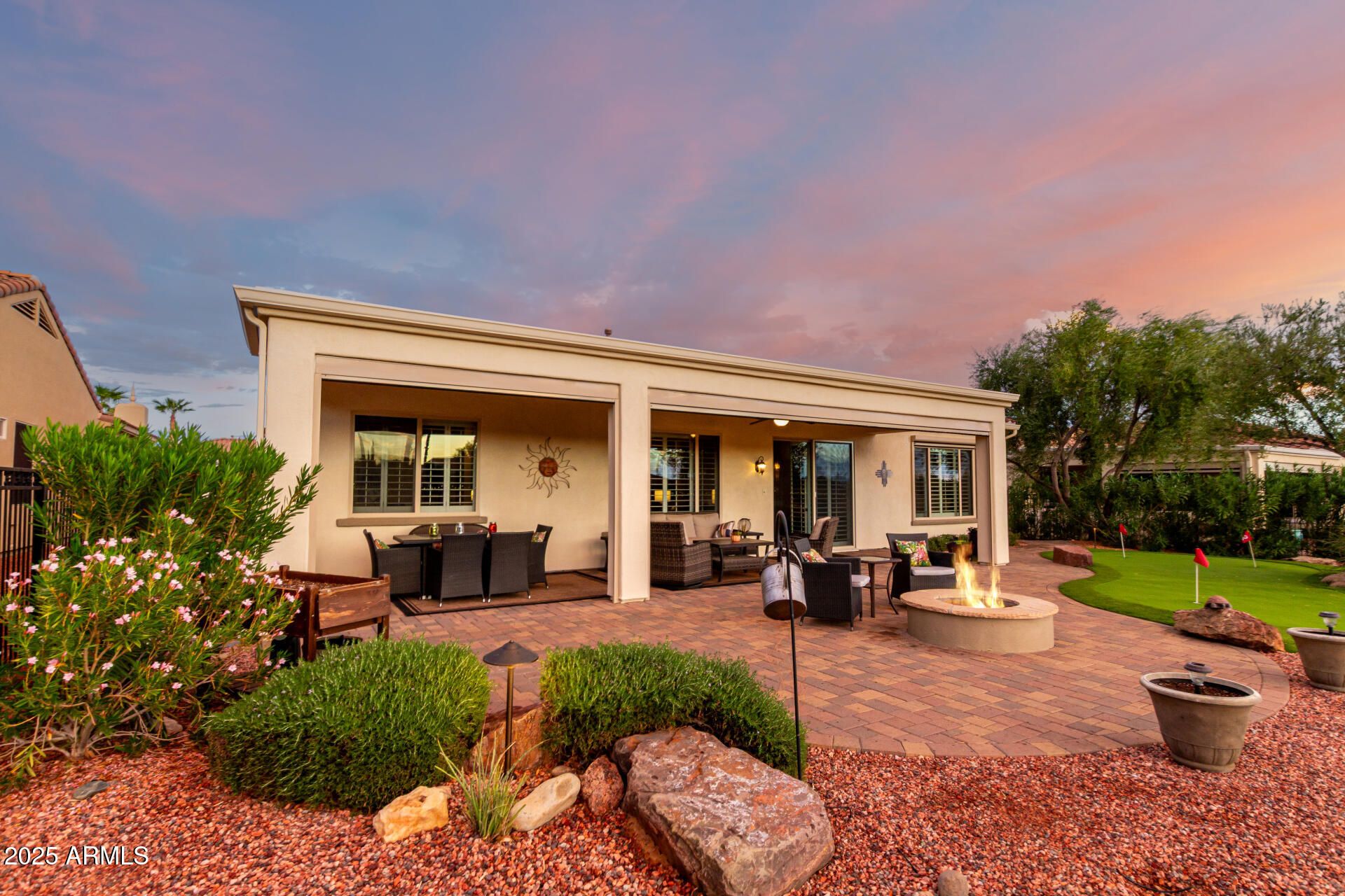 Welcome to this Stunning Golf Course Home in the highly sought after guard gated active adult community of Corte Bella Country Club! This exceptional property offers a perfect blend of luxury, comfort, and resort style living. Open living and dining - perfect for social gatherings. Privacy when hosting guests - the primary bedroom is split from the other bedroom and office. Both bathrooms are remodeled with classy finishes. The spacious 3 car garage provides ample room for vehicles, storage, and a golf cart. Owned Solar-very low electric bills! Enjoy breathtaking views of the lush fairways and fabulous sunsets while relaxing on your extended patio complete with electronic sun screens for year-round comfort. Practice your short game in your own backyard on your private putting green Corte Bella Country Club offers world-class amenities including golf, pickleball, tennis, fitness center, spa, pool, restaurant, and a full calendar of social events. This guard-gated community ensures both peace of mind and a vibrant, active lifestyle. Don't miss your chance to own this move-in ready golf course gem!