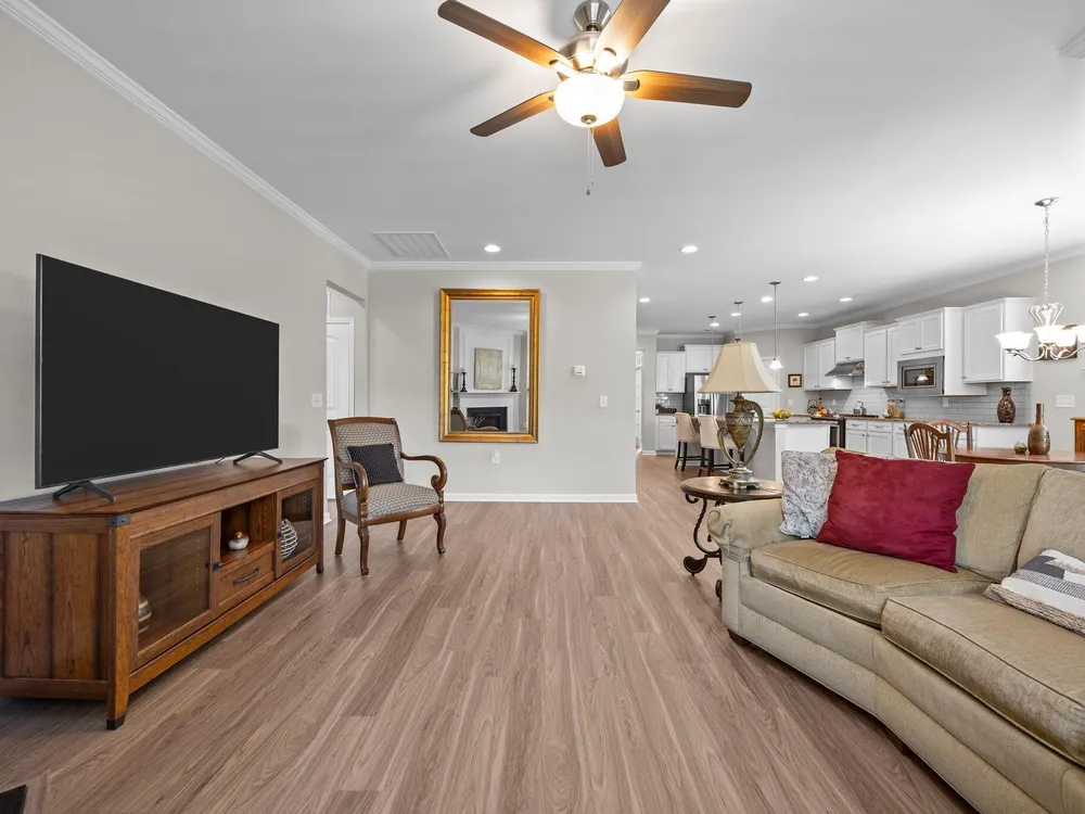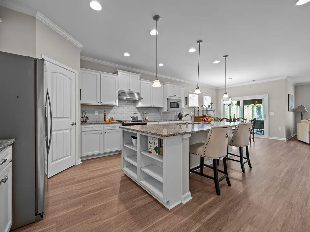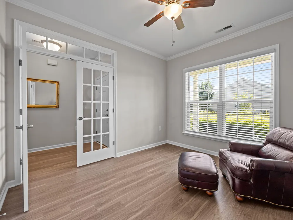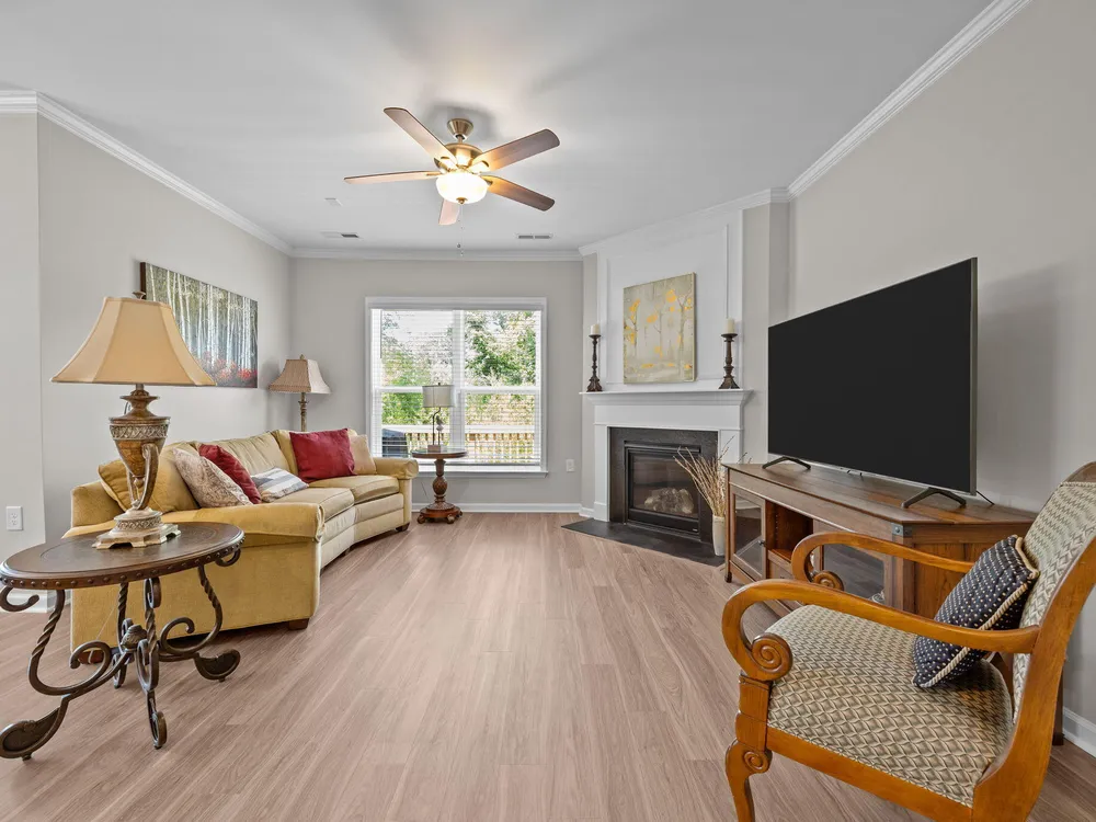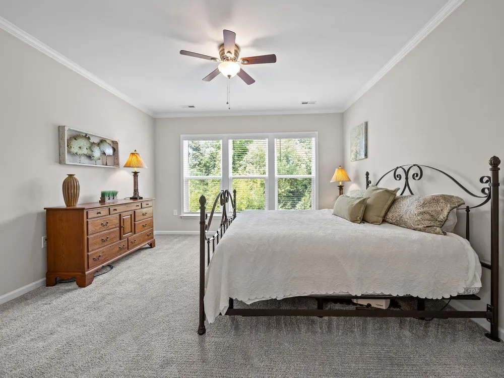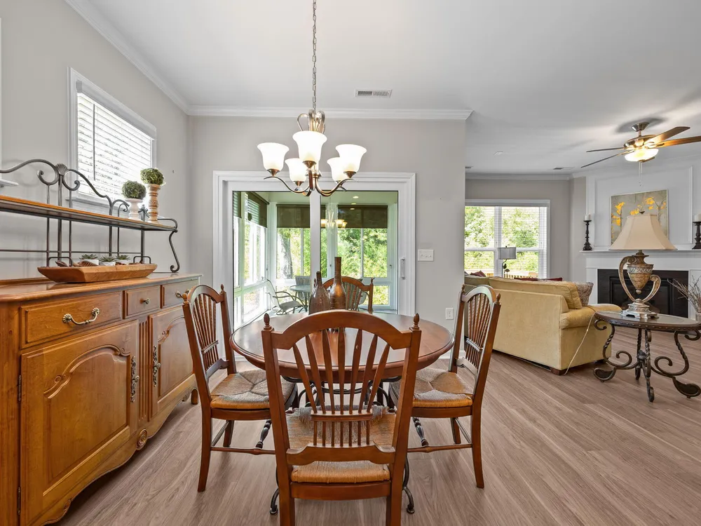 Welcome to one of the most desirable homes in Carolina Arbors — a rare Castle Rock floorplan offering the space, flexibility, and privacy that make it truly one of a kind. With its wide, open design, this home was built for connection and entertaining. The chef's kitchen, anchored by an oversized island, flows seamlessly into the dining and living areas, then outdoors to a screened porch and deck overlooking a serene wooded backdrop — one of the most private lots in the neighborhood. Unlike most homes here, this one features a walk-out basement — already framed for future expansion or ready to enjoy as-is for hobbies, exercise, storage, or a workshop. Upstairs, the thoughtful main-level layout includes two bedrooms plus a dedicated office/flex space. The primary suite is a true retreat, set at the back of the home with calming wooded views. The spacious bedroom easily accommodates large furniture, while the spa-inspired bath offers a dual vanity, oversized walk-in shower with bench, separate water closet, and a generous walk-in closet designed to keep everything organized. Life at Carolina Arbors means more than just a home — it's an experience. Del Webb Active Adult Communities are known for their vibrant, close-knit atmosphere and world-class amenities: resort-style pools, pickleball and tennis courts, walking trails, dog park, community garden, fitness classes, billiards, social clubs, and a 37,000 sq ft clubhouse brimming with activities and events. Homes like this are few and far between. Don't miss your chance to make it yours.