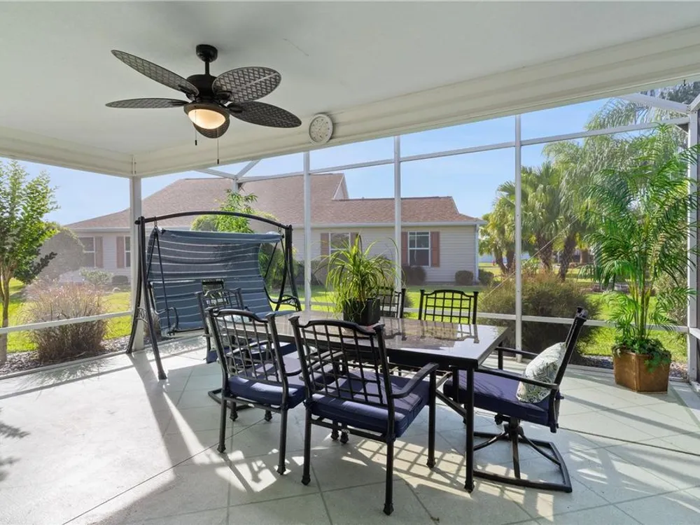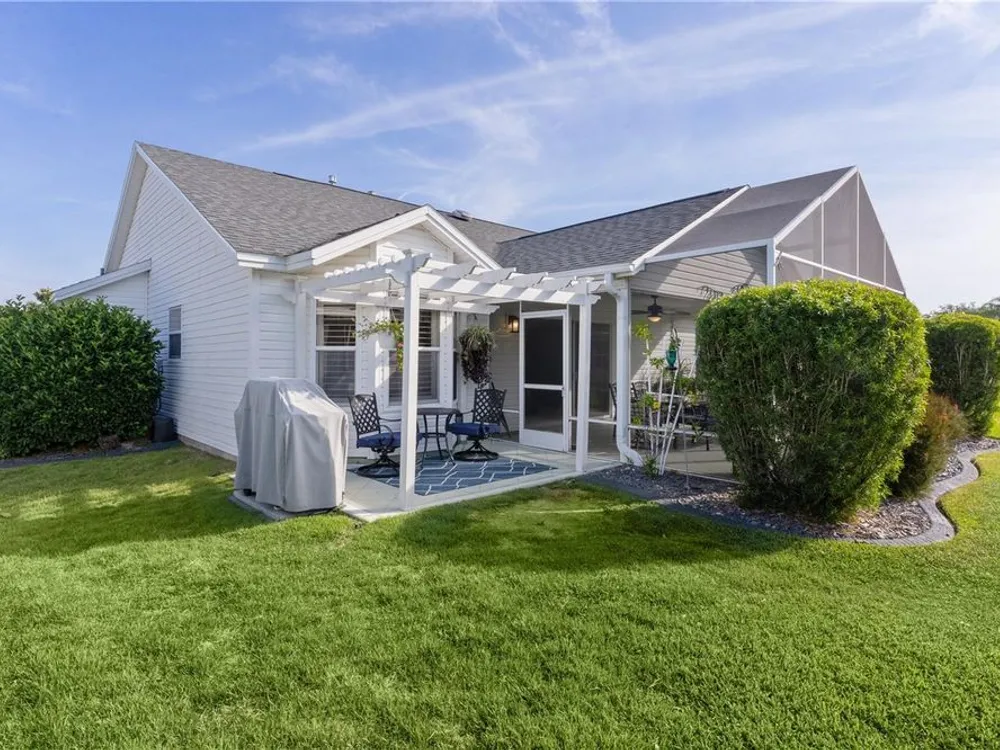 Move-In Ready Whispering Pine in Tall Trees! Welcome to this beautifully refreshed Whispering Pine model in the sought-after Village of Tall Trees. With 3 bedrooms, 2 baths, and a 2-car garage, this home blends modern upgrades with timeless comfort. Step inside to brand-new luxury vinyl plank flooring that flows seamlessly throughout, complemented by a neutral color palette and plantation shutters (2023) for a bright, elegant feel. The kitchen is a standout with LG stainless steel appliances (2023), enhanced lighting, and plenty of space for the home chef. Recent updates bring peace of mind: Roof (2023) HVAC (2020) Water Heater (2021) Updated lighting & fans (2023/2024) Fresh exterior shutters & trim Enjoy Florida living outdoors with a refreshed screened lanai (2023) and a pergola retreat (2024)—perfect for relaxing or entertaining. With a bond balance of $7,587.55, this home is ready for you to move right in and start enjoying The Villages lifestyle today. Don’t wait—schedule your private showing now!