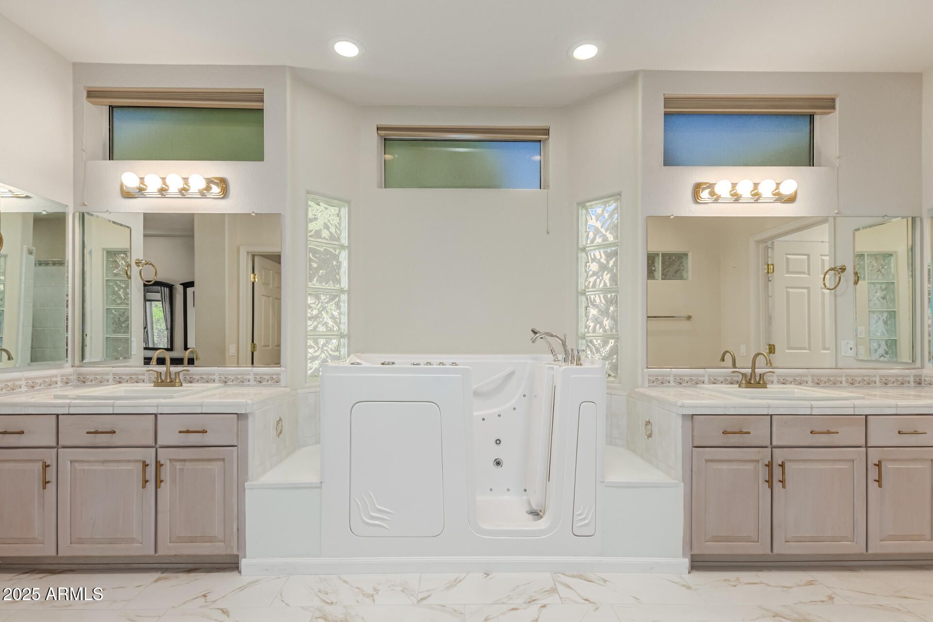 - Double Vanity, Breakfast Bar, 9+ Flat Ceilings, No Interior Steps, Wet Bar, Kitchen Island, Pantry, 2 Master Baths, Full Bth Master Bdrm, Separate Shwr & Tub, Tub with Jets