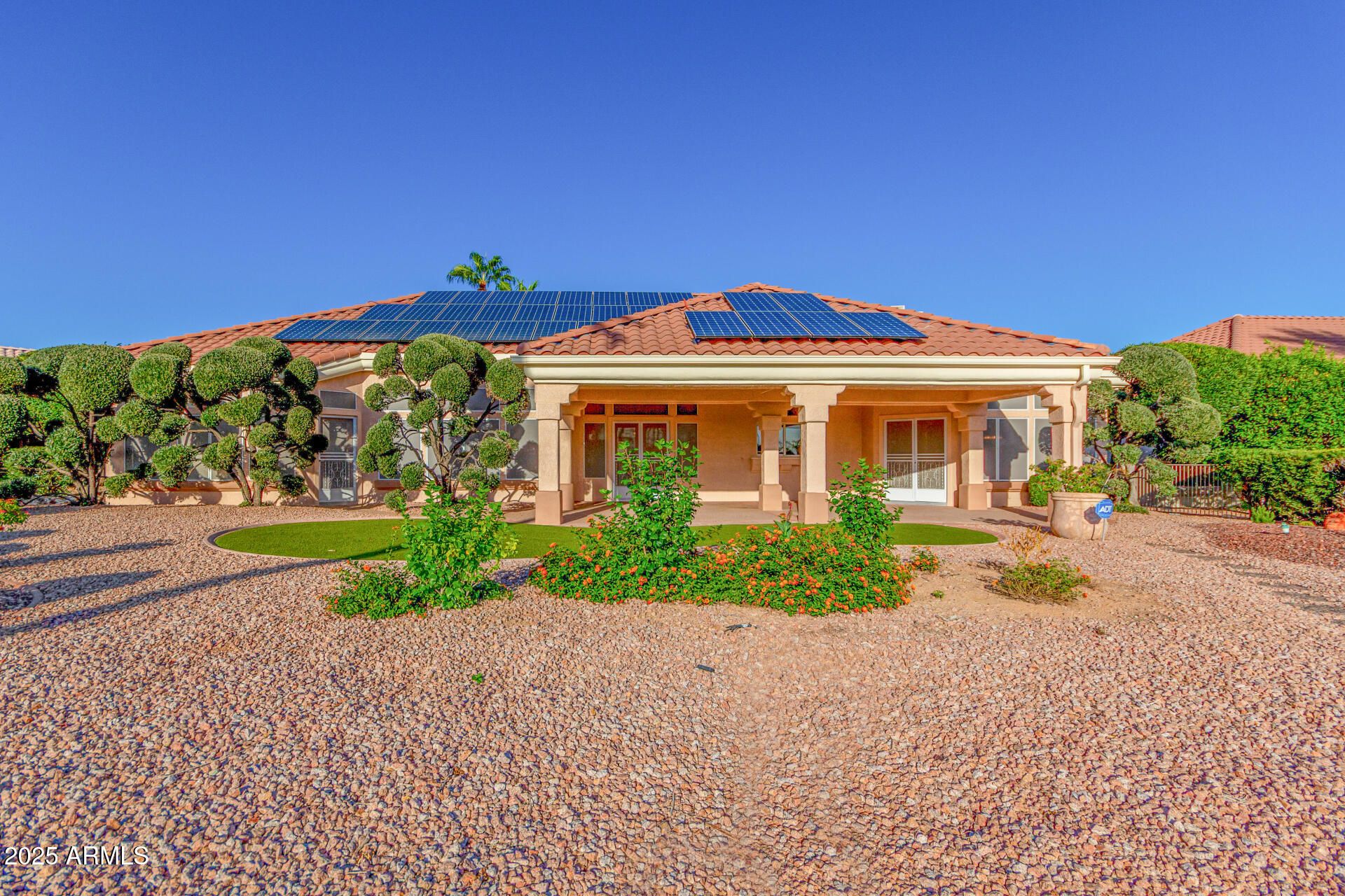 Our Preferred Lender is offering a 1-0 buy down on this property for qualified buyers!Move-in-ready home on a golf course lot w/mountain views! Desirable Active Adult Community w/resort-style amenities such as a heated pool, spa, gym, clubhouse, tennis courts, & more. Discover two main bedrooms, a spacious den, & a welcoming family room w/gas fireplace. Elegant touches like skylights, a wet bar, pre-wired surround sound, & a mix of carpet/tile floors enhance the home's character. The kitchen features a pantry, island, ample counters, & the essential cooking appliances. A washer & dryer are included for convenience! Practical upgrades such as a Water Purifier, Soft Water Loop, & owned Water Softener add peace of mind, while solar panels provide efficiency. The property also includes a temperature controlled 2.5-car garage. Enjoy the covered patio, synthetic grass, & wide-open views of the golf course/mountains right from your backyard. Recently updated & thoughtfully maintained! Act now!