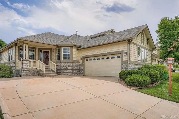 Welcome home to this exquisite attached single family home backing to the beautiful 13th fairway! This is the second largest of the 4 duplexes in the Traditions Collection #803. With gorgeous (real) hardwoods, plantation shutters and surround sound throughout, the breezy main level features a large family room with a double sided gas fireplace, dining room, breakfast nook, kitchen with 42" cherry cabinetry and commercial grade stainless steel Maytag appliances, a light and bright office (or a 3rd bedroom) with built in desks and cabinets, laundry room (Maytag washer and dryer included) and a fully remodeled full bath. The main floor primary en suite showcases a fully remodeled bath and a huge walk in closet. The fully finished lower level features a large guest bedroom, another fully remodeled bath with steam, a full wet bar with wine fridge, ice maker and dishwasher. There is also a family room with a second gas log fireplace. There is a ton of storage and counter space in the oversized 2 car garage complete with flourescent lighting, a Lennox heater and utility sink. Both of the South facing upper and lower patios have gas lines for convenient grilling and the Furnace and Water heater are newer. Heritage Eagle Bend is the premier 45+ lifestyle gated community offering 24 hour security, snow removal and landscaping included in the HOA. With a public 18 hole championship golf course, the excellent Eagles Nest restaurant, inspiring front range views, indoor and outdoor pools, pickleball courts, a 37,000 square foot clubhouse filled with everything from a library to a state of the art fitness center to a ballroom, come see for yourself why the Heritage Eagle Bend residents just love living here!