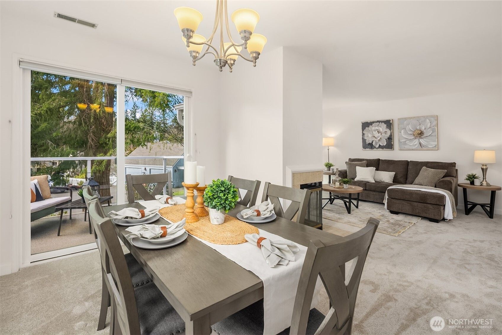 Value priced, light-filled two bedroom, two bath single-level condo in Meadow Village at Providence Point with peaceful territorial views. Freshly painted with brand-new carpet throughout, this home offers a clean and comfortable space ready for your personal touch. The welcoming living room features a cozy gas fireplace and opens to the dining area, where large picture windows bring in abundant natural light. Step out to the private deck—an ideal spot for morning coffee or relaxing evenings. The galley kitchen provides ample cabinetry, stainless steel appliances, and plenty of storage. The spacious primary suite includes an en-suite ¾ bath and double closets, while the second bedroom and additional ¾ bath offer flexibility for guests or a home office. A full laundry room and detached garage add everyday convenience, with flat, paved access to the home. Tucked away on a quiet cul-de-sac near community amenities. Active 55+ Providence Point is known for its vibrant lifestyle, featuring an indoor pool and spa, fitness center, walking trails, pickleball and tennis courts, clubhouse, library, garden space, social clubs, classes, events, and a shuttle to local shopping. You'll want to see this one ASAP!
