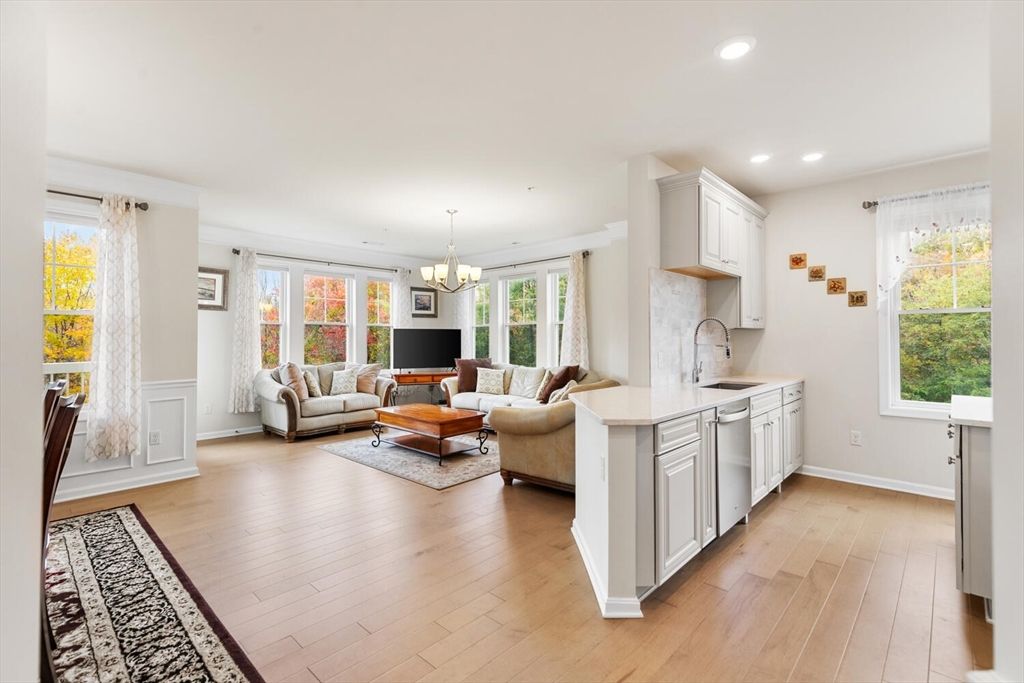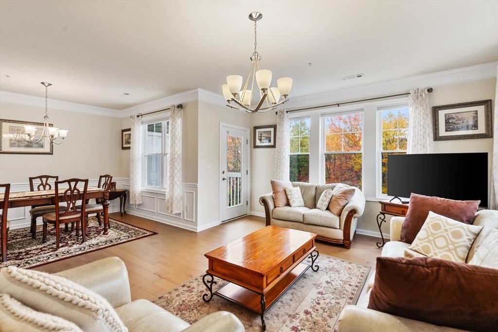 Welcome Home! Rarely available Premier Pennington Crossing 55+ Community, 1490 Sq Ft 2 Bd, 2 Bth Sunny Corner Unit. Open Floor Plan great for entertaining family & friends. 9 Ft Ceilings, Crown Moldings easy one floor living. From the moment you enter you will feel right at home. Fabulous Kitchen w/ Quartz Counters, Stainless Appliances, Island & plenty of Cabinets & Storage. Bright & Light Living Rm & Dining Rm with views of the walking path and treetops. Enjoy all four seasons especially the beautiful colors of the fall with the vibrant leaves from your all your windows and your porch too. Primary Bedroom Suite w/ attached Bathroom with Shower & Double Sinks & Walk in Closet. Second Bedroom with Walk in Closet. Laundry Room in Unit. Clubhouse w/ Spacious Living Rm / Kitchen plus Outdoor Patio for gatherings & cookouts. All this located minutes to Vibrant Walpole Center, Restaurants, Stores, Commuter Rail & more... Minutes to Highway! Showings start this Fri, Sat & Sun at Open Houses.