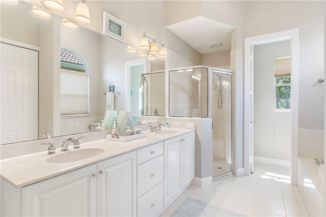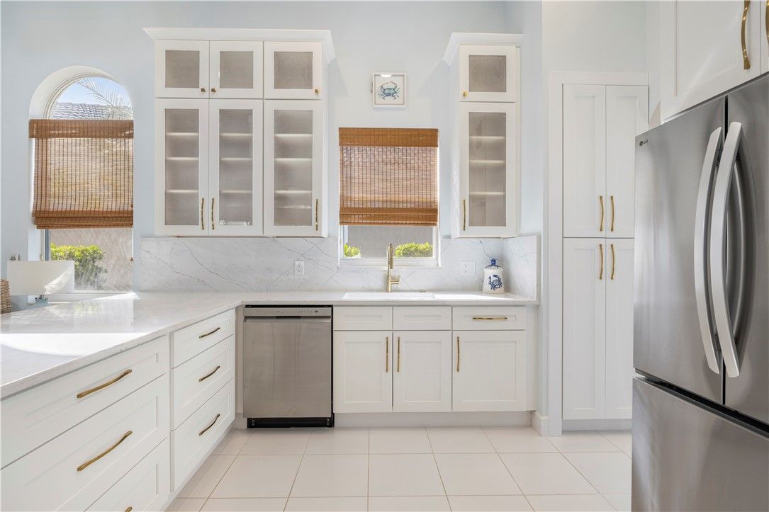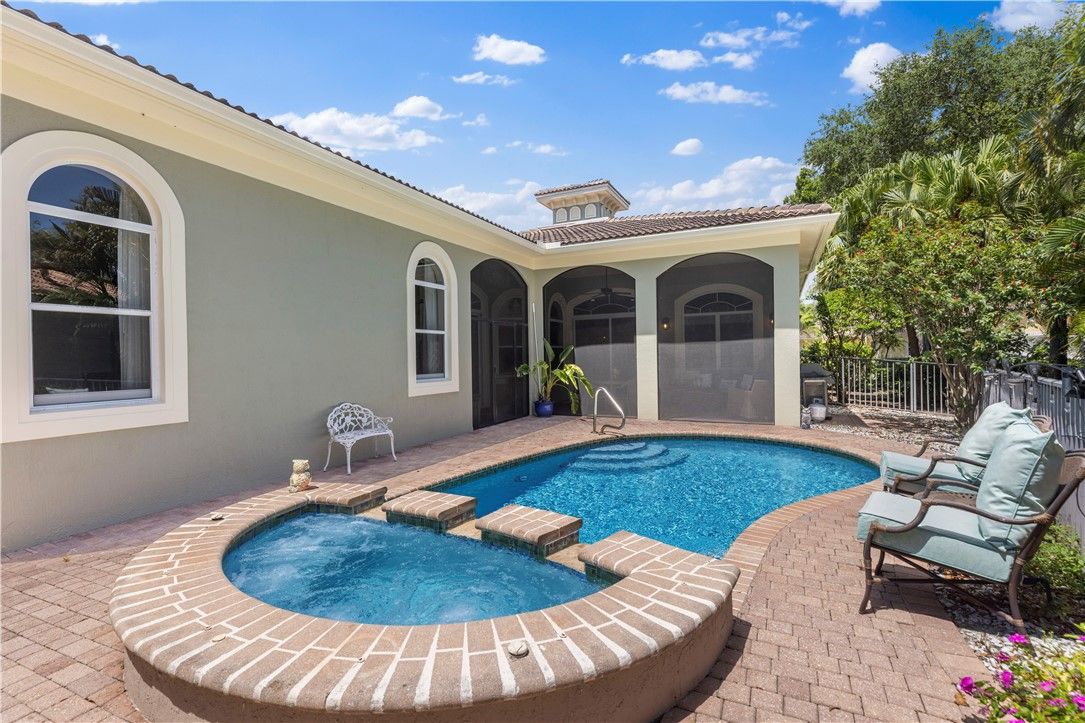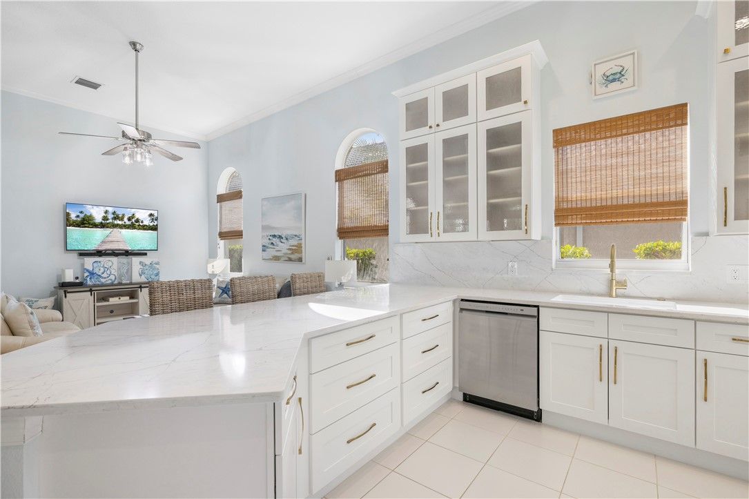 WANT THE GRAND HARBOR LIFE? THIS HOME IS FOR YOU! A MUST SEE! SPECTACULAR NEW KITCHEN: NEW 42" WHITE SOFT CLOSE SHAKER CABTs & DRWRs. TOPPED W GLASS-DOOR DISPLAY CABTs, BRUSHED GOLD PULLS. STUNNING WHITE QUARTZ COUNTERTOPS & BACKSPLASH w/VEINING. SS APPs include NEW REFRIG & MICROWAVE & DISHWASHER. This WEST INDIES HOME offers 3BR, 3 FULL BATHS, 2 CG. ALL IMPACT GLASS, VOL CEILINGS, CROWN MOLDING, SCRND PORCH, PRIVATE HEATED POOL & SPA. HUGE PRIMARY BR, LG WINDOWS w/LOVELY VIEWS, WIC, PRIM BATH: DUAL SINKS, SHOWER, GRDN TUB, WC, 2 GUEST BRs W/ENSUITES. LARGST WOODED, WATRFRT LOT IN THE FALLS!