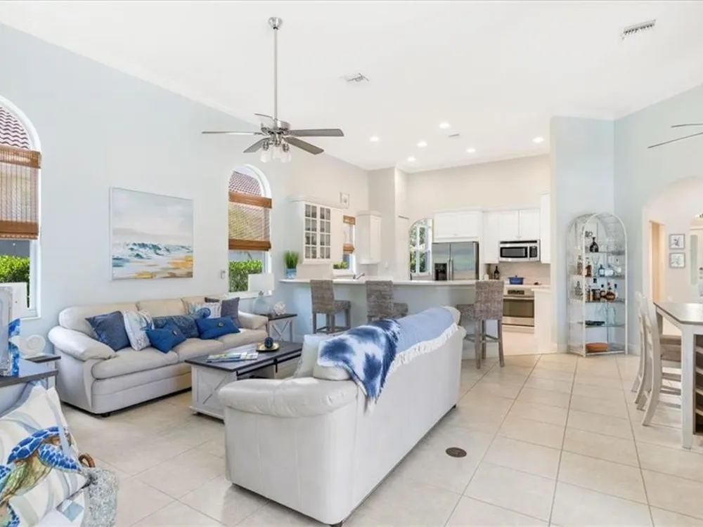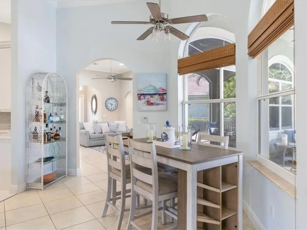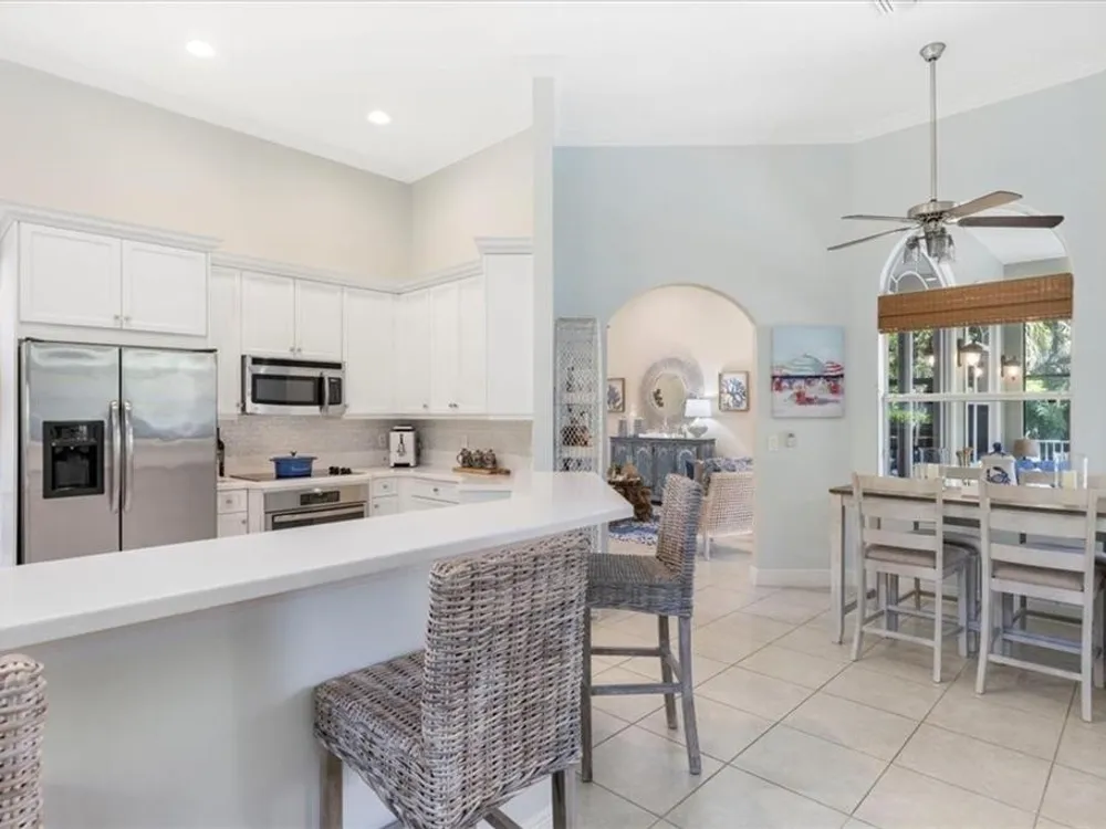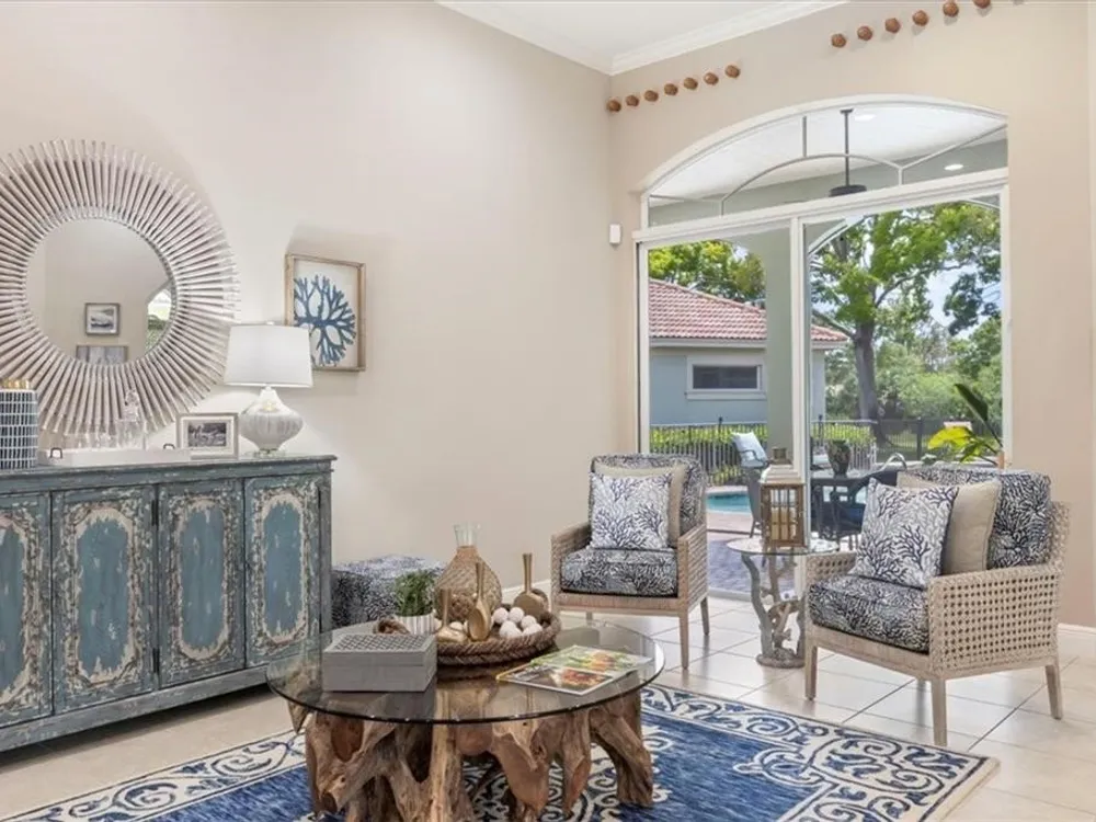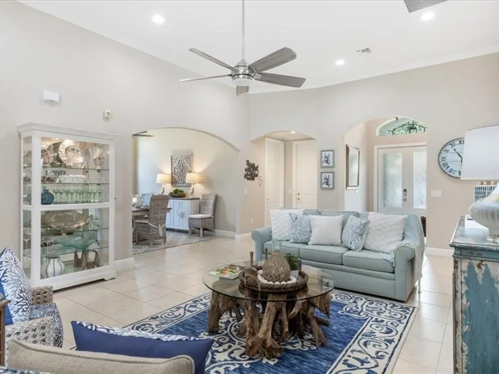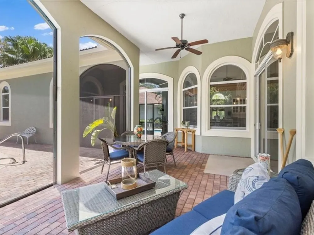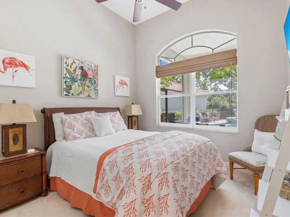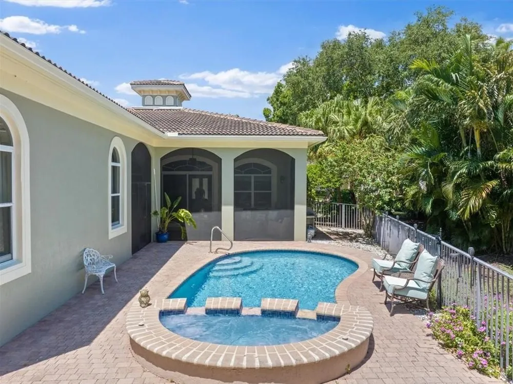 Spectacular 3BR, 3Bath, 2CG West Indies pool home in sought-after Grand Harbor. All impact glass, volume ceilings, tile floors, crown molding, screened porch, private heated pool & spa. Lovely views of deep, partially wooded lot w/ lake. Generous primary w/ tons of light, large WIC, primary bath w/ dual sinks, vanity, walk-in shower, garden tub, and WC. Updated kitchen w/ SS appliances. Large, open-concept LR and DR - w/ direct kitchen access. Split floorplan w/ primary at rear of home. GH Club amenities avail w/ membership- golf, tennis, paddleball, & oceanfront beach club. RmSzAppx&Subj2Err