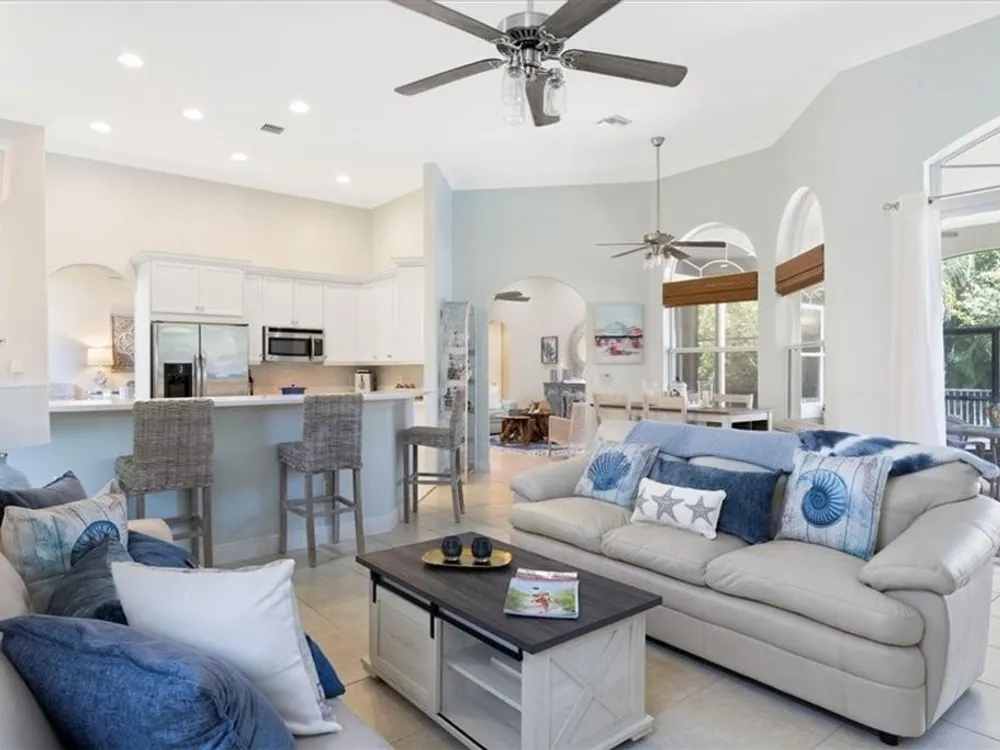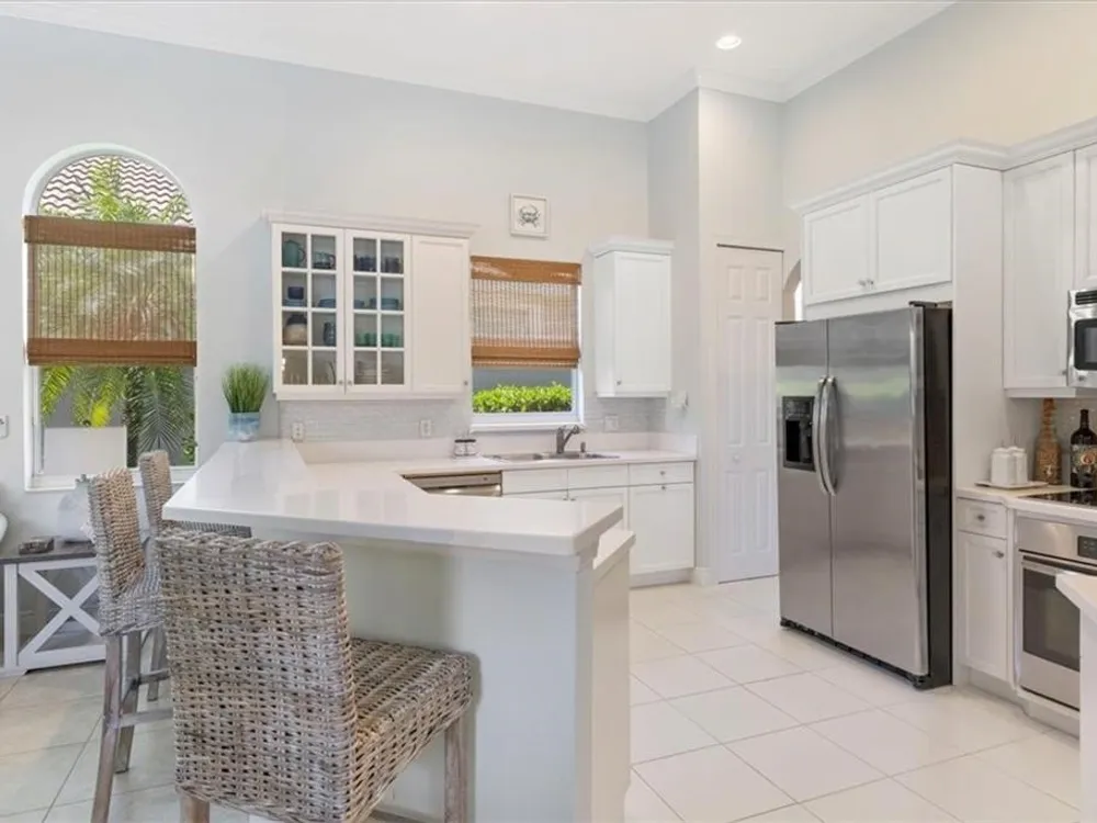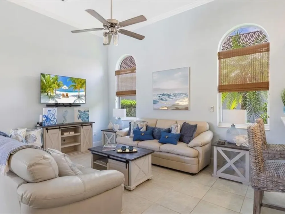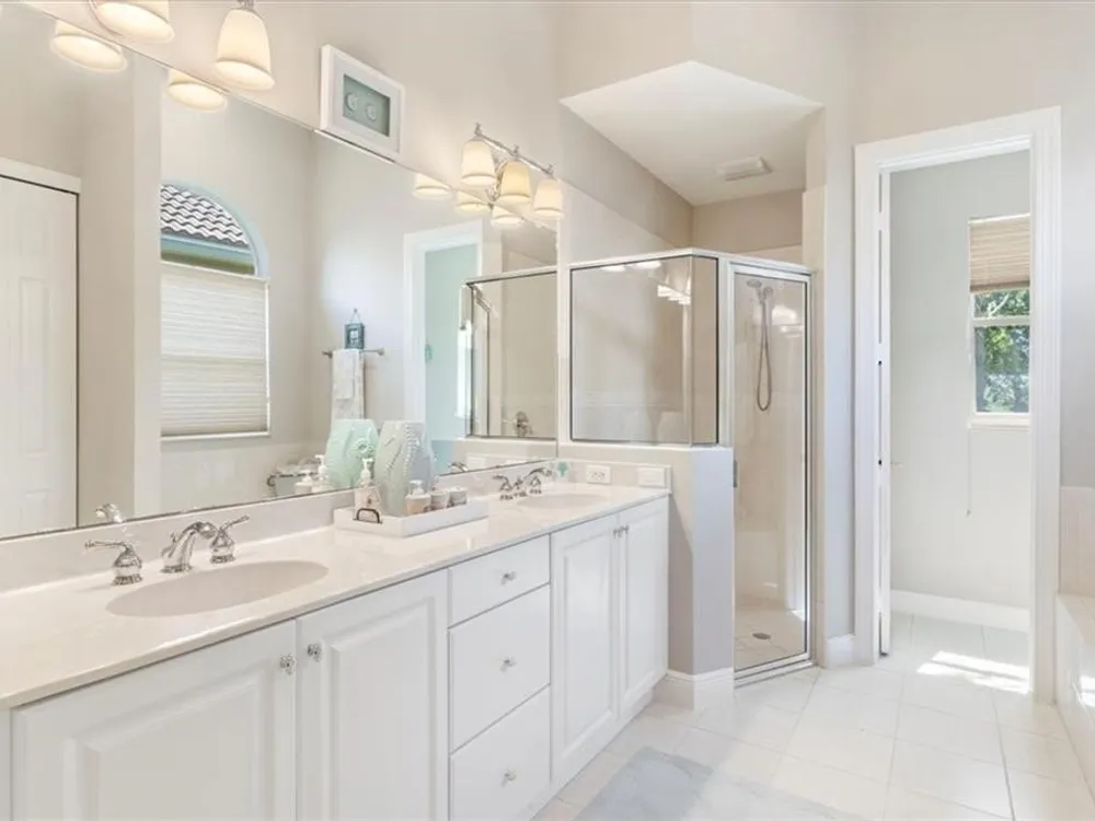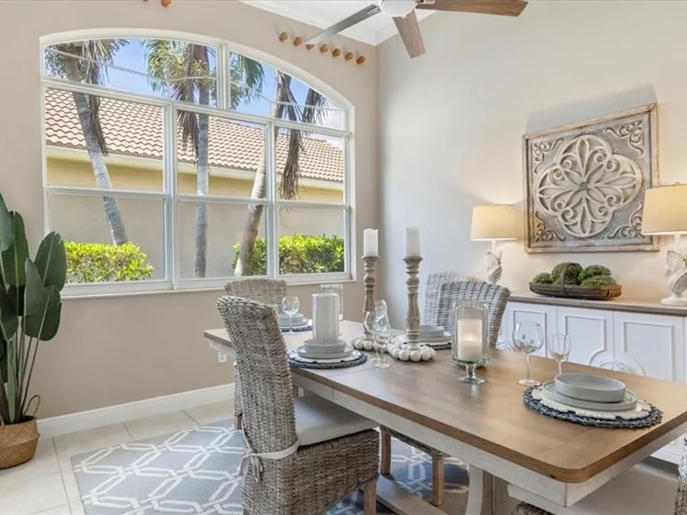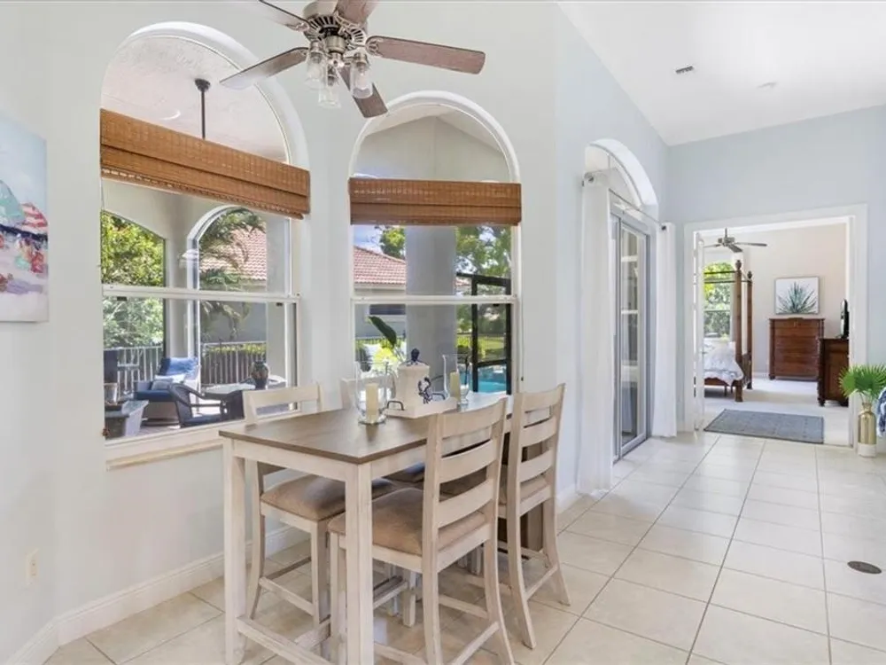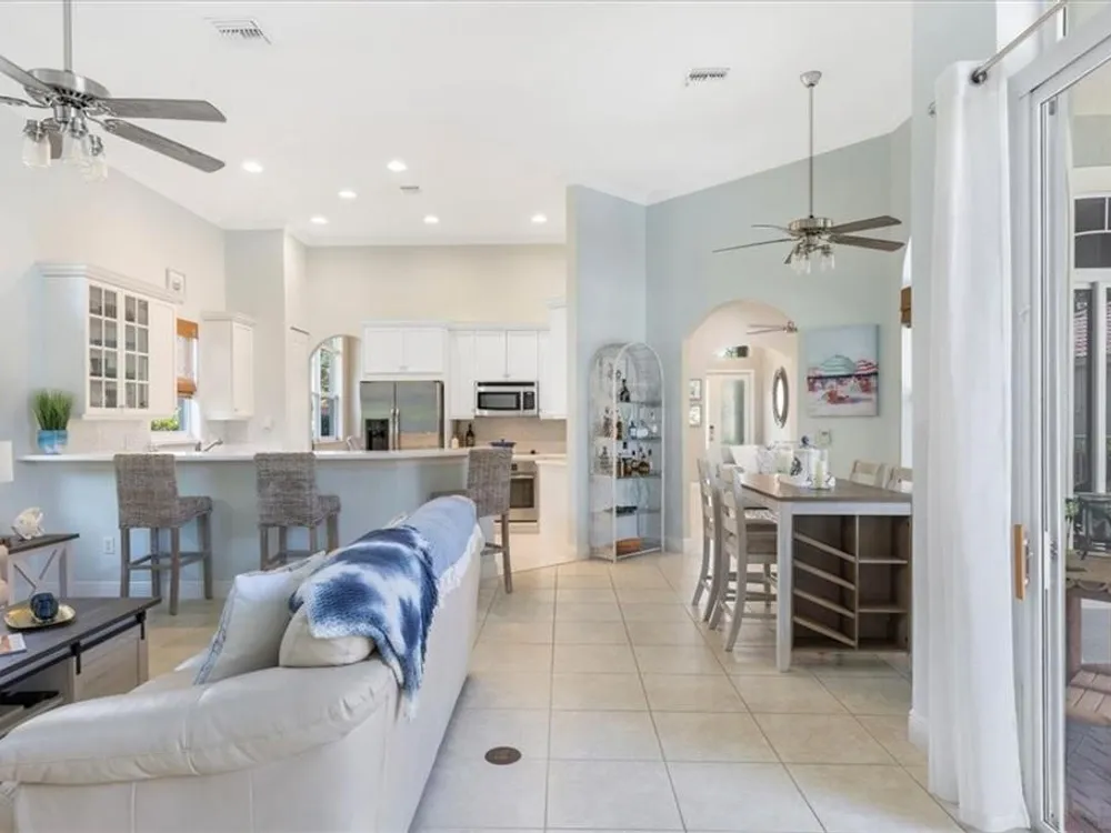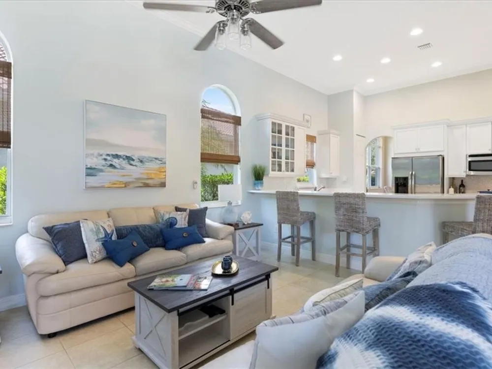 Spectacular 3BR, 3Bath, 2CG West Indies pool home in sought-after Grand Harbor. All impact glass, volume ceilings, tile floors, crown molding, screened porch, private heated pool & spa. Lovely views of deep, partially wooded lot w/ lake. Generous primary w/ tons of light, large WIC, primary bath w/ dual sinks, vanity, walk-in shower, garden tub, and WC. Updated kitchen w/ SS appliances. Large, open-concept LR and DR - w/ direct kitchen access. Split floorplan w/ primary at rear of home. GH Club amenities avail w/ membership- golf, tennis, paddleball, & oceanfront beach club. RmSzAppx&Subj2Err