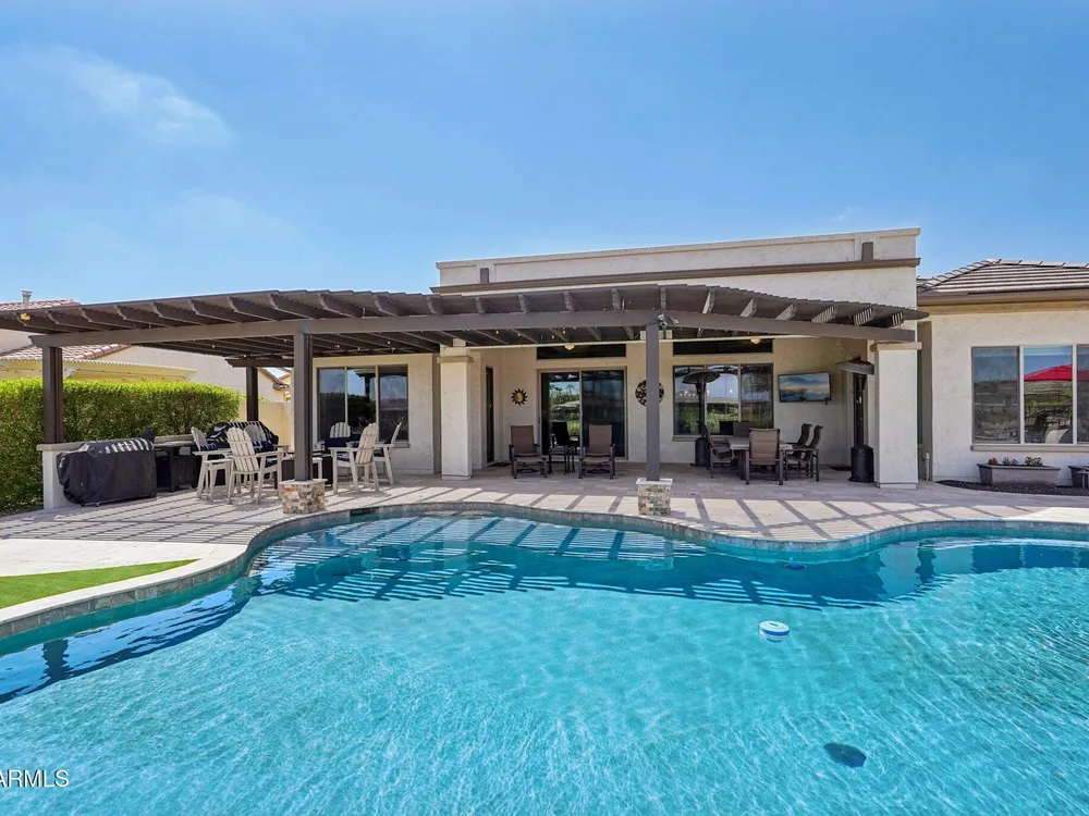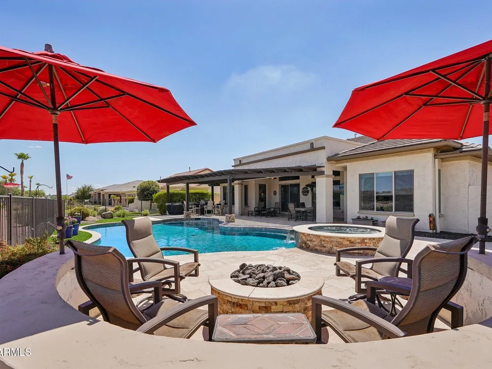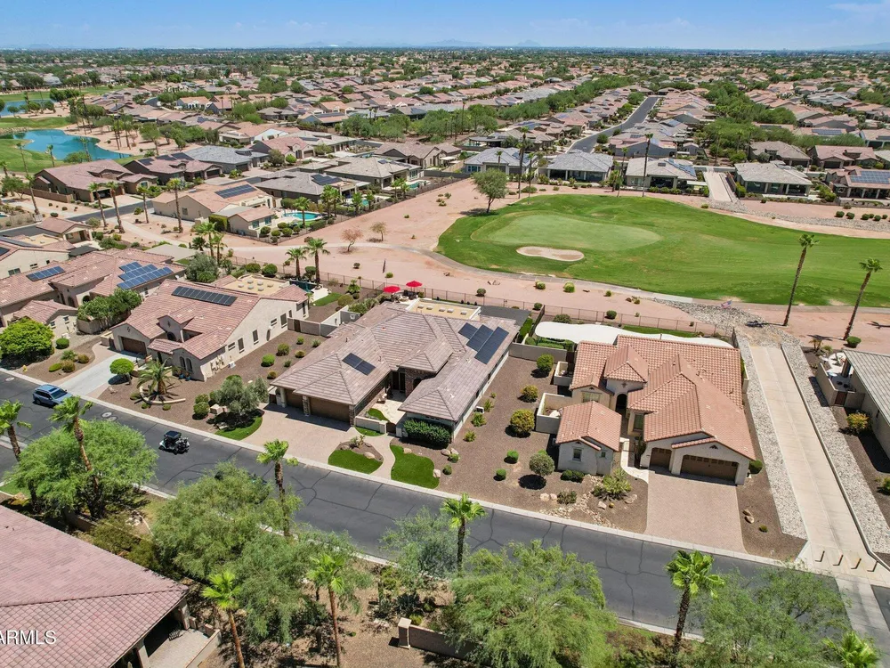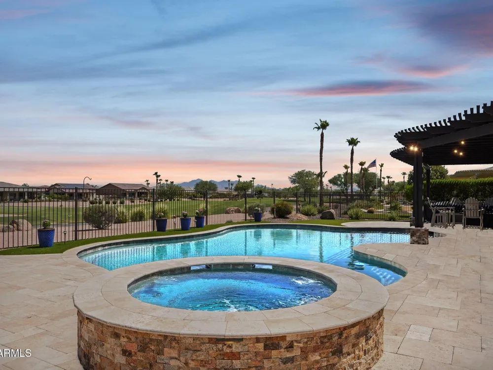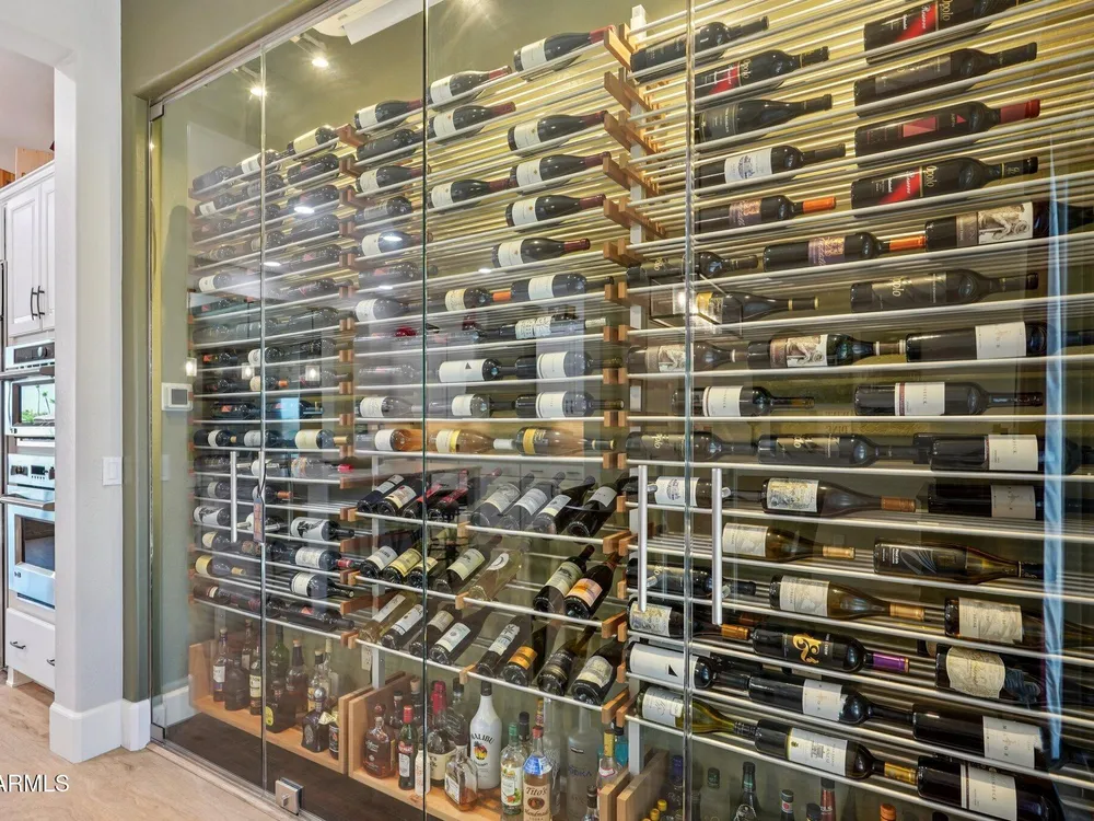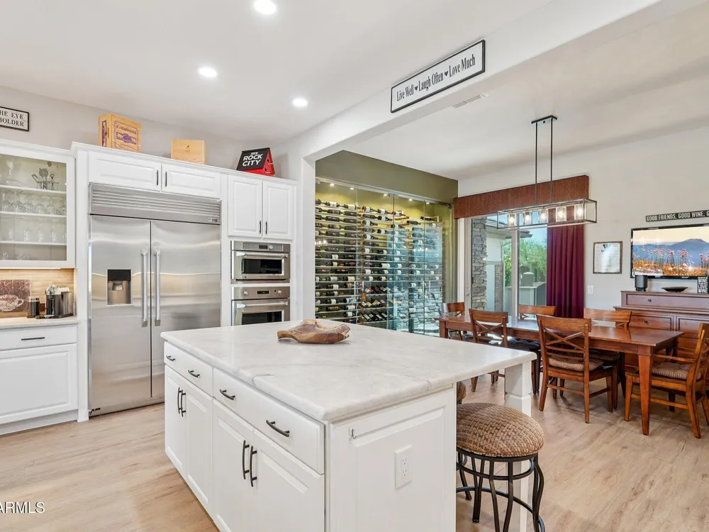 Discover luxury living in this highly sought-after Montara model located on the golf course in the prestigious PebbleCreek active adult community. This beautifully appointed home offers breathtaking golf course and mountain views, and is just a short distance from the clubhouse and community amenities. Inside, you'll find completely remodeled home with 3 spacious bedrooms and large den, 3.5 bathrooms that includes separate oversize casita—perfect for guests, a home office, or hobby space. The heart of the home features an open-concept layout, floor to ceiling temperature controlled wine cellar, high-end finishes and monagram luxury appliances. Large windows frame the stunning outdoor scenery of the golf course and golf green. The open-concept layout creates a seamless flow from the spacious great room to the gourmet kitchen and dining are ideal for entertaining or simply enjoying the tranquil golf course views. The luxurious primary suite offers a peaceful retreat with an updated en-suite bath, dual vanities, and a large walk-in closet. A well-appointed guest bedroom and a versatile den or office complete the main house. Outdoors, Enjoy heated swimming pool, hot tub, firepit and also enjoy panoramic golf green views from your expanded covered patio, perfect for dining al fresco or relaxing in the Arizona sunshine. The beautifully landscaped backyard includes low-maintenance desert plantings and ample space for entertaining. The oversize casita, complete with a full bath and private entrance, adds tremendous flexibility to the floor plan. This home comes fulled equipped with grandfathered owned solar, all new air conditioners as well as many other upgrades. Enjoy an oversized 3-car garage, perfect for vehicles, golf carts, and extra storage. Living in PebbleCreek means access to world-class amenities including: 3-Championship golf courses Multiple resort-style pools Modern fitness centers 36 Pickleball courts and tennis courts A 332-seat performing arts theater On-site restaurants and bars Dozens of clubs, events, and social activities This is more than just a home it's a lifestyle.