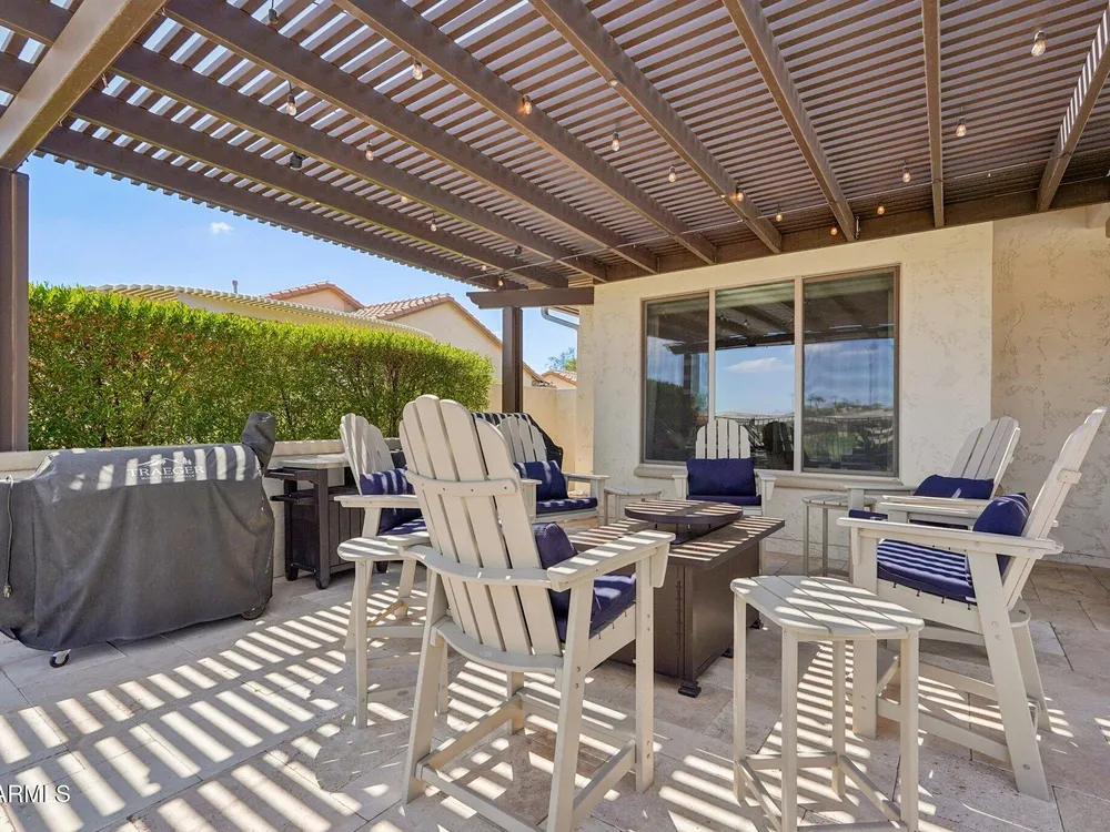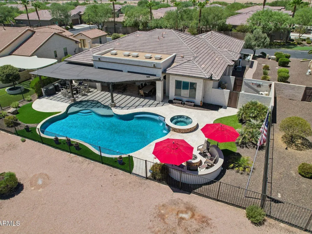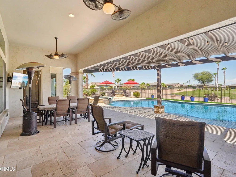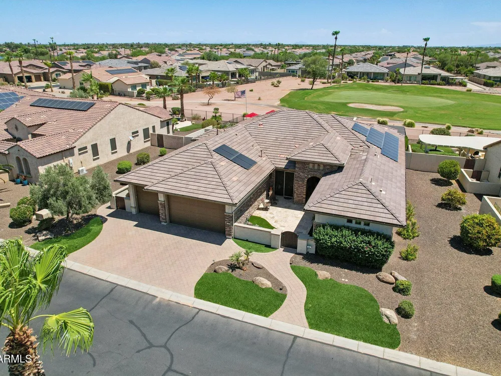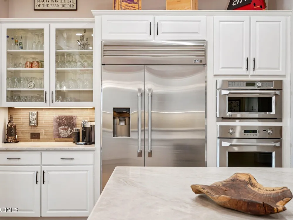 Discover luxury living in this highly sought-after Montara model located on the golf course in the prestigious PebbleCreek active adult community. This beautifully appointed home offers breathtaking golf course and mountain views, and is just a short distance from the clubhouse and community amenities. Inside, you'll find completely remodeled home with 3 spacious bedrooms and large den, 3.5 bathrooms that includes separate oversize casita—perfect for guests, a home office, or hobby space. The heart of the home features an open-concept layout, floor to ceiling temperature controlled wine cellar, high-end finishes and monagram luxury appliances. Large windows frame the stunning outdoor scenery of the golf course and golf green. The open-concept layout creates a seamless flow from the spacious great room to the gourmet kitchen and dining are ideal for entertaining or simply enjoying the tranquil golf course views. The luxurious primary suite offers a peaceful retreat with an updated en-suite bath, dual vanities, and a large walk-in closet. A well-appointed guest bedroom and a versatile den or office complete the main house. Outdoors, Enjoy heated swimming pool, hot tub, firepit and also enjoy panoramic golf green views from your expanded covered patio, perfect for dining al fresco or relaxing in the Arizona sunshine. The beautifully landscaped backyard includes low-maintenance desert plantings and ample space for entertaining. The oversize casita, complete with a full bath and private entrance, adds tremendous flexibility to the floor plan. This home comes fulled equipped with grandfathered owned solar, all new air conditioners as well as many other upgrades. Enjoy an oversized 3-car garage, perfect for vehicles, golf carts, and extra storage. Living in PebbleCreek means access to world-class amenities including: 3-Championship golf courses Multiple resort-style pools Modern fitness centers 36 Pickleball courts and tennis courts A 332-seat performing arts theater On-site restaurants and bars Dozens of clubs, events, and social activities This is more than just a home it's a lifestyle.