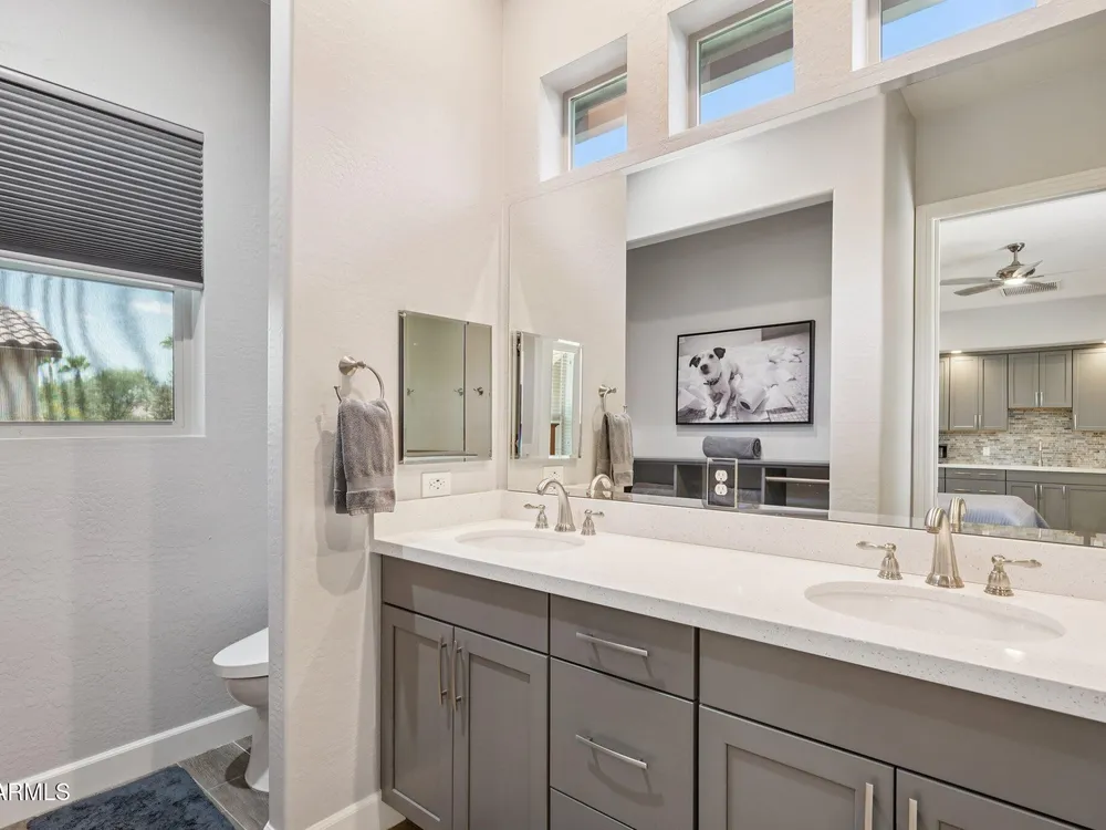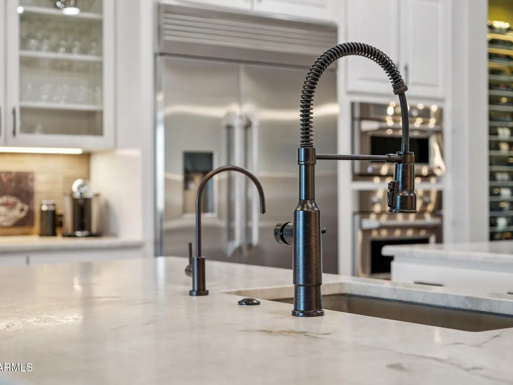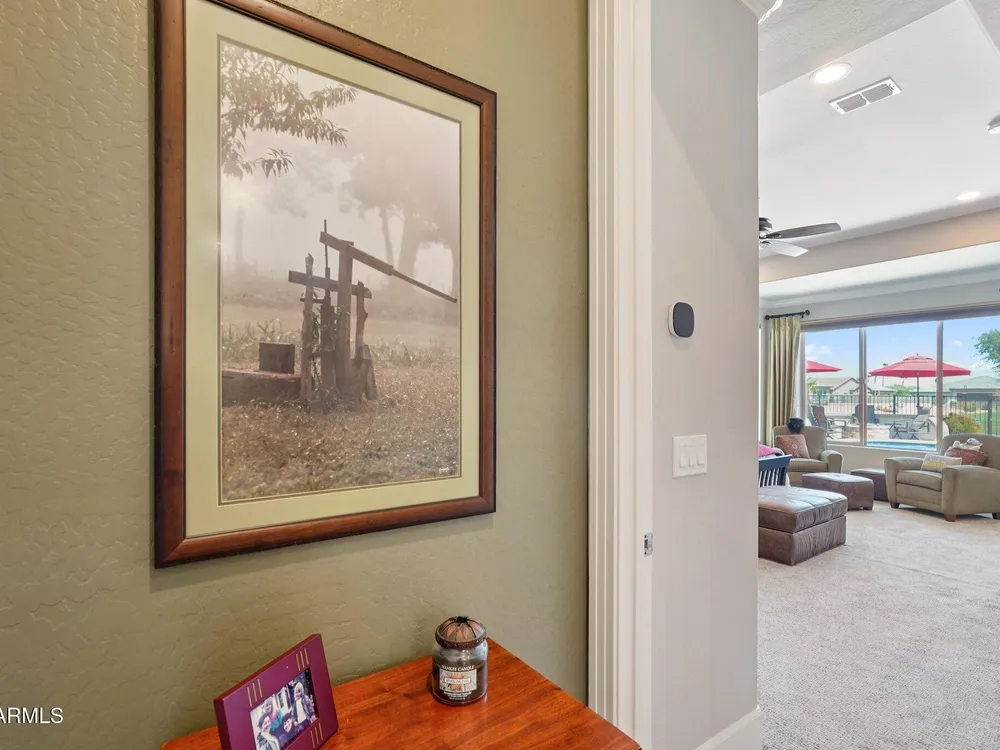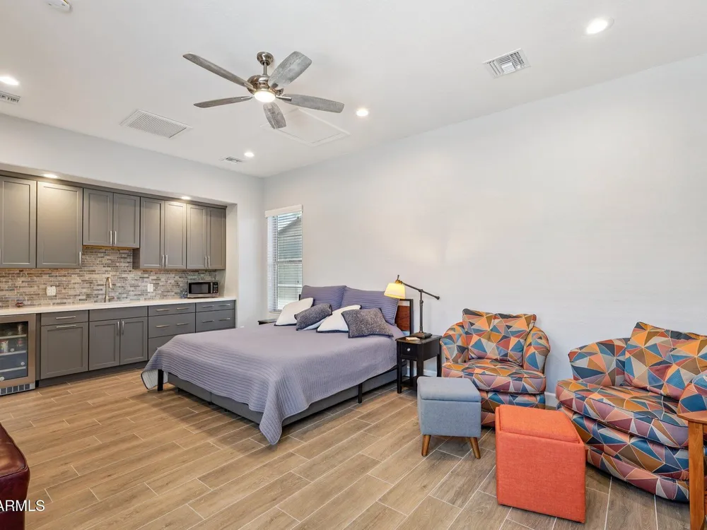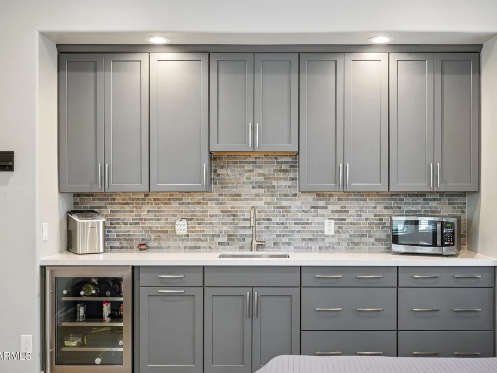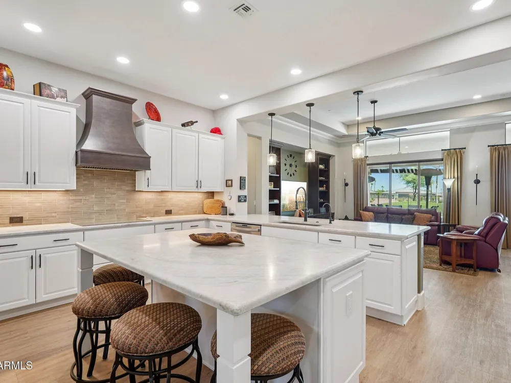 Discover luxury living in this highly sought-after Montara model located on the golf course in the prestigious PebbleCreek active adult community. This beautifully appointed home offers breathtaking golf course and mountain views, and is just a short distance from the clubhouse and community amenities. Inside, you'll find completely remodeled home with 3 spacious bedrooms and large den, 3.5 bathrooms that includes separate oversize casita—perfect for guests, a home office, or hobby space. The heart of the home features an open-concept layout, floor to ceiling temperature controlled wine cellar, high-end finishes and monagram luxury appliances. Large windows frame the stunning outdoor scenery of the golf course and golf green. The open-concept layout creates a seamless flow from the spacious great room to the gourmet kitchen and dining are ideal for entertaining or simply enjoying the tranquil golf course views. The luxurious primary suite offers a peaceful retreat with an updated en-suite bath, dual vanities, and a large walk-in closet. A well-appointed guest bedroom and a versatile den or office complete the main house. Outdoors, Enjoy heated swimming pool, hot tub, firepit and also enjoy panoramic golf green views from your expanded covered patio, perfect for dining al fresco or relaxing in the Arizona sunshine. The beautifully landscaped backyard includes low-maintenance desert plantings and ample space for entertaining. The oversize casita, complete with a full bath and private entrance, adds tremendous flexibility to the floor plan. This home comes fulled equipped with grandfathered owned solar, all new air conditioners as well as many other upgrades. Enjoy an oversized 3-car garage, perfect for vehicles, golf carts, and extra storage. Living in PebbleCreek means access to world-class amenities including: 3-Championship golf courses Multiple resort-style pools Modern fitness centers 36 Pickleball courts and tennis courts A 332-seat performing arts theater On-site restaurants and bars Dozens of clubs, events, and social activities This is more than just a home it's a lifestyle.