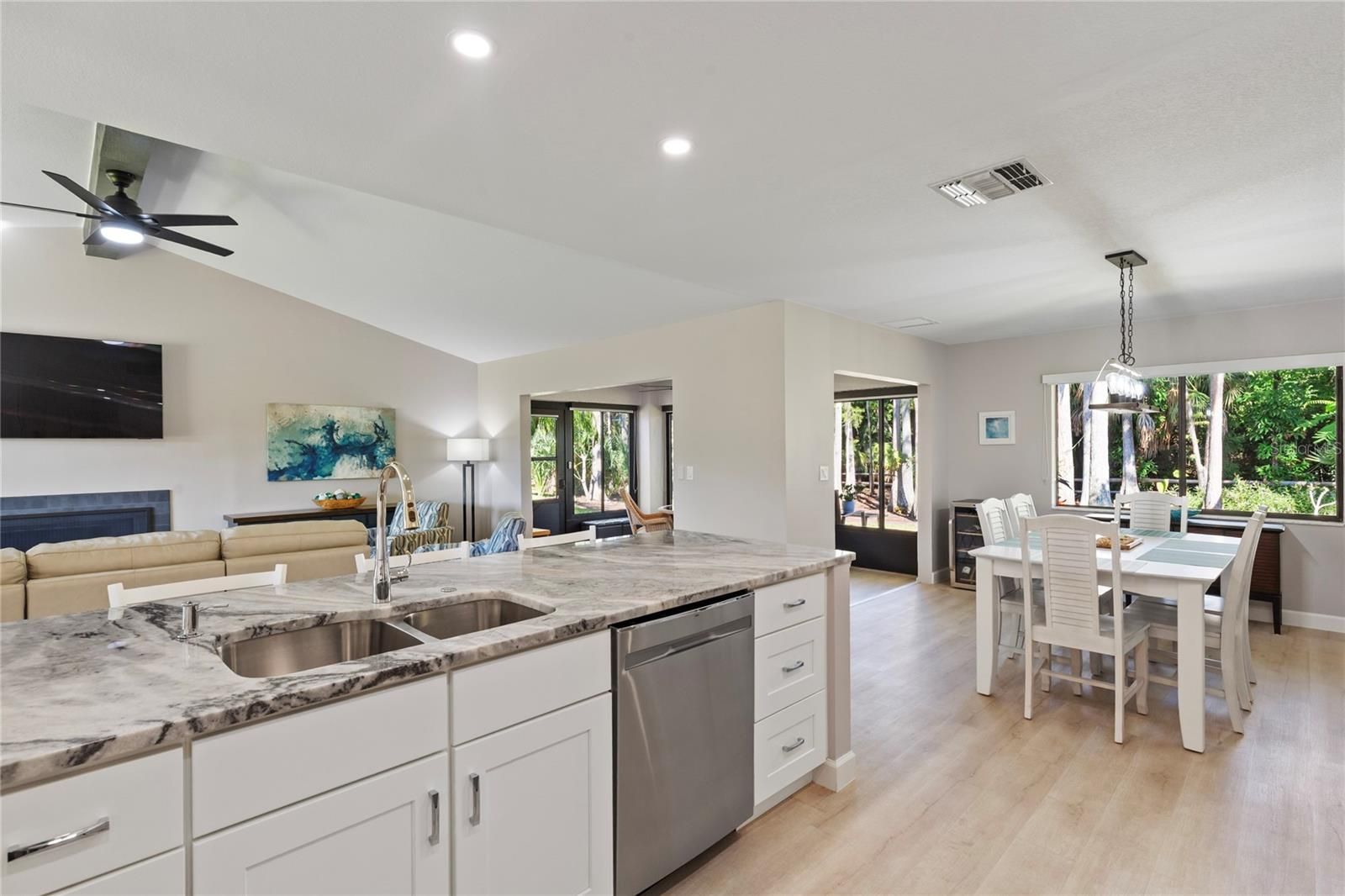 - Cathedral Ceiling(s), Ceiling Fan(s), Eat-in Kitchen, Solid Surface Counters, Stone Counters
