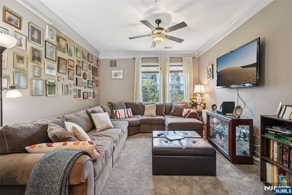 Welcome to this beautiful Colfax END-UNIT condo in the highly desirable Wanaque Reserve, an active adult 55+ community. Move-in ready and filled with natural light, this 2-bedroom, 2-bath home offers picturesque views of the mountains and pond. The open floor plan features unique polished concrete floors, a spacious den with French doors that open to the dining room, and sliding glass doors that lead to a tiled balcony perfect for relaxing. The primary bedroom suite is a true retreat with a tray ceiling, walk-in closet, additional double closet, dressing area, and a private ensuite bath. A second bedroom, full bath, and in-unit laundry provide comfort and convenience. This home also includes TWO DEEDED UNDERGROUND PARKING SPACES. Wanaque Reserve offers a resort-style lifestyle with a clubhouse that features a cafe , fitness center, theater, sauna, ballroom, and both indoor and outdoor pools. With more than 45 clubs and activities, including travel, tennis, pickleball, golf, canasta, and poker, there is something for everyone. This property combines comfort, style, and community in one of the area's most sought-after locations.