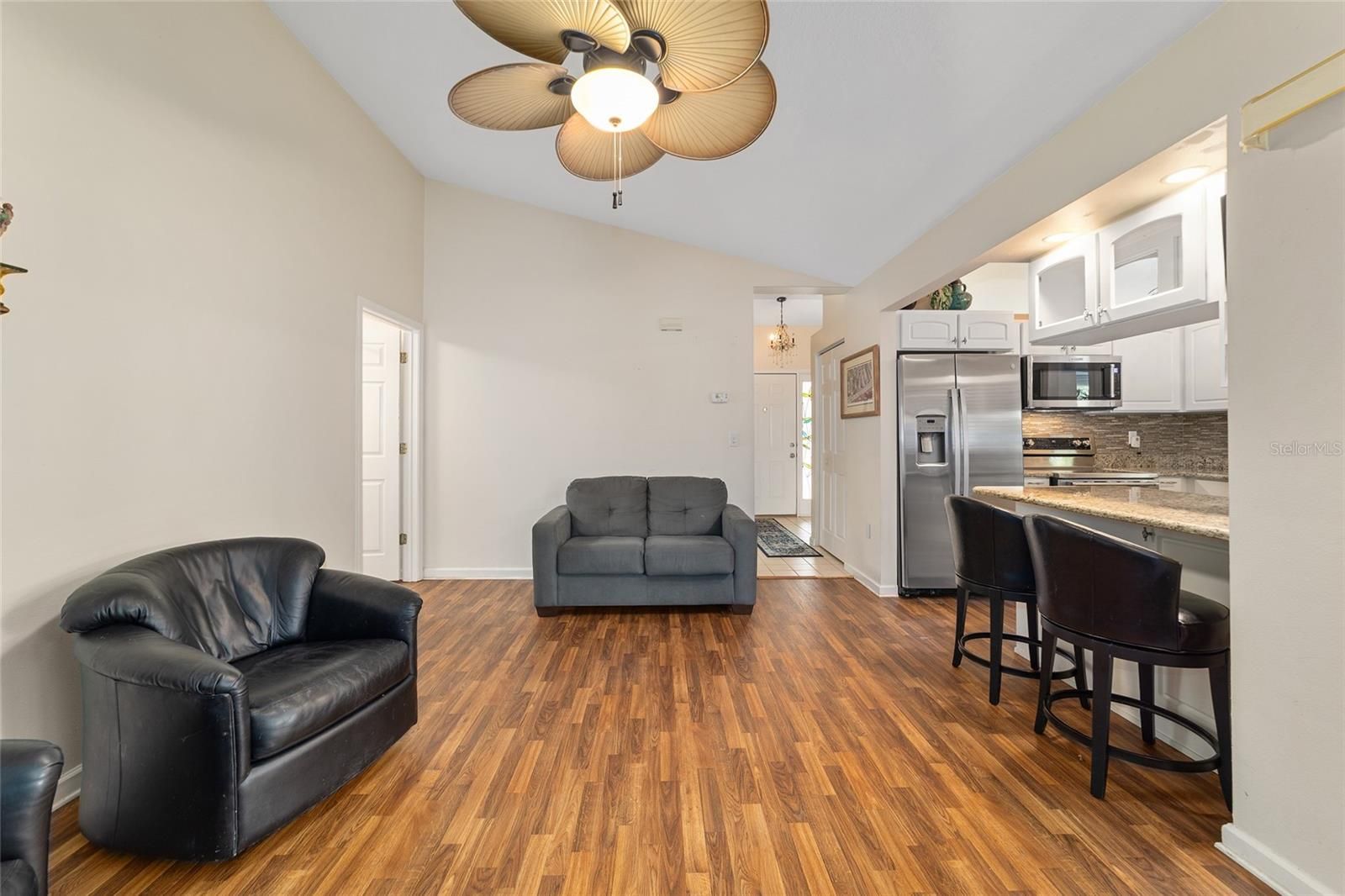 - Living/Dining Room, Main Level Primary, Thermostat, Window Treatments