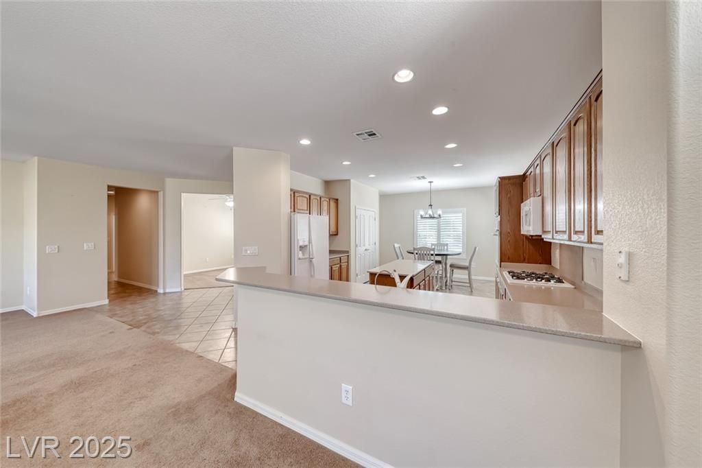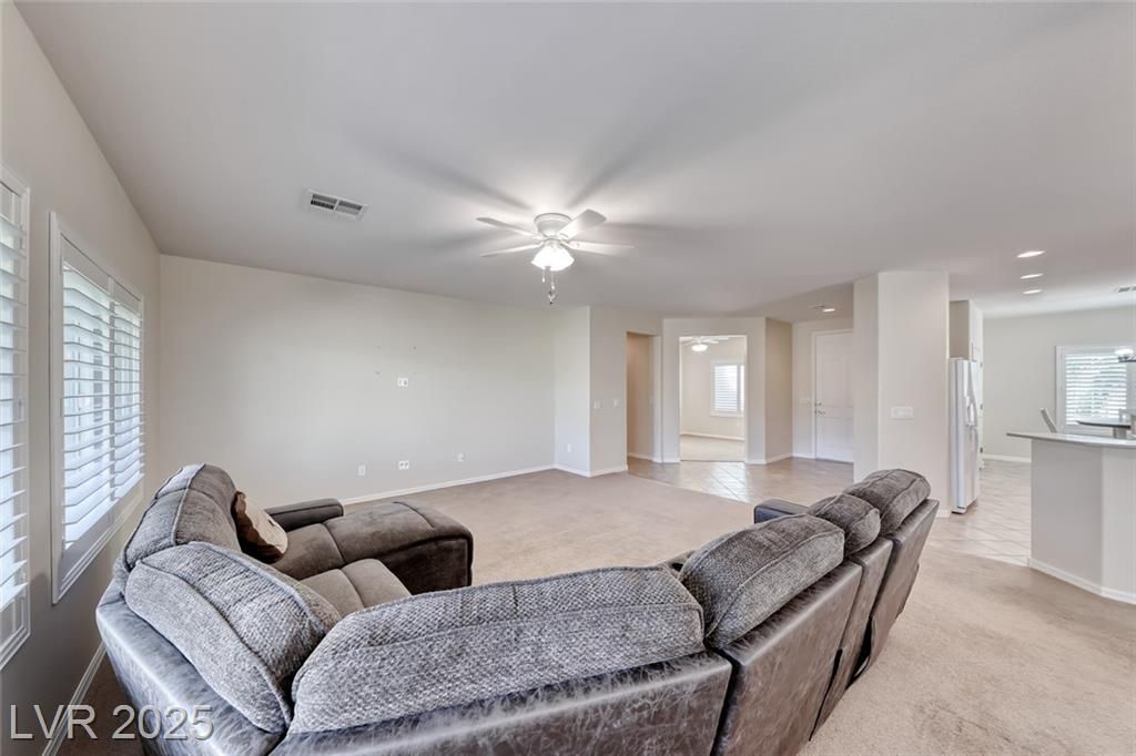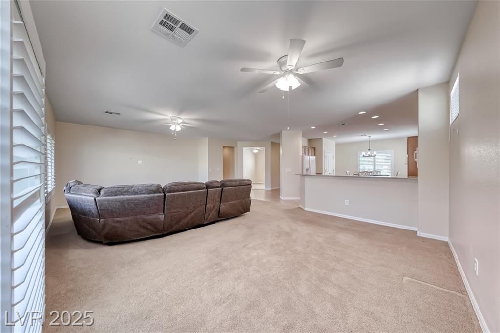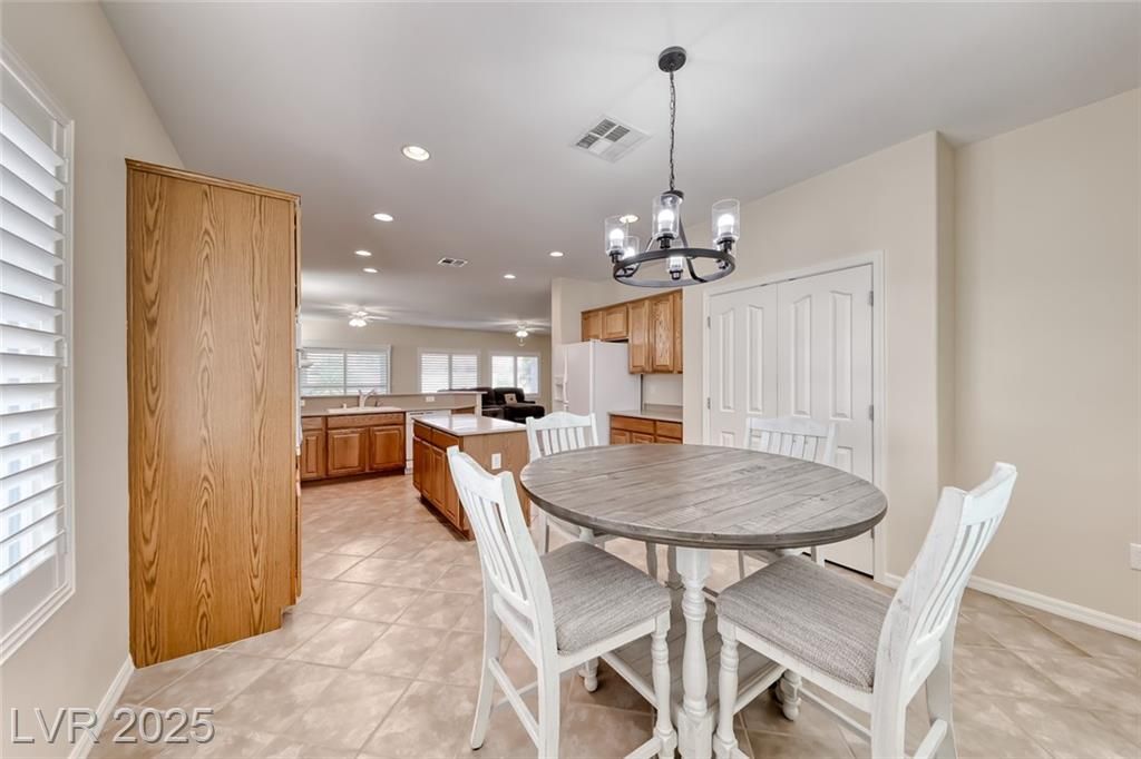 One of the most popular floor plans in Sun City Anthem, this Lincoln model welcomes with a bright and open living room filled with natural light, multiple dining areas, and a spacious kitchen with a large island, perfect for both everyday meals and gatherings. The oversized primary suite serves as a relaxing retreat, offering a comfortable sitting area and direct patio access, while the versatile den/office provides flexible space for hobbies or work. Step outside to a peaceful backyard with a covered patio and Black Mountain views, enhanced by easy-care desert landscaping and synthetic grass for low-maintenance enjoyment. Added comforts include a newer AC unit and water heater, Culligan water softener, washer & dryer. Located just one block from the Liberty Recreation Center, with two additional clubhouses nearby, the community offers top-notch amenities including pools, fitness centers, pickleball, tennis, 2 golf course and over 60 clubs for a vibrant, active lifestyle.