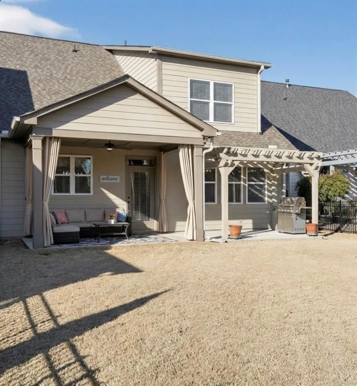 Welcome to this exquisite 4-bedroom home located in a vibrant 55+ Active Adult Community. Perfect for those seeking both luxury and community amenities, this residence is designed for comfortable, upscale living. The elegant Primary Suite is conveniently located on the main level, featuring a spacious bathroom with double sinks, granite countertops, shower, and an expansive closet. An additional bedroom and full bath are also on the main level, providing convenience and versatility. The kitchen is a chef's delight, boasting a large island with quartz countertops, sleek white cabinets, and a custom stove hood and drop in microwave in the island. It seamlessly opens to a welcoming family room, ideal for entertaining and family gatherings. The upper level includes a large bonus room that can easily serve as a fifth bedroom, along with two additional bedrooms and a full bath. Enjoy the extra-large lot, complete with a wrought iron fenced-in, level backyard. Relax under the covered patio or the built-in pergola on the concrete pad. The community offers a clubhouse, pool, pickleball, tennis courts, fitness center, a Nature Trail and a community garden, enhancing the active lifestyle. Recent upgrades include custom lighting and a freshly painted main level, including walls, ceilings, and baseboards. The property also boasts an extra-long driveway, providing ample parking space. All of the windows facing the South and Backyard have a UV Window Treatment on them. The HOA covers the cost of Cable, Internet and Lawn Service. This home is a perfect blend of modern comfort and active community living. Don’t miss the opportunity to make it your own! The sellers are very meticulous!
