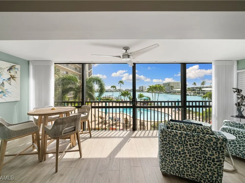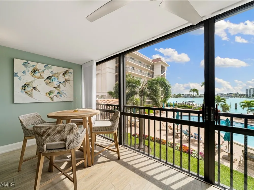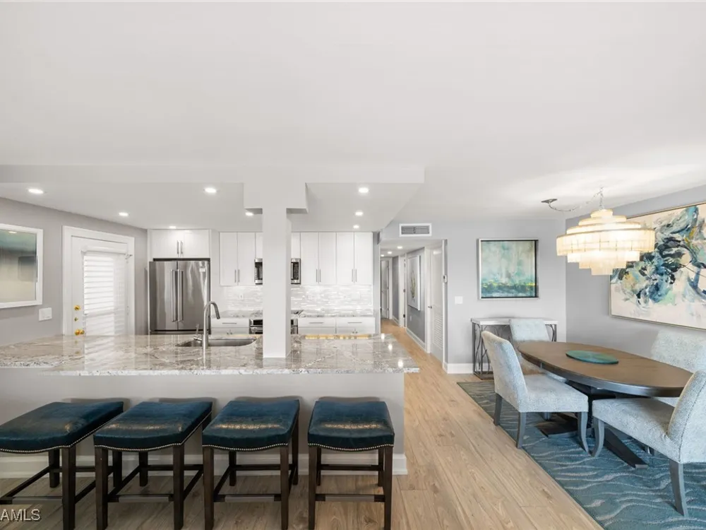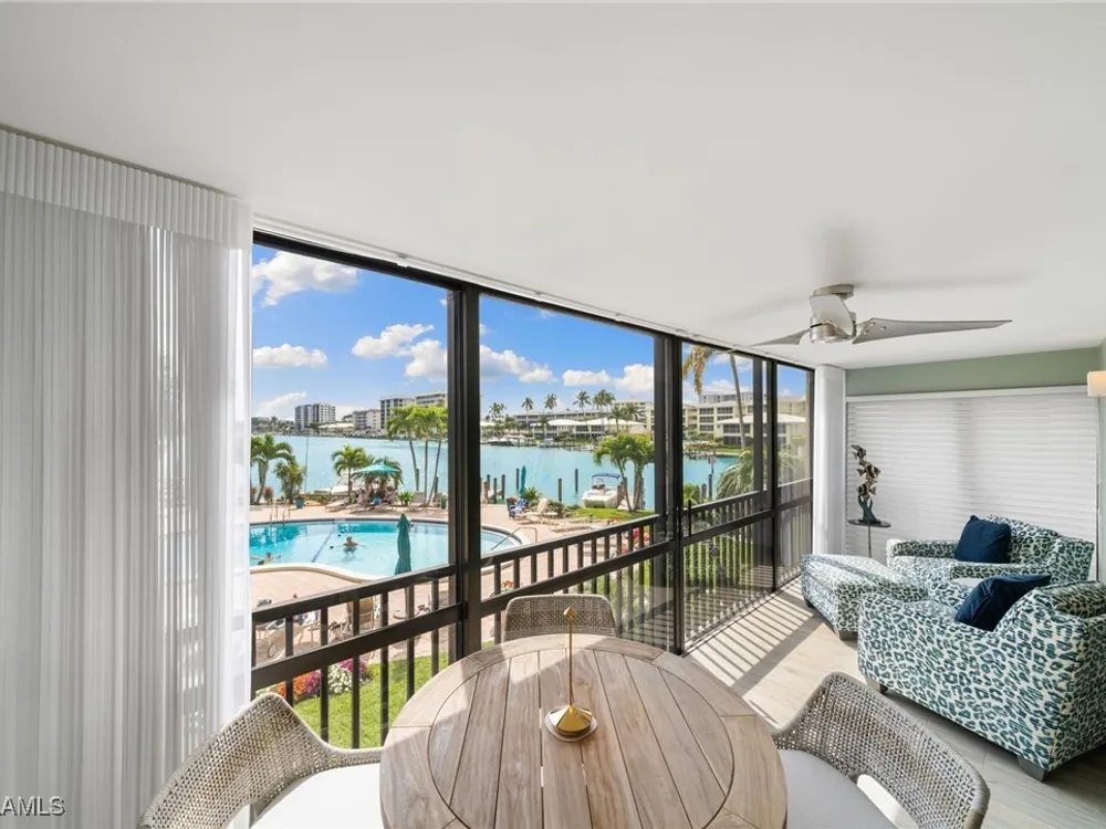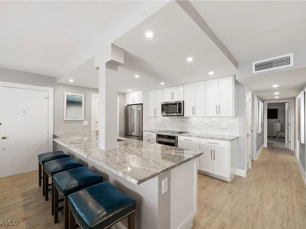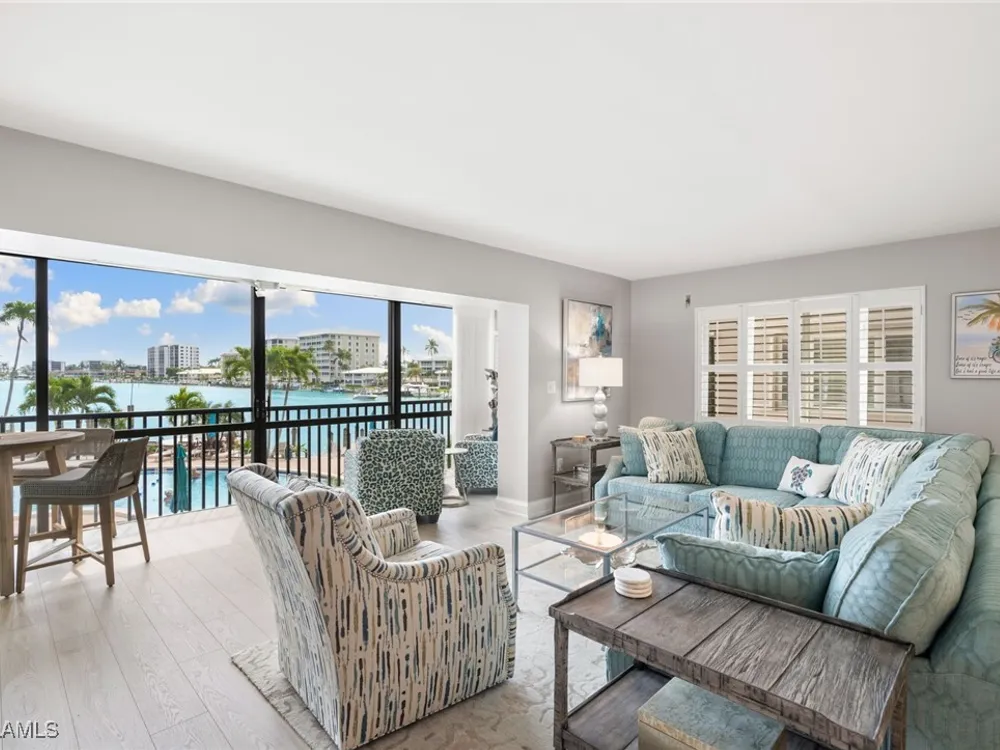 This beautifully renovated two-bedroom, two-bathroom condo offers breathtaking, expansive views of the bay. Bathed in natural light, the unit features a desirable southern exposure. With no bridges between you and the Gulf of Mexico, it’s a boater’s paradise, and boat slips are available for lease exclusively to owners at affordable rates. The bathrooms have been fully upgraded with marble floors, vanities, and modern fixtures. The kitchen is open to the living space, showcasing incredible bay views, a breakfast bar, KitchenAid appliances, granite countertops, and sleek white cabinetry. Low condo fees cover A/C and water heater replacements when needed, making maintenance worry-free. Assigned covered parking and ample guest parking are available for convenience. As an added bonus, this property is eligible for the Moorings Beach Club membership. Being sold fully furnished, all you need to do is move in and start enjoying. Located just a short stroll from the pristine beach, the condo is also ideally situated near the Venetian Village and within easy reach of downtown Naples, Waterside Shops, and Mercato, offering an abundance of dining, shopping, and entertainment options. Commodore Club II features: Two-year-old roof, new elevators, a pool overlooking the bay, and an updated outdoor entertainment area with a Tiki hut, kitchen, and BBQ space. No assessments at this time and the quarterly fees are $3703.00.