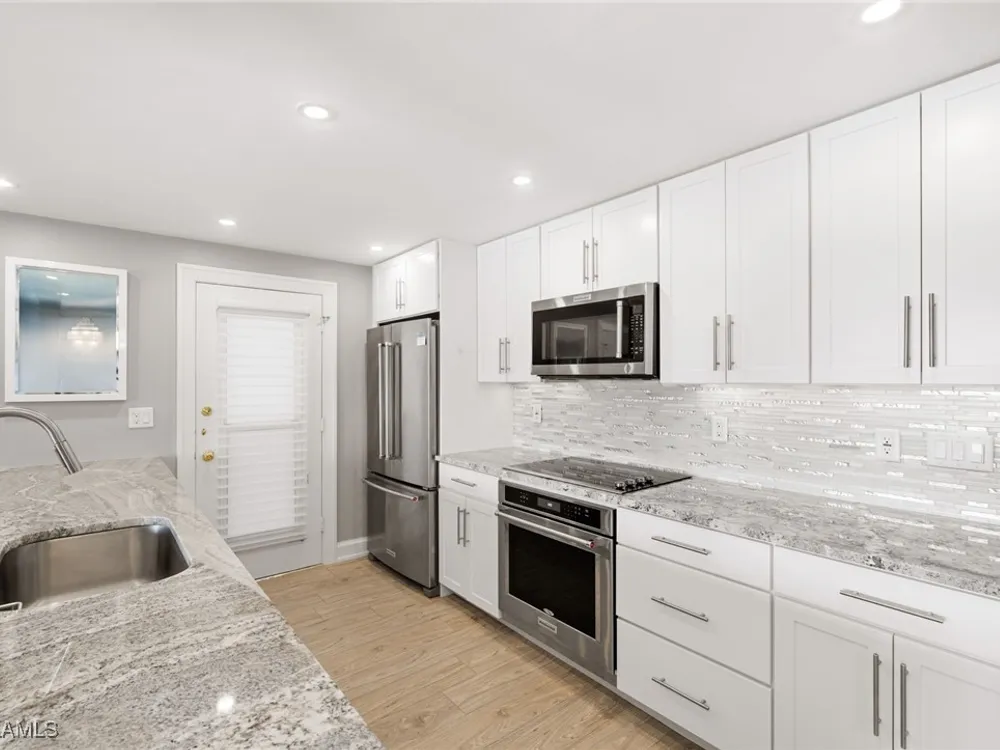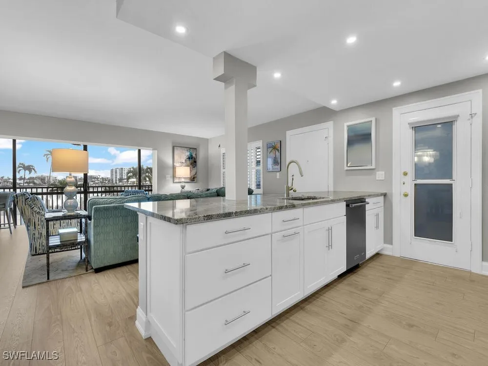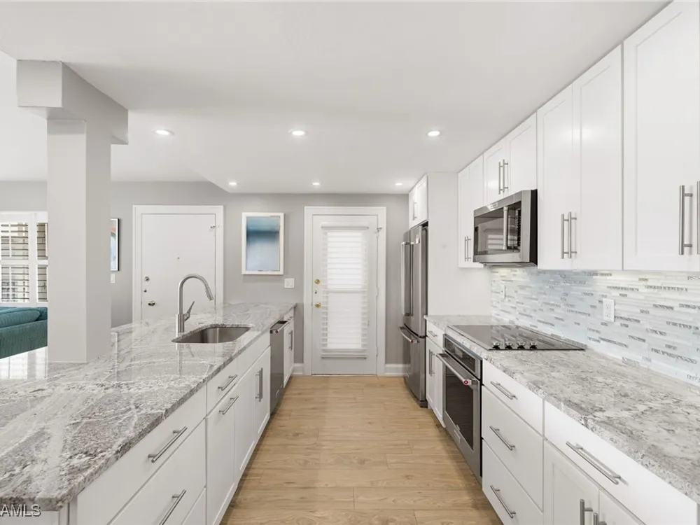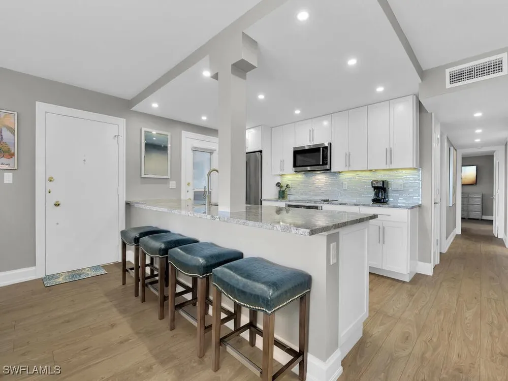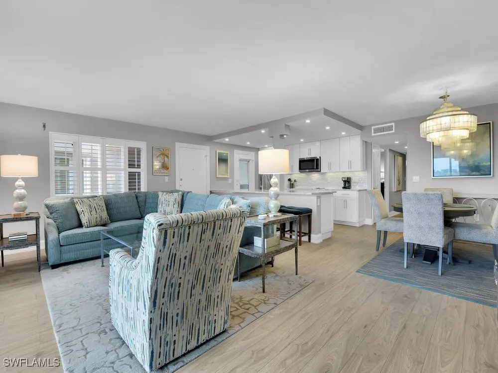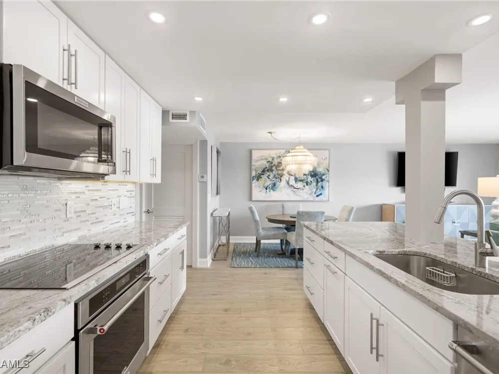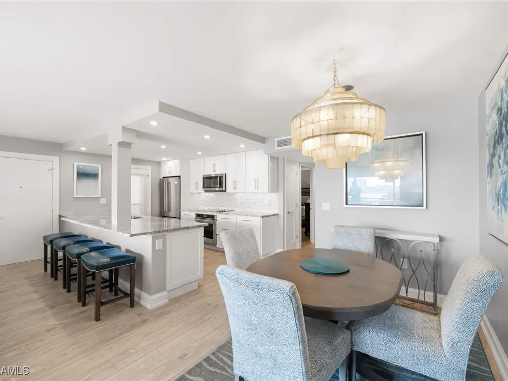 This beautifully renovated two-bedroom, two-bathroom condo offers breathtaking, expansive views of the bay. Bathed in natural light, the unit features a desirable southern exposure. With no bridges between you and the Gulf of Mexico, it’s a boater’s paradise, and boat slips are available for lease exclusively to owners at affordable rates. The bathrooms have been fully upgraded with marble floors, vanities, and modern fixtures. The kitchen is open to the living space, showcasing incredible bay views, a breakfast bar, KitchenAid appliances, granite countertops, and sleek white cabinetry. Low condo fees cover A/C and water heater replacements when needed, making maintenance worry-free. Assigned covered parking and ample guest parking are available for convenience. As an added bonus, this property is eligible for the Moorings Beach Club membership. Being sold fully furnished, all you need to do is move in and start enjoying. Located just a short stroll from the pristine beach, the condo is also ideally situated near the Venetian Village and within easy reach of downtown Naples, Waterside Shops, and Mercato, offering an abundance of dining, shopping, and entertainment options. Commodore Club II features: Two-year-old roof, new elevators, a pool overlooking the bay, and an updated outdoor entertainment area with a Tiki hut, kitchen, and BBQ space. No assessments at this time and the quarterly fees are $3703.00.