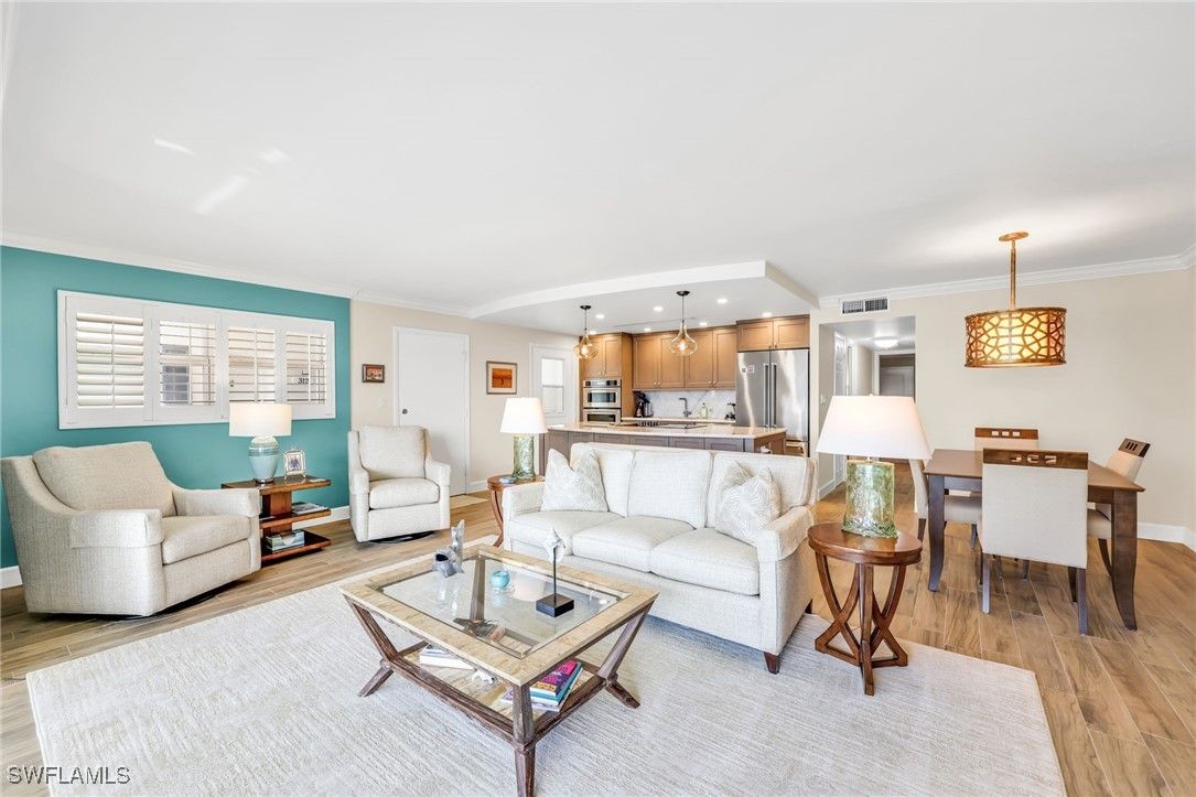 Welcome to Commodore Club , unit 310. This spacious 2 bedroom 2 bath home is being sold turnkey. Spectacular long views of Moorings Bay from the lanai, living room or kitchen. The entire unit has been recently remodeled. The kitchen has an oversized island, stainless steal appliances and ample storage space. Wood tone tile throughout the living area. Both bathrooms have been updated. This property is deeded with a boat slip. The building and property has been well maintained with new roof, elevators and seawall in recent years. Commodore Club is a special place to call home.