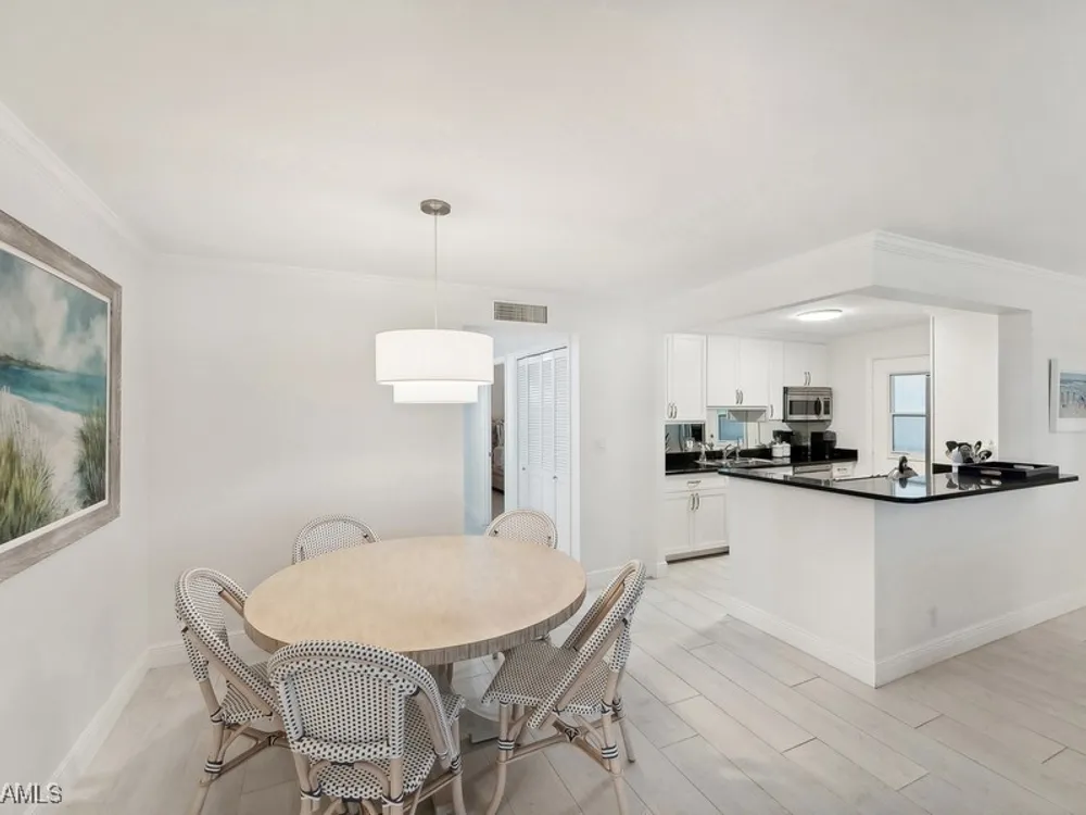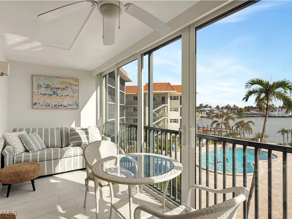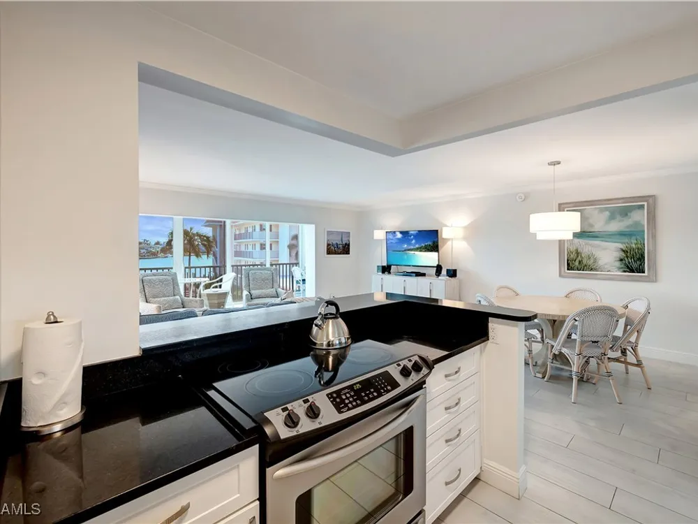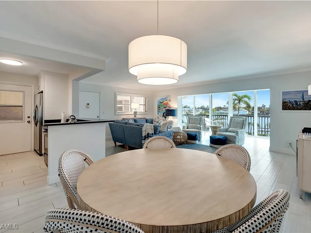 A seamless blend of modern sophistication and coastal charm! Enjoy stunning views from this renovated condo on Moorings Bay with direct access to the Gulf of America. The bright, open floor plan features elegant upgrades with light wood-like tile floors, custom closets, motorized blinds and plantation shutters. Enjoy the convenience of walking to the beach or dining and shopping at the fabulous shops nearby at Venetian Village.