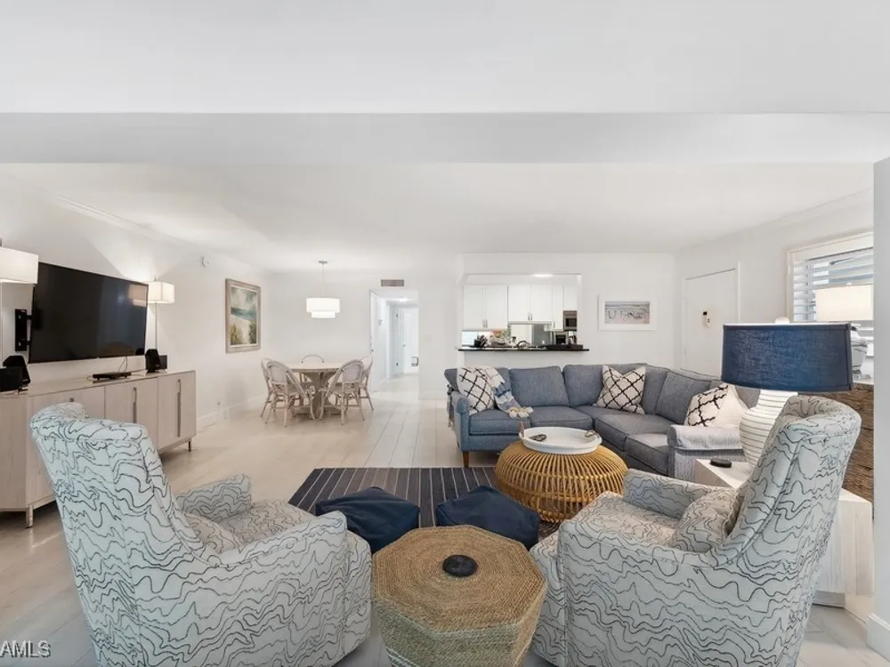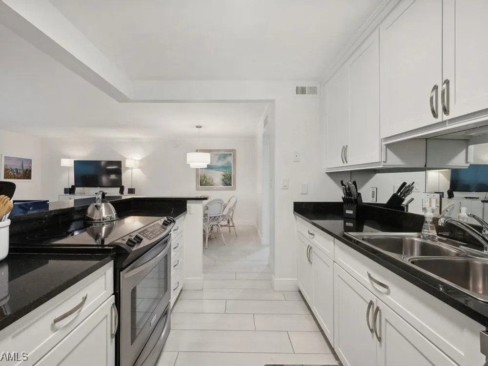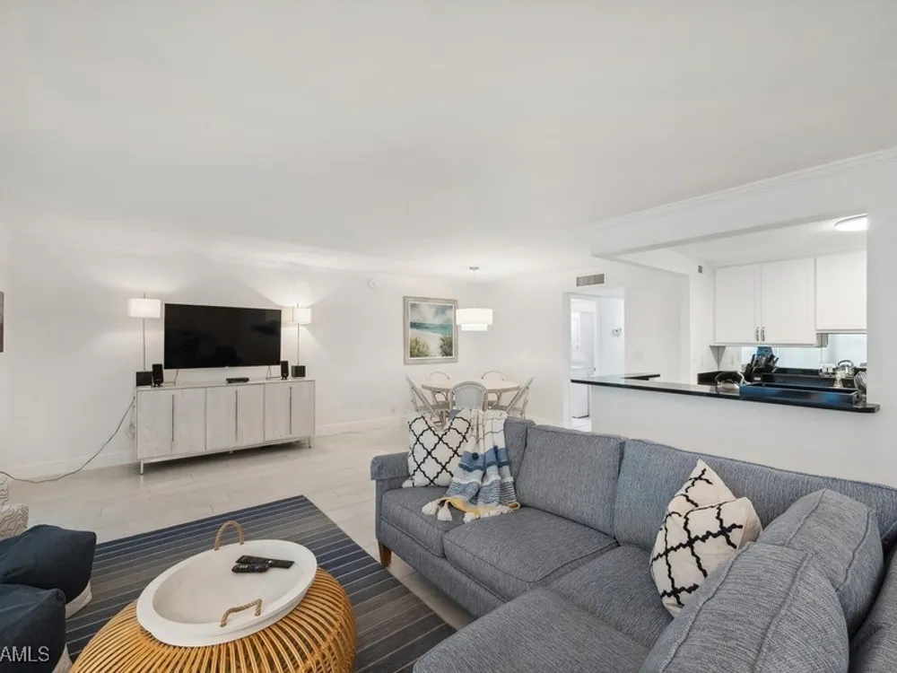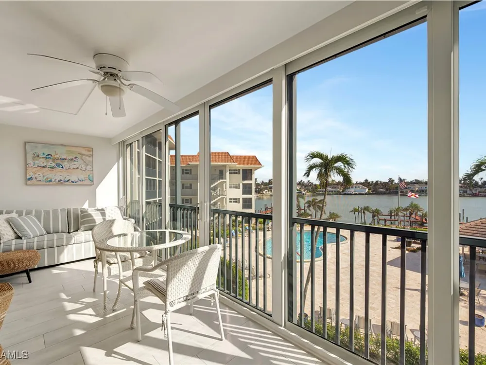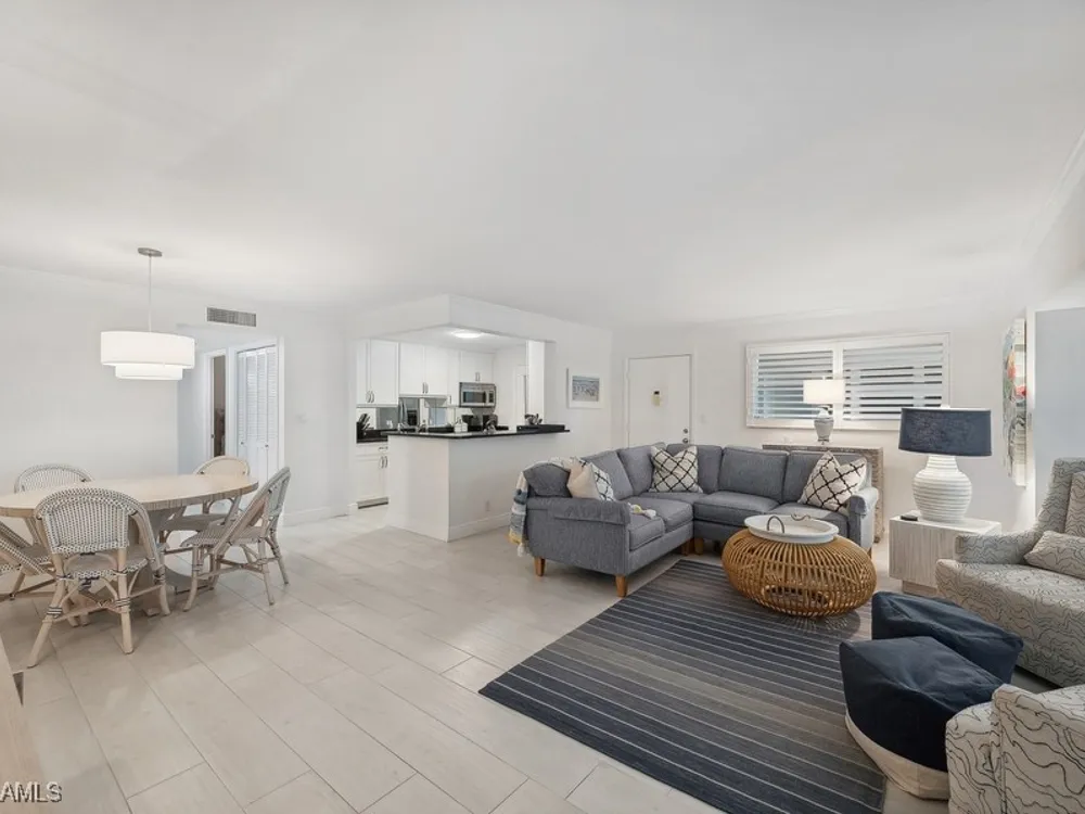A seamless blend of modern sophistication and coastal charm! Enjoy stunning views from this renovated condo on Moorings Bay with direct access to the Gulf of America. The bright, open floor plan features elegant upgrades with light wood-like tile floors, custom closets, motorized blinds and plantation shutters. Enjoy the convenience of walking to the beach or dining and shopping at the fabulous shops nearby at Venetian Village.
