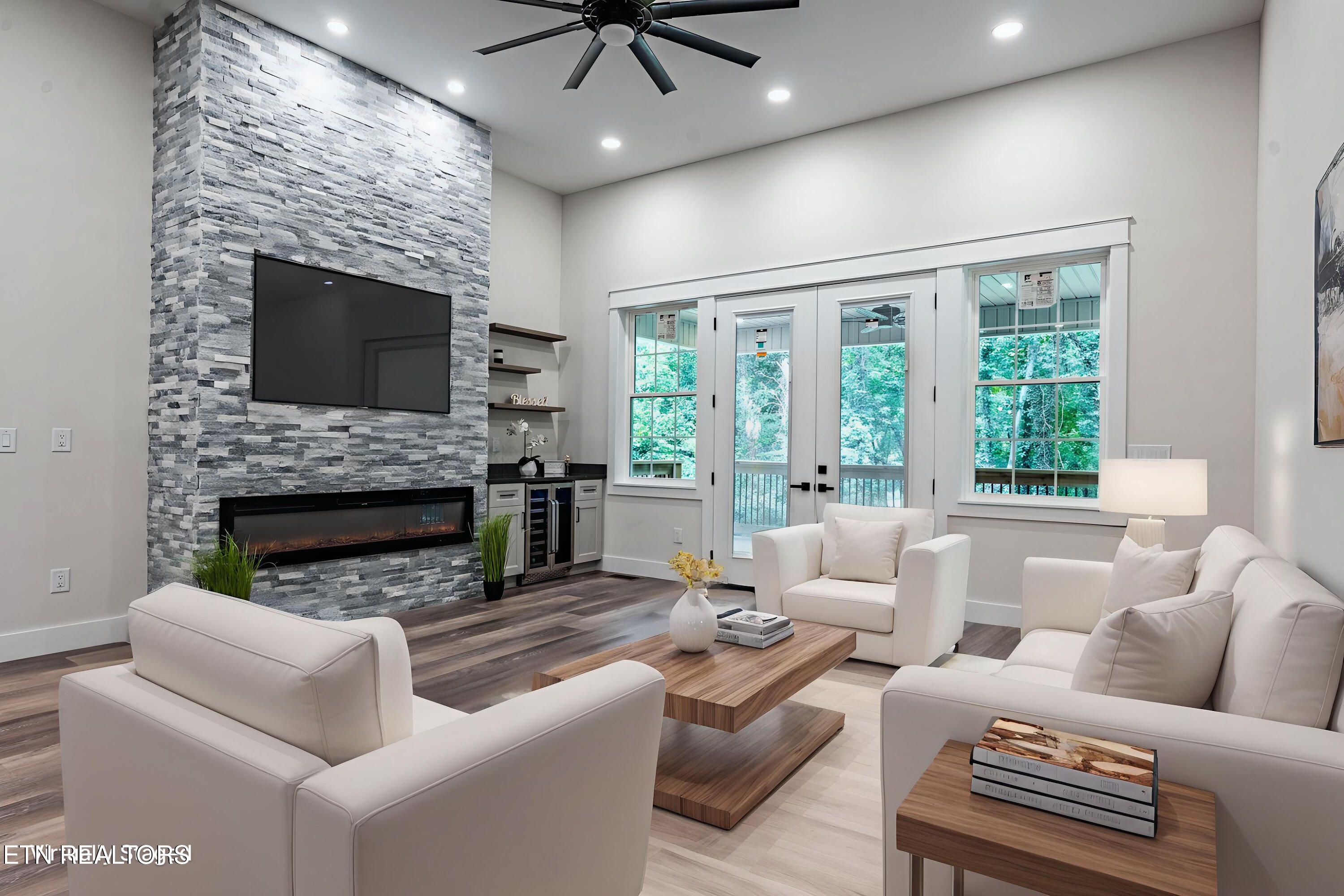 Seller incentives- Seller offers one year paid Hoa credit plus washer/dryer up to $2,000 in value if you sign a contract until November 30th. Stunning new construction in Tellico Village- All brick, elegance, and exceptional craftsmanship. Welcome to this beautiful designed, all-brick new construction home in the desirable Tellico Village community. Built with quality and timeless elegance in mind, this residence showcases impressive architectural details, abundant natural light, and high end finishes throughout. Step through the elegant 8-foot front and back doors into a spacious layout featuring 12-ft high ceilings, a grand formal dining room, and a generous family room centered around a striking 12-foot tall natural stone electric fire place. The chef's kitchen is a true showstopper, with an oversized layout, tall, soft, closed cabinets, stunning quartz countertops, a massive island, electric cooktop, and a built in microwave and oven. A walk in pantry offers ample storage, while the mudroom adds everyday convenience. Conveniently located near the mudroom and pantry is the laundry room that besides its generous size also offers something unique, a shower station designed for your furry family friends. Retreat to the luxurious master suite, which includes a spacious walk-in closet (Professionally Designed) a spa like bathroom with a walk-in shower, soaking tub, and enclosed toilet. Two additional bedrooms feature large closets, also professionally designed for optimal storage, along with the two closets in the hallway for extra storage. Additional features include: Elegant can lighting throughout the entire home, stylish fixtures and ceiling fans in every room, pet shower for your furry family members in the laundry room, oversized 3 car garage with modern glass inserts for added natural light, covered deck with stairs leading to a covered patio for year- round enjoyment, encapsulated crawlspace that can be used for storage, professional landscaping, with an irrigation system. This is a solid costruction built with floor and roof trusses professionally engineered and 2 x 6 crawlspace framing. Every detail has been thoughtfully planned to offer the perfect blend of style, functionality, and comfort. Don't miss this rare opportunity to own a brand new professionally built home in the heart of Tellico Village. Schedule your private showing today the exceptional quality for yourself. Buyer has to reimburse seller for Impact Fee.