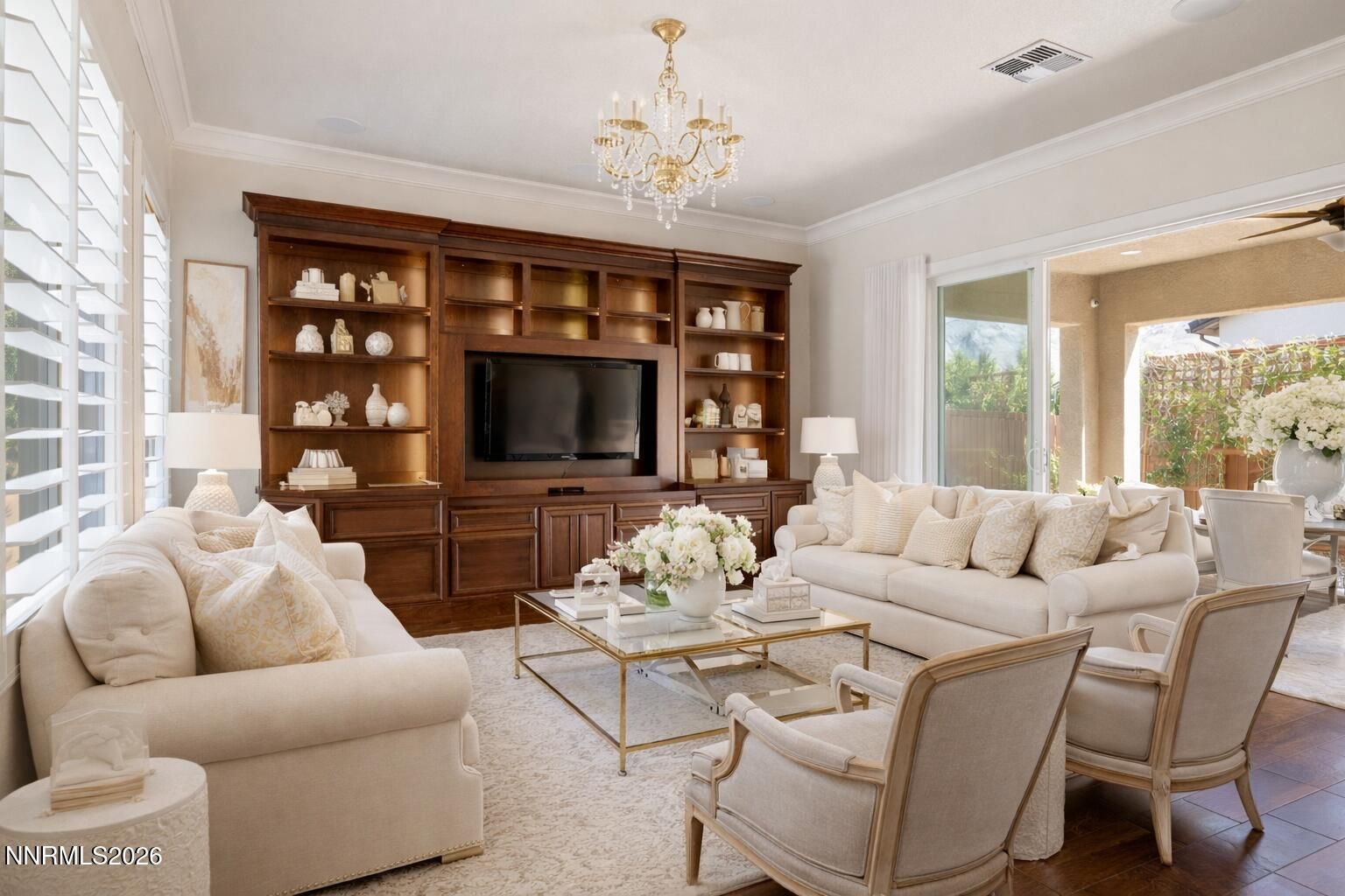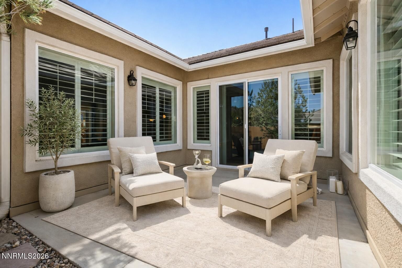 Turnkey luxury, thoughtful upgrades, and effortless 55+ living in one of Reno's most desirable active-adult communities. You can be as active as you want or not. The friendliest neighborhood I have ever visited, they miss seeing their friend on the upgraded front courtyard. Only 15 miles to Mt. Rose, excellent skiing. With well over 300k in upgrades, and a cute walking path leads right to the community center With 2 bedrooms a Den, 2.5 bathrooms, and 2,223 square feet, this home blends style, comfort, and convenience in a layout designed for both daily living and entertaining. Step outside to experience three separate, beautifully landscaped outdoor spaces: a private courtyard for morning coffee, a side patio perfect for intimate gatherings, and a backyard ideal for relaxing or entertaining. Each space is low-maintenance and thoughtfully designed to maximize privacy and enjoyment, while keeping you just steps from the clubhouse and community amenities, including fitness, walking paths, and social activities. Inside, the home is filled with upgrades that would cost tens of thousands to replicate today. Hardwood floors flow throughout the main living spaces, complemented by custom cabinetry, built-ins, and premium storage solutions. The kitchen features soft-close cabinets, full-extension drawers, and the KitchenAid Gourmet Package with built-in refrigerator and wine fridge, making hosting effortless. The primary suite is a private sanctuary, complete with frameless rain-style glass, solar tube lighting, and upgraded finishes, while bathrooms and living areas reflect quality craftsmanship and attention to detail throughout. Technology and comfort are seamlessly integrated, including a home theater sound package, upgraded HVAC, radiant barrier roof, insulated walls, and advanced window treatments, creating a home that's as efficient as it is elegant. Every detail—from courtyard gates and in-ground lighting to upgraded doors and garage-yard access—enhances the sense of luxury and ease. Highly regarded by neighbors as one of the top homes on the market, 2220 Arpagos Lane delivers turnkey living with upgrades, privacy, and style that are rarely available in Presidio. For those seeking move-in ready perfection in a vibrant 55+ community, this home is an extraordinary opportunity to enjoy lifestyle, comfort, and convenience all in one exceptional package. Call for a private showing.