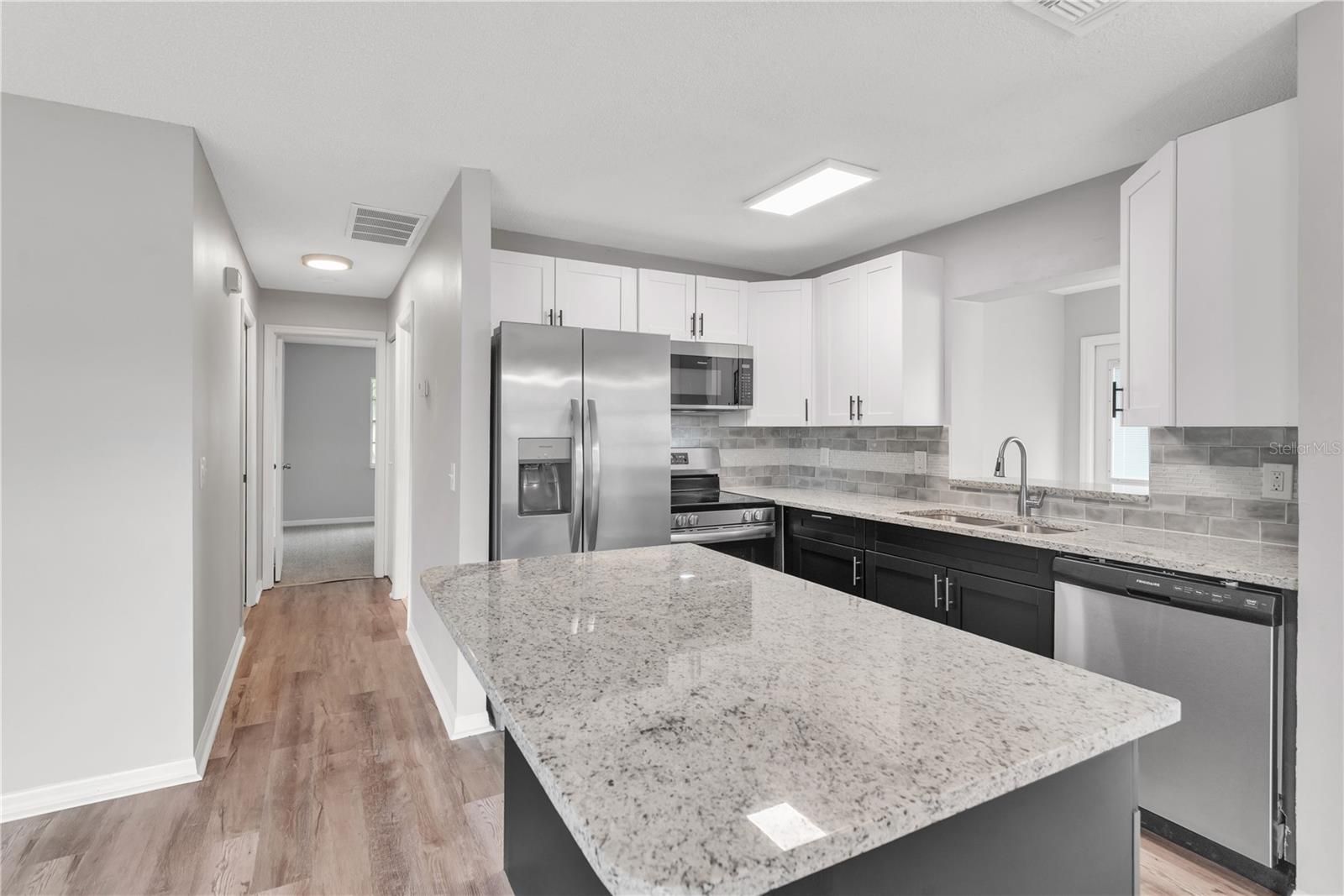 One or more photo(s) has been virtually staged. This home was professionally inspected by a Contractor following Hurricanes Helene and Milton, and I’m pleased to report it sustained no damage from the storms. Every detail of this freshly painted 2 Bedroom, 2 Bath condo has been restored and is ready for buyers with high expectations! The interior features custom neutral paint. The kitchen includes brand new wood custom cabinets in two tone color, solid stone countertops with a ¾ inch finished edge, and new matching stainless steel appliances. The living areas have new laminate flooring, while the bedrooms boast new carpet. Updated light fixtures and decorative ceiling fans add a modern touch with energy efficiency. This home includes a new central heat & air system installed in 2024. If your buyers want hassle-free living, this is the home they have been looking for! The master suite includes a private bath and spacious closet space. Both bathrooms have been fully upgraded, including granite countertops. The condo offers washer/dryer hookups and space for them and a golf cart, as well as a carport for convenient parking. Enjoy one of the most affordable yet fully remodeled homes in the area. Ground floor for easy entrance this condo offers easy access and a comfortable living space. Prime location near restaurants, shopping centers, entertainment, and more!
