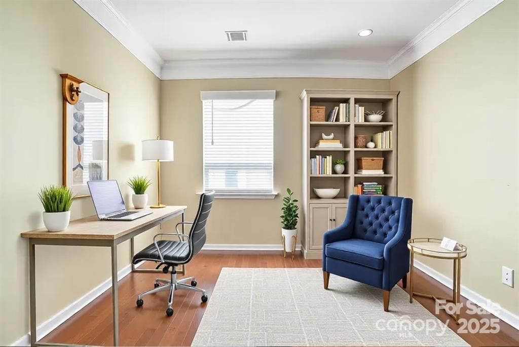 Seller is offering a rate buydown incentive! This beautifully designed home blends elegance with artistic flair, beginning with a striking grand foyer. The open-concept layout seamlessly connects the formal dining area to the spacious family room and sunroom. Step out to the charming screened-in porch—perfect for enjoying peaceful mornings or quiet evenings. With over 2,900 sq. ft. of living space, this home is well-suited for extended family stays or hosting guests. It features 3 generously sized bedrooms and 3 full bathrooms. The kitchen is a chef’s dream, complete with stainless steel appliances, granite countertops, a stylish backsplash, a walk-in pantry, 42-inch cabinets, a center island, and a cozy breakfast nook with a built-in study space. The main-level primary suite offers a tranquil retreat with a tray ceiling, walk-in closet, and spa-like ensuite featuring a garden tub, separate shower, and dual vanities. Also on the main level are a welcoming guest bedroom and a private office—perfect for remote work. Upstairs, enjoy a bright and airy loft area along with a spacious third bedroom that includes a walk-in closet. Located just minutes from top shopping, dining, and medical facilities, this home offers both luxury and convenience.
