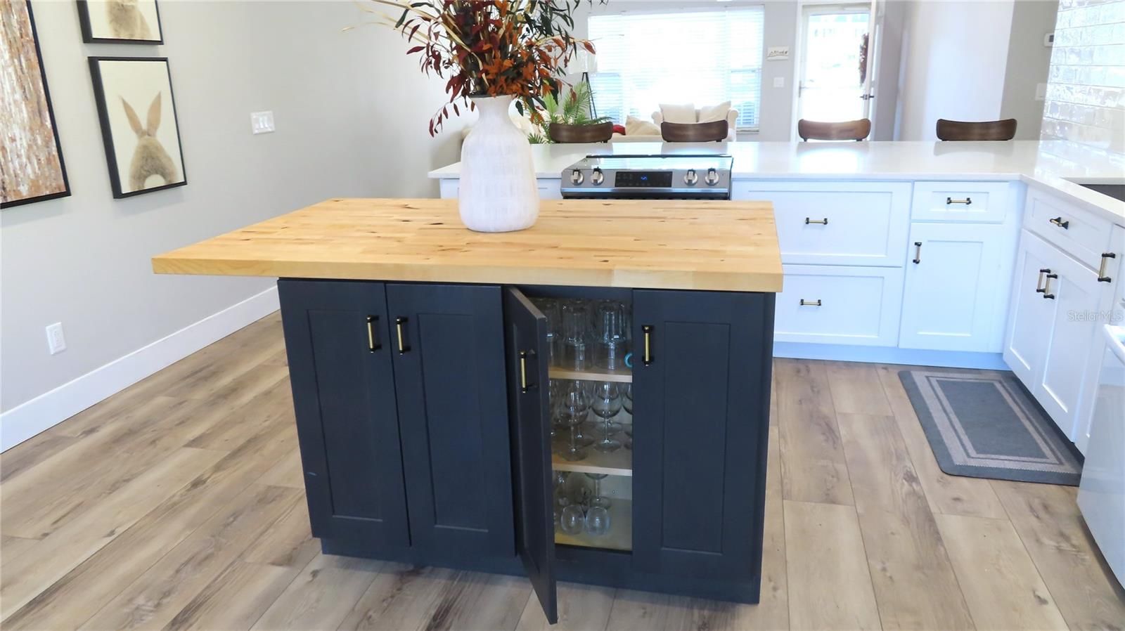 A move-in ready, beautifully remodeled, ground floor unit is waiting for you. This 1,400 sq. ft. 2 bedroom, 2 bathroom unit boasts a new open-concept layout allowing for abundant sunlight. An all new kitchen with oversized quartz peninsula and counter tops, new custom cabinets, all new appliances, a butcher block island, and exceptional storage. There is luxury waterproof vinyl plank flooring throughout, new recessed lighting in the common areas, along with crown moldings and new ceiling fans. All rooms have been newly painted in neutral tones. Bathrooms have been refreshed with new sinks and counter tops and updated painted vanities. Enjoy sunny days and balmy nights on either your front patio (west facing) or back patio (east facing) where you might share cocktails or a BBQ with friends old or new. You will have the convenience of your own in-unit washer and dryer, endless hot water from the new (2025) tankless water heater, new electric panel and receptacles and newer tinted vinyl windows. Your assigned parking space is right outside your front door. Don’t have a car or can’t drive?- the bus stops right in front of the building. On Top of The World is a 55+ golfing community where owners golf for free on one of the two courses (a 9 hole and an 18 hole). There are 2 heated pools and a state of the art cardio gym. The community center hosts dances and live shows, offers a library, wood working shop, exercise classes and many other clubs and activities. OTOTW offers all the news that’s fit to print in its own newspaper. The community also offers fishing, kayaking and walking paths. The beach, shopping, medical facilities are all close by. Come see me!