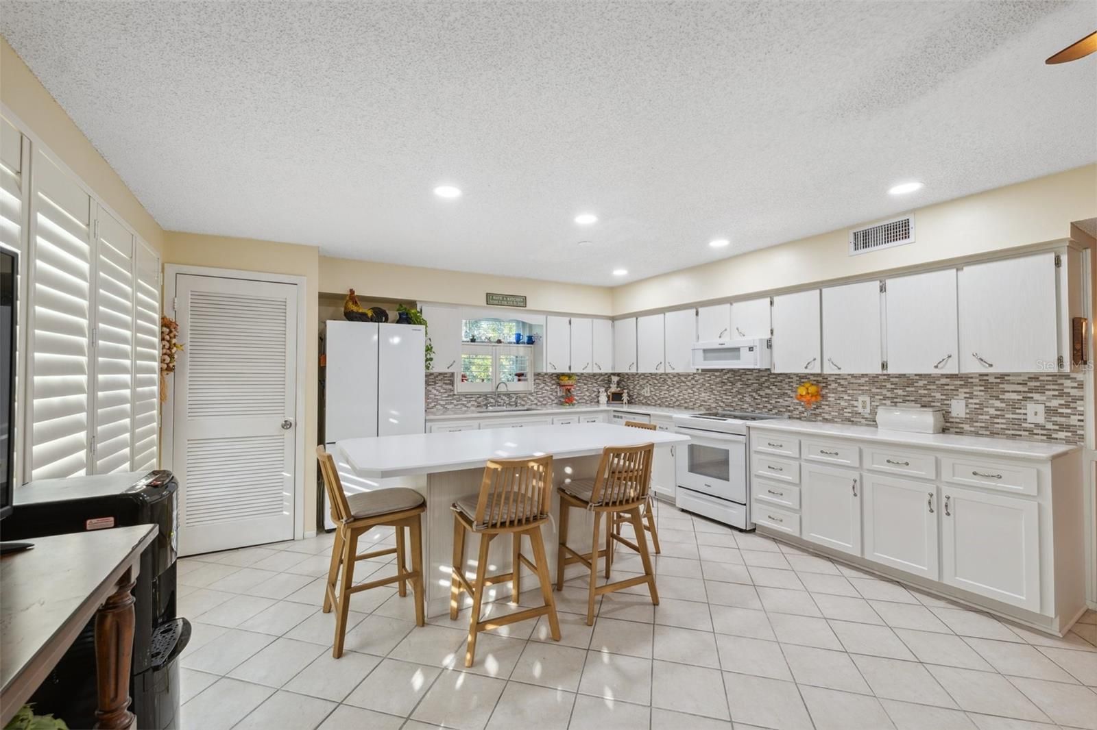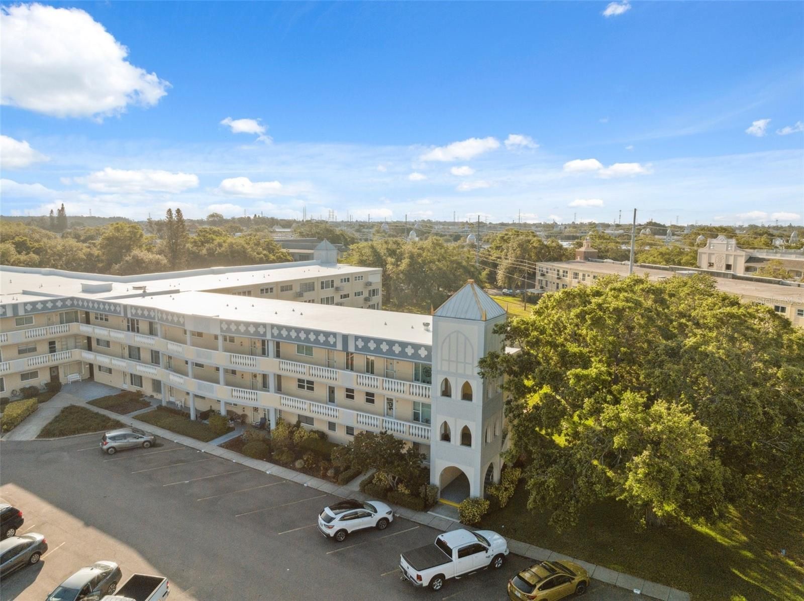 Often desired, rarely available VICEROY FLOORPLAN 3 BED, 3 BATH, TOP FLOOR, END UNIT in Clearwater's premier 55+ community, On Top of the World. Enter through a grand foyer, with a private library to one side and a spacious living room to the other. The living room, dining area, and LIBRARY boast luxury vinyl flooring, complemented by elegant tile in the kitchen and baths. The sophisticated dining space, adjacent to the living room, is perfect for intimate meals or festive gatherings. The updated kitchen features gorgeous granite countertops, tile backsplash, white cabinetry, under cabinet lighting, a large pantry, modern appliances, and an island with bar seating and additional storage--ideal for cooking and casual dining. Open to a second generous living area, both rooms benefit from updated IMPACT windows (installed 2020) for enhanced energy efficiency and abundant light. Plantation shutters add a refined touch throughout. The bathrooms, partially remodeled in 2022, showcase modern fixtures and finishes. The primary suite, accessed via French doors, offers a spacious walk-in closet, complete with an adorable chandelier. A stylish ensuite bathroom with a granite vanity, walk-in shower, and smart shelving completes the primary bedroom. The second bedroom, near a full bath with a newer vanity and tub-shower combo, ensures comfort, while the third bedroom serves as a flexible office, den, or guest space, adjacent to a third bath with a walk-in shower. A UTILITY ROOM room with stand alone washer and dryer and extra storage adds convenience. Enjoy a charming stairway landing just steps away, perfect for morning coffee or evening relaxation. You will have peace of mind as the entire building has just had a BRAND NEW ROOF! On Top of the World delivers resort-style living with two exclusive golf courses 9 and 18 holes that are free to resident owners with an activity card, two heated pools, tennis, pickleball, a fitness center, dog park, horseshoe pits, lawn bowling, and shuffleboard. A grand ballroom hosts live music and events, and an on-site café offers take-and-bake meals. On Top of the World has over 100 clubs and activities. Ideally located near Dunedin’s beaches, Clearwater Beach, upscale shopping, healthcare, and Tampa International and St. Pete/Clearwater Airports. Seize this chance for luxurious, active living in a vibrant community, safely outside flood and evacuation zones. 35% down required if financing. Call for you showing today!