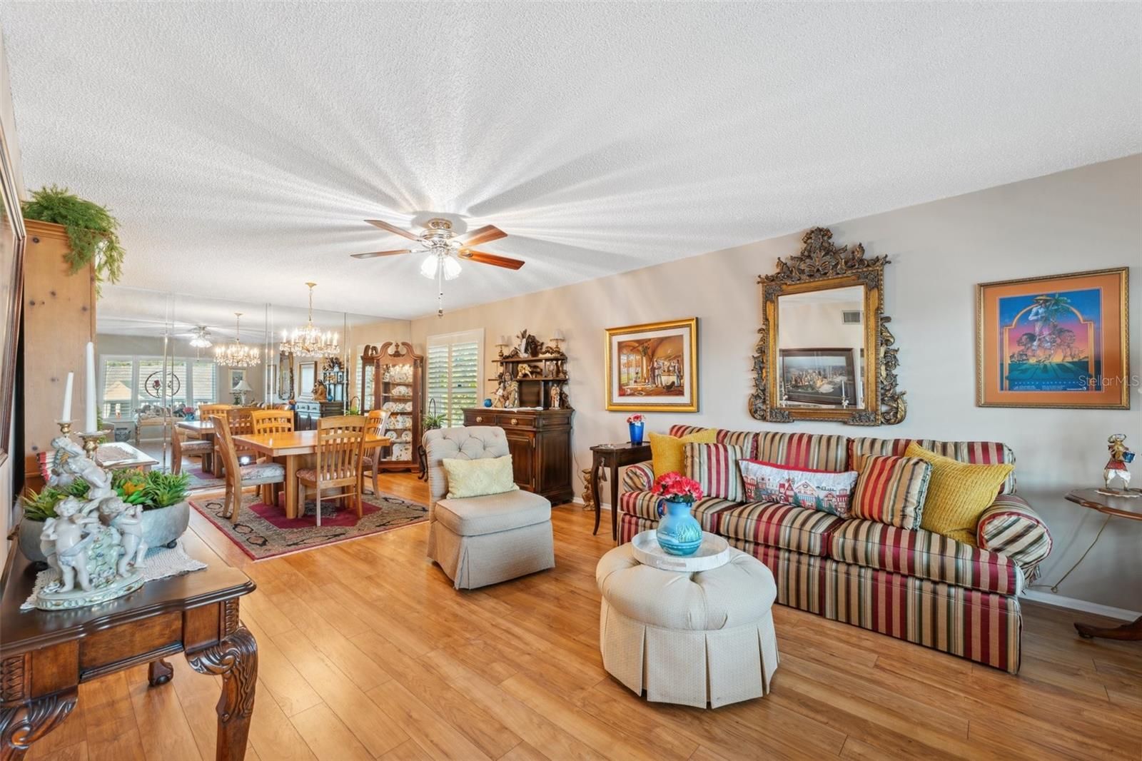 - Ceiling Fan(s), Eat-in Kitchen, High Ceilings, Kitchen/Family Room Combo, Living/Dining Room, Stone Counters, Thermostat, Walk-In Closet(s), Window Treatments