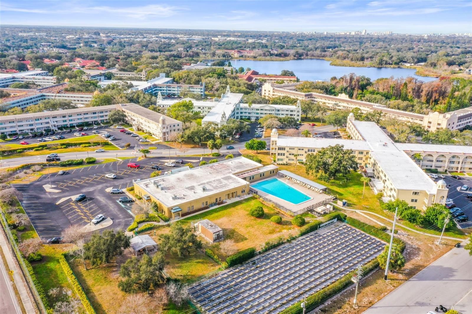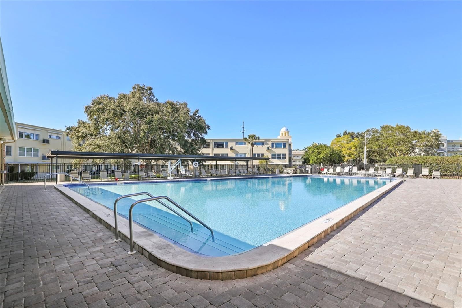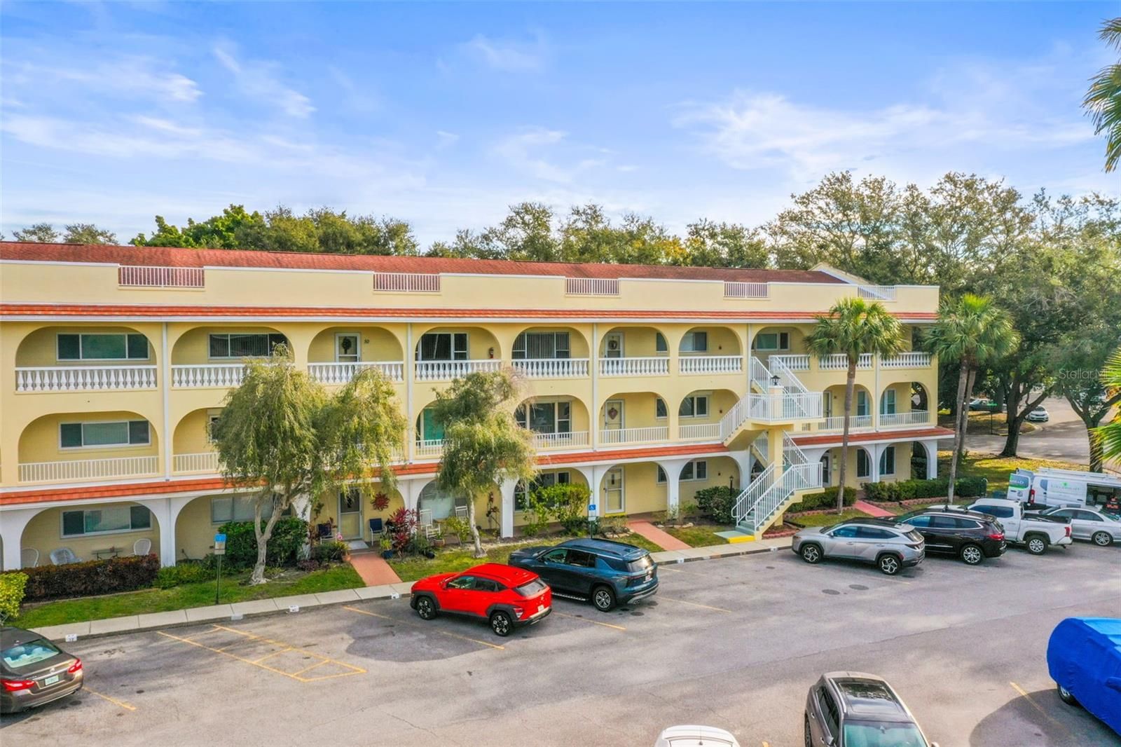 One or more photo(s) has been virtually staged. Welcome to lakeside living with modern comfort in the desirable Espana Building at On Top of the World. This move-in-ready, ground-floor condo offers the perfect blend of style, space, and convenience in a peaceful waterfront setting. This beautifully maintained residence features luxury vinyl plank flooring installed in 2022, creating a bright and cohesive living space throughout. The spacious living and dining areas flow seamlessly and open to two private covered patios, perfect for enjoying lake views, fresh breezes, and relaxing sunsets. The updated kitchen is equipped with stainless steel appliances added in 2021, generous cabinetry, and ample counter space for everyday living and entertaining. Both bedrooms are generously sized and include custom walk-in closets. Inside laundry with washer and dryer adds everyday convenience. This unit includes assigned parking and ample guest parking. The ground-floor location offers easy, stair-free access and enhanced accessibility. Residents of On Top of the World enjoy an exceptional resort-style lifestyle with two heated pools, fitness centers, walking and biking paths, shuffleboard, pickleball, tennis courts, clubhouse facilities, social clubs, dances, and a full calendar of events and activities designed for active living. The community is ideally located near shopping, dining, medical facilities, and world-famous Gulf beaches, offering both comfort and convenience. With thoughtful upgrades, spacious living areas, and access to unmatched amenities, this home offers more than just a place to live—it offers a lifestyle. This is a rare opportunity to own a beautifully updated lakeside condo in one of Clearwater’s most sought-after active communities.