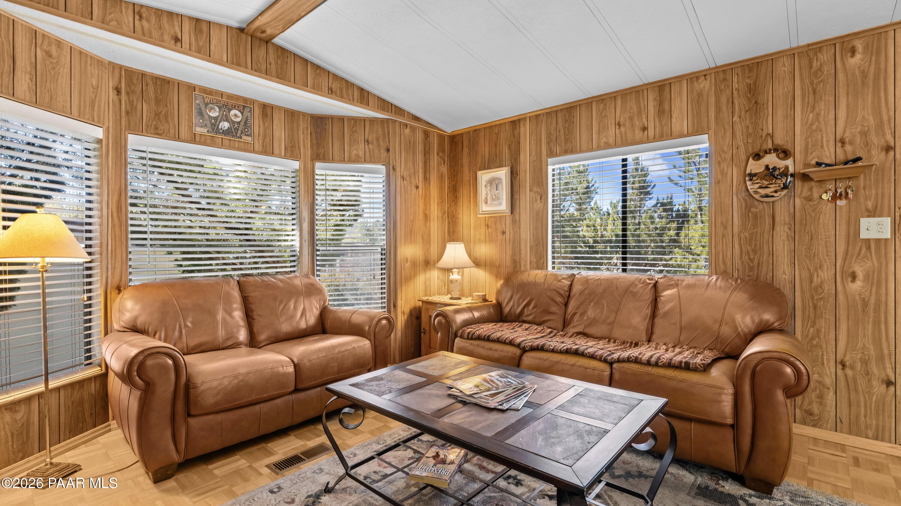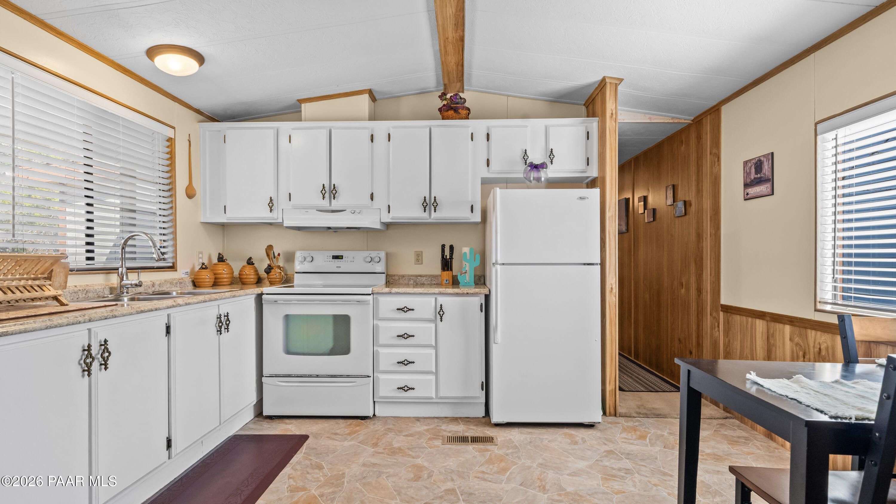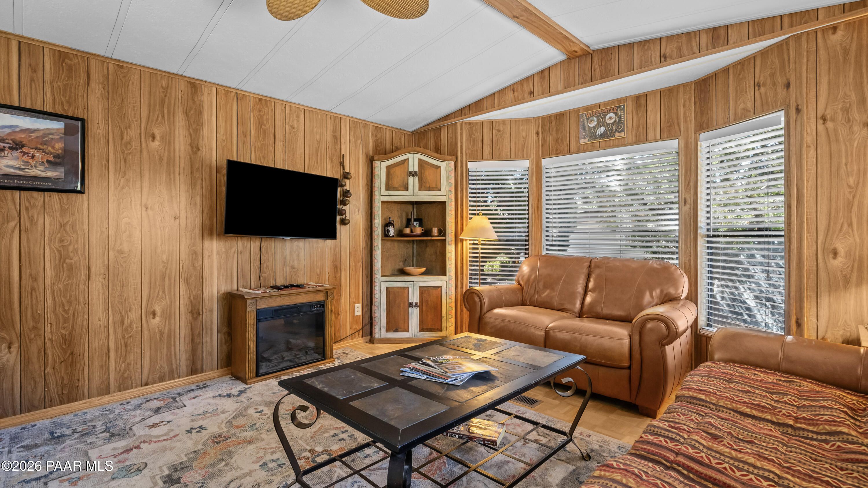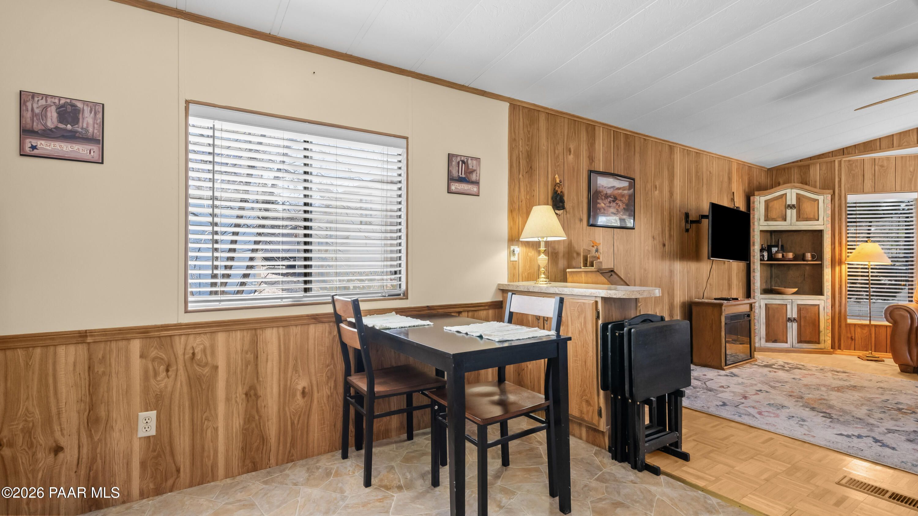 3 Bedroom Prescott Canyon Estates Home Backing to HOA Land with Detached Garage, Privacy, and Seasonal Creek Views. This 828 sq ft home is ideally positioned next to HOA open space, giving the property a rare feeling of extra privacy and elbow room while still being part of a welcoming 55+ community. Just across the street, a seasonal creek brings beautiful spring blooms, cool summer shade from mature trees, and vibrant fall color that adds to the peaceful setting.The home is move-in ready while also offering a great opportunity for buyers who want to update or personalize to their own style. Inside you'll find a bright living room with vaulted ceilings, large windows, and a cozy electric fireplace that creates a warm and comfortable gathering space. The kitchen offers ample cabinetry and an adjacent dining area perfect for everyday meals.The third bedroom located just off the deck offers flexible use and would make an excellent reading room, art studio, hobby space, or quiet retreat for visiting family and guests.Outside, enjoy a landscaped yard with mature pines, rock features, and multiple outdoor sitting areas perfect for relaxing and enjoying Prescott's mild four-season climate. A detached garage and extended driveway provide space for parking, storage, or workshop use.Located in Prescott Canyon Estates, residents enjoy HOA amenities including a clubhouse, indoor heated pool and spa, fitness center, and community activities. The home is conveniently located near shopping, restaurants, medical offices, hospitals, downtown Prescott, and the area's beautiful lakes and outdoor recreation.This property offers privacy, natural surroundings, and convenient access to everything Prescott has to offer.