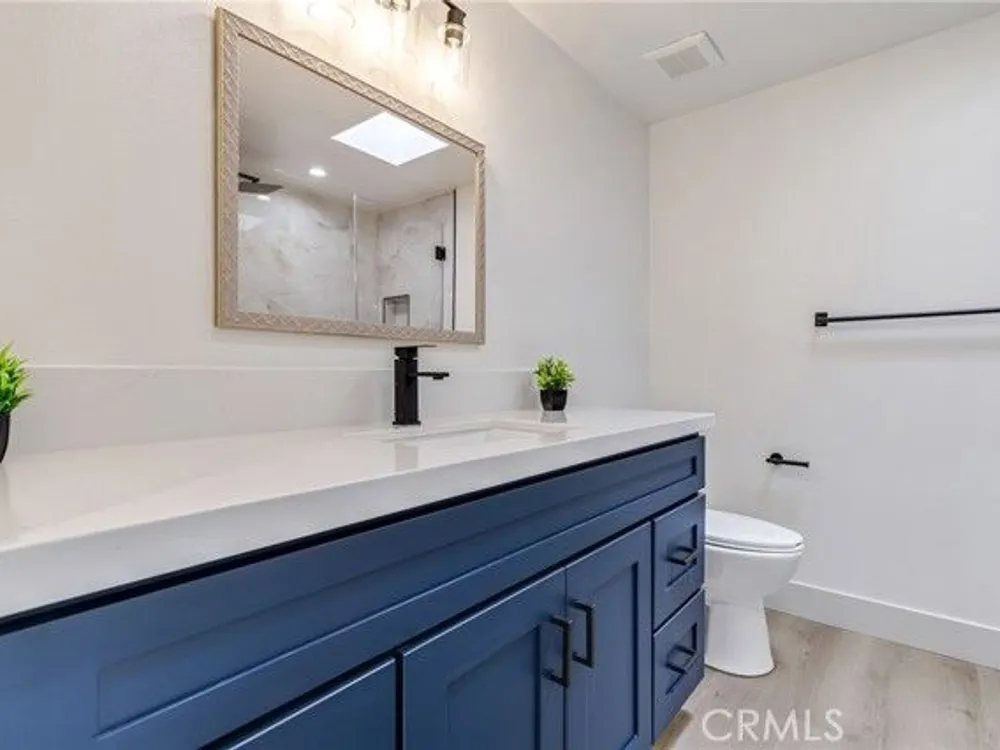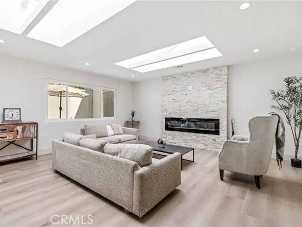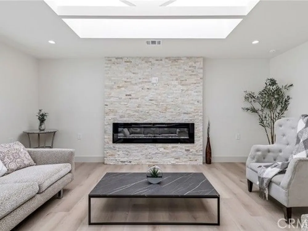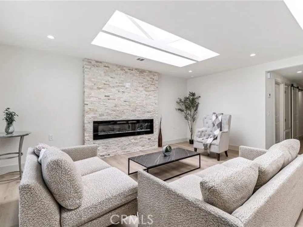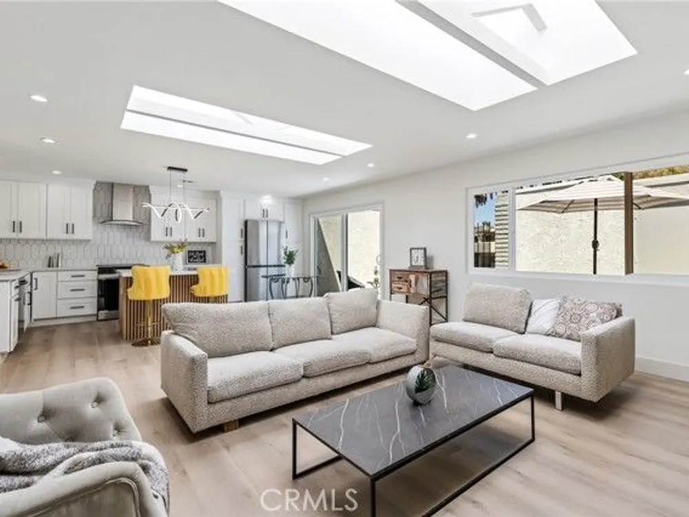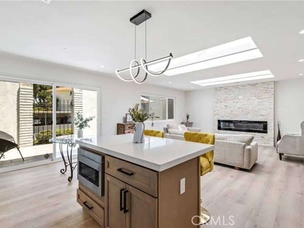 Welcome to the fabulous 55+ Community of Laguna Woods! If you are seeking a retirement community that offers an active lifestyle, 24-7 Gated Community, near world class beaches, top medical facilities, and high-end shopping areas like the Irvine Spectrum, you have found it. One of the most sought after and popular models inside the village, this high-end remodeled Cordoba Unit offers an open concept floorplan, a true master bedroom suite with direct private access to the master bathroom, two gorgeous skylights spanning across the living room and a large walled in courtyard Patio offering excellent space, storage closet and privacy. Facing a lush greenbelt laden with mature trees and sidewalks, this end unit Cordoba has a very private feel to it with the front door hidden in the covered entry area secured by an iron gate. Inside this gorgeous remodeled condo you'll find recessed lighting, luxury vinyl plank flooring, new double pane windows and slider, stacked washer and dryer closet, custom skylights in living room, hearth-stone TV mantle customized for cable tv hookups and CENTRAL AIR throughout. Additional skylights can be found in each bathroom proving ample natural light. The kitchen has been re-configured and completely remodeled to feature a custom island fitted with drawers, cabinets and a built in microwave. All brand new appliances including Fridge, dishwasher, hot water heater, stacked washer & dryer set, garbage disposal, along with quartz countertops, stylish backsplash to compliment, and under cabinet lighting and a stainless steel farmhouse sink. Plenty of open parking spots in front of unit in addition to the nearby assigned carport with additional storage. Laguna Woods Village is a Golfers Haven featuring 27-holes of championship golf which includes an a 9-Hole Par 3 course in addition to the 18-hole course. Residents are allowed to drive within the community in their golf carts as well. Other amenities include: 24-hour gated community with attendant, bus transportation, Equestrian center, 10-tennis court complex, pickle ball courts, Laguna Woods Village is close to beaches, shopping, restaurants, freeways, toll-roads, and medical facilities. Your monthly HOA dues include: water, trash, basic cable, landscaping, insurance and much more. Located only 6 miles from world class Laguna Beach and a couple miles from Irvine Spectrum makes this community a special place to live. This one-of-a-kind home won't last long!
