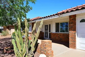 Wonderful 3 bedroom/2 bath, split floorplan in the premier 55+ community of Sunland Springs Village! The great room has vaulted ceilings, overlooks the patio, & has space for formal dining! Plantation shutters throughout the home & sunscreens! The kitchen boast dark cabinets, white countertops & a breakfast nook for casual dining. Primary suite offers dual sinks, & a generous walk-in closet! Bedroom 2 is currently being used as a den, has built in bookshelves & a walk-in closet. 3rd bedroom has nice size closet as well - lots of storage space. The private backyard includes an extended patio with plenty of room to relax & entertain! The home has Tesla Solar Panels to help reduces utility costs, New AC 2023, New HW Heater 2024, and a 30 amp drop plug at end of driveway.