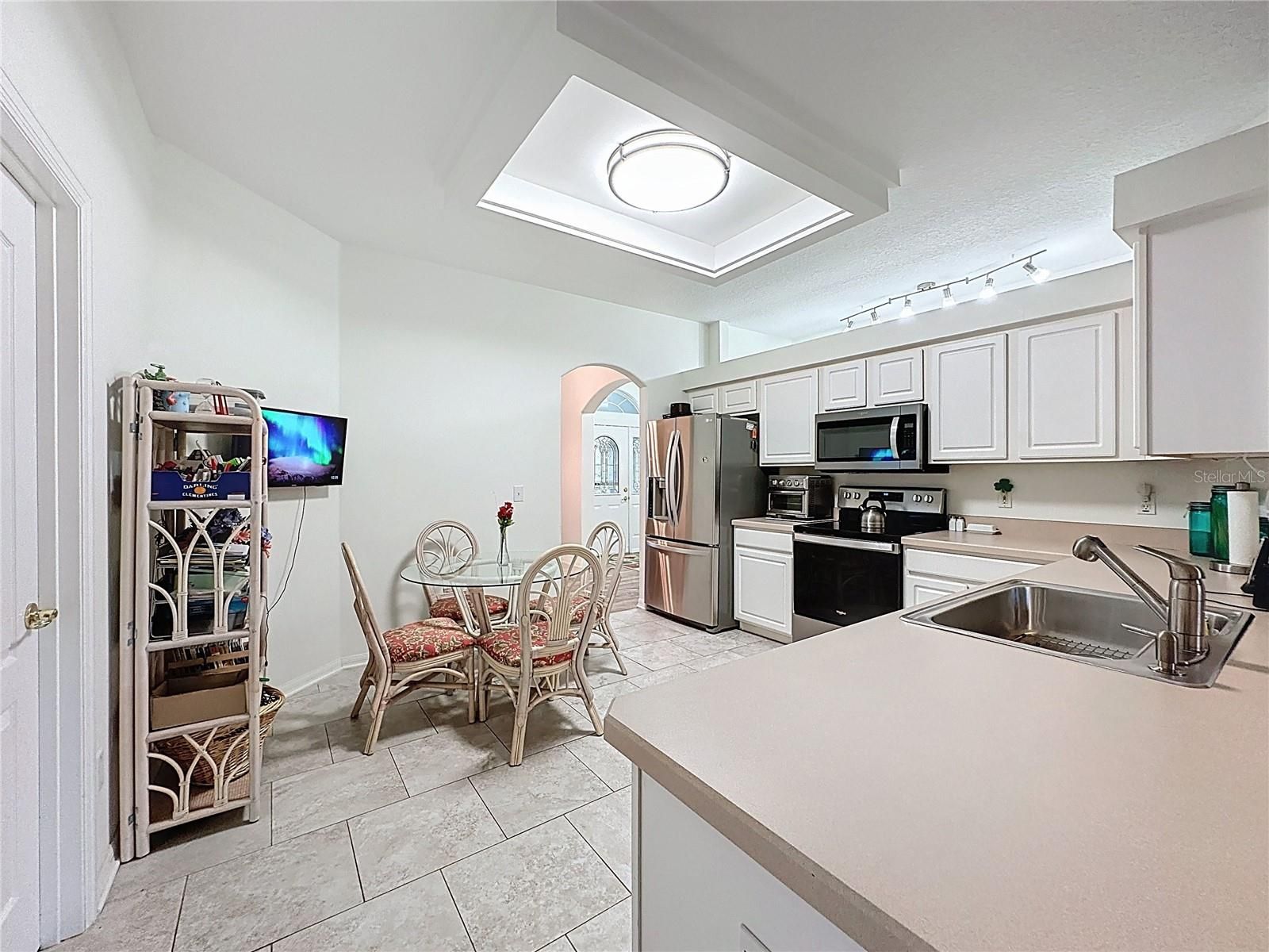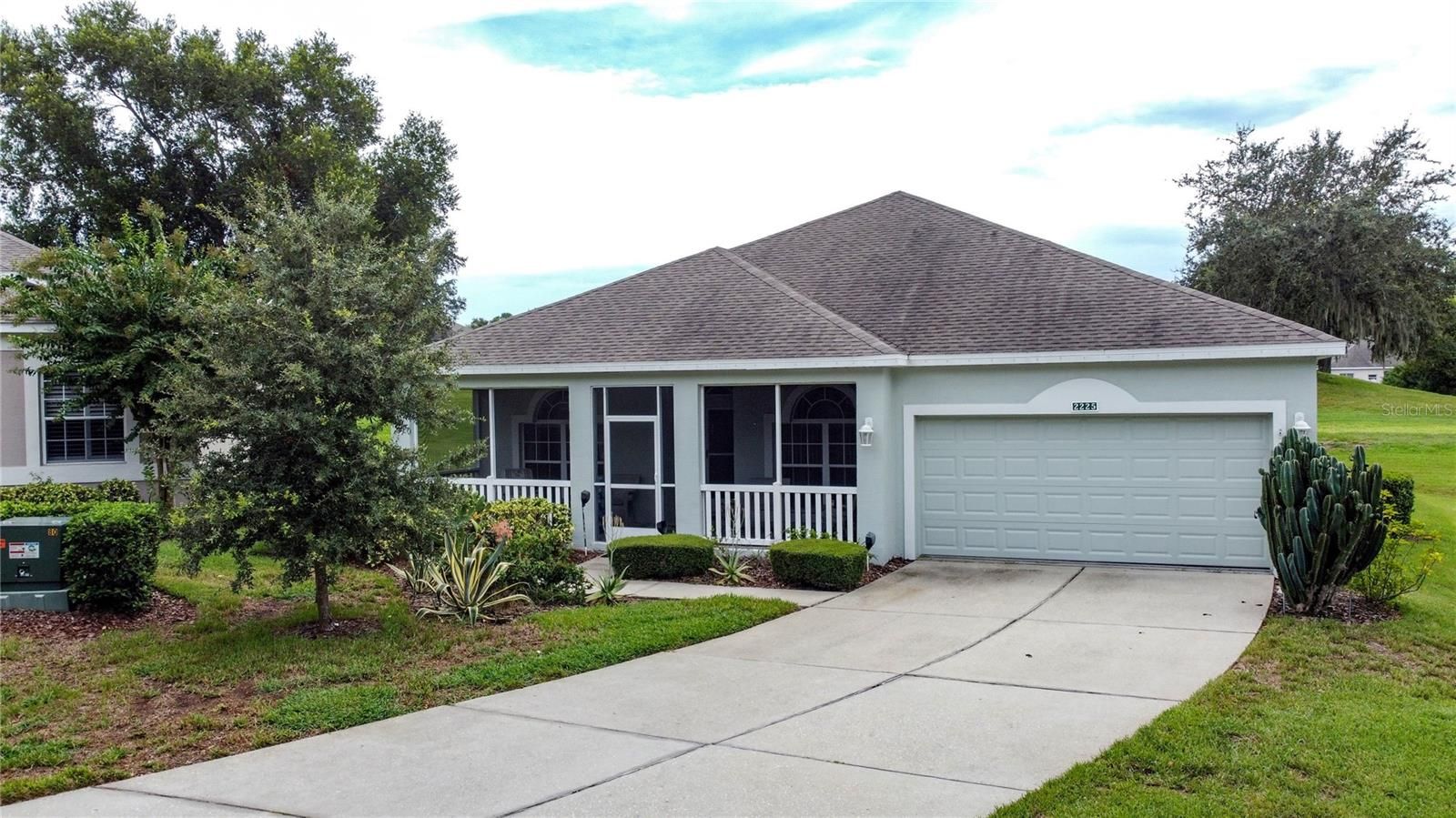 **Great Price Improvement!** St Clair model on the Golf Course located in a very quiet cul de sac. This particular home has the larger screened - in front porch. All new stainless steel appliances bought about 2 yrs ago. New roof in March2016 and HVAC change out in April 2022. The inside of the home has been painted in all one neutral color. There is tile in all the rooms except the 2 bedrooms that have carpet. The Primary bathroom has undergone a major remodel - the tub was removed and a large no lip walk- in handicap accessible shower that can accommodate a wheel chair was installed. This shower has 2 separate lines - one for stationary shower head and one for a hand held. The guest bath has a new vanity, comfort height toilet and an additional light over the tub. The garage is 2 ft deeper than the regular model and can fit a large truck. There is also an overhead pulldown screen in the garage. The lanai has a new fan/light and switch. The lanai also has UV resistant screens. A new whole house surge protector as added in 2025. Rescreened 90% of the windows on the East side & 80% of the windows on the West side. The Golf Cart is negotiable. The furniture is also negotiable. Kings Ridge is a 55 Plus gated golf community located in the rolling hills of Clermont, FL. Enjoy the Royal life style in the multi-million $ clubhouse with 3 heated pools, spas, tennis & pickle ball courts, billiards, shuffle board, shows, Bingo, cards and clubs galore. The monthly maintenance fees include: lawn maintenance including trimming of shrubs, care of irrigation system & irrigation water, internet, TV & home phone thru Fiibernow/Opticaltel , maintenance of roads and outside painting of home every 7 years. Take your golf cart to the Kings Ridge Plaza where you can do your grocery shopping, banking or dine out. Approximately 30 minutes to Disney Parks or Universal Studios.