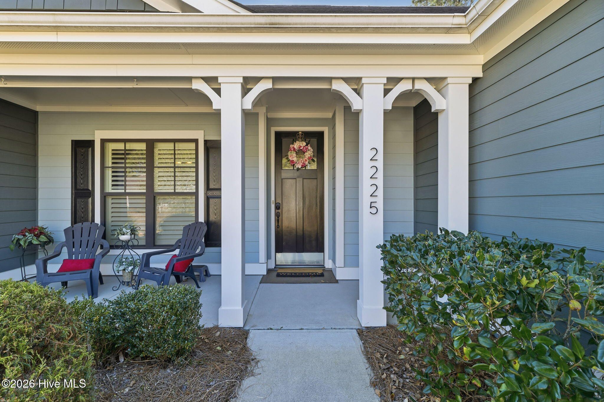 Welcome home to this beautifully upgraded 3-bedroom, 3-bath residence in the highly desirable Park Landing neighborhood of Brunswick Forest, offering 2,344 square feet of thoughtfully designed living space filled with light, style, and comfort. From the moment you arrive, the covered front porch and lush, mature landscaping set the tone for what's inside. The open, light-filled interior showcases hardwood floors, elegant box and wainscoting moldings, plantation shutters, and seamless flow throughout. The kitchen is a standout with a granite island, tile backsplash, ample cabinetry, and includes generous pantries with custom wood shelving, perfect for both everyday living and entertaining. The inviting living room features a natural gas fireplace with a marble surround and hearth, creating a warm and sophisticated gathering space. Telescoping doors open to the porch, blending indoor and outdoor living effortlessly. The spacious primary suite offers a serene retreat with a trey ceiling, spa-like bath featuring a dual granite vanity, custom walk-in tiled shower, and oversized walk-in closet with custom shelving. Two additional bedrooms and a full bath are conveniently located on the main level, enhanced by a pocket door for added privacy. Upstairs, a versatile bonus room with brand-new carpeting and a full bath provides the perfect guest suite, home office, or media room. Additional highlights include two floored attic spaces, a two-car garage, and a private outdoor patio surrounded by beautifully maintained, professional landscaping that includes Zoysia sod for the perfect enchanted forest feel. Located in one of Brunswick Forest's most sought-after communities, this home combines timeless upgrades, flexible living spaces, and exceptional outdoor areas—an ideal place to enjoy the coastal lifestyle.