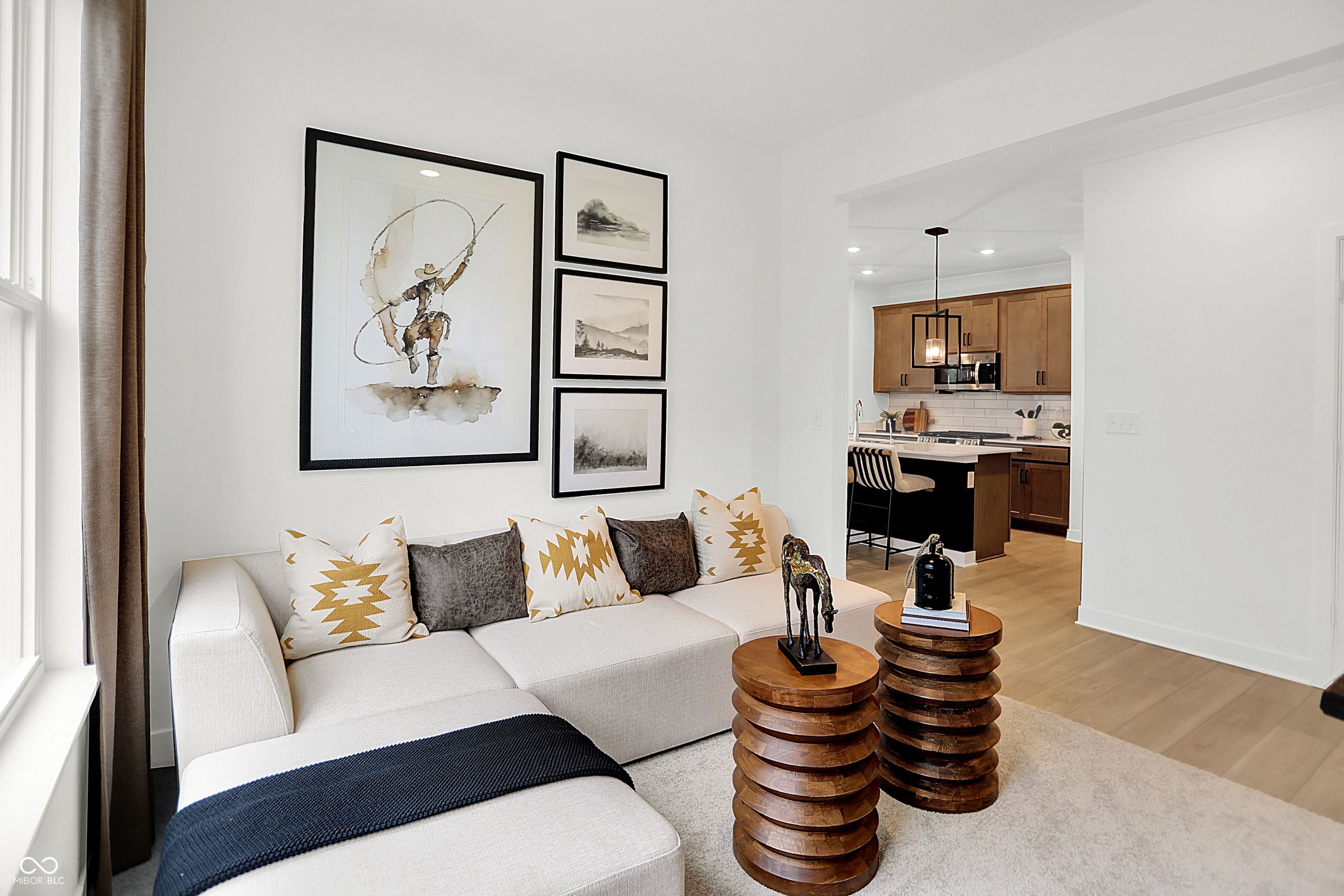 Grey Hawk is a community offering new single-family homes with onsite trails now selling in Plainfield, IN. Grey Hawk residents are less than a mile from a major highway, grocery story and medical facility for everyday essentials. 16 miles away is downtown Indianapolis, home to a vibrant shopping, dining and entertainment scene. A gracious foyer leads into the open-concept layout of this new single-family home, which connects a kitchen featuring a large center island and pantry, a Great Room and a dining room. An adjacent covered patio is the perfect spot to relax and enjoy the outdoors. Flex space is ideal for an office, craft room or even an at-home tasting room. The generously sized owner's suite boasts a luxurious spa-inspired bathroom and large walk-in closet directly connected to the laundry room for added convenience. A two-car garage with additional storage is included. *Photos/Tour of model may show features not selected in home.
