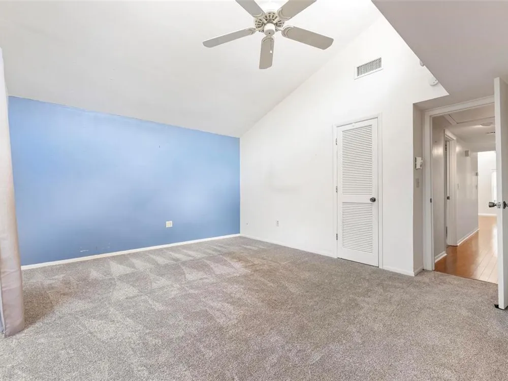 - Cathedral Ceiling(s), Ceiling Fan(s), High Ceilings, L-Shaped Dining Room, Main Level Primary, Solid Surface Counters, Vaulted Ceiling(s), Walk-In Closet(s), Window Treatments