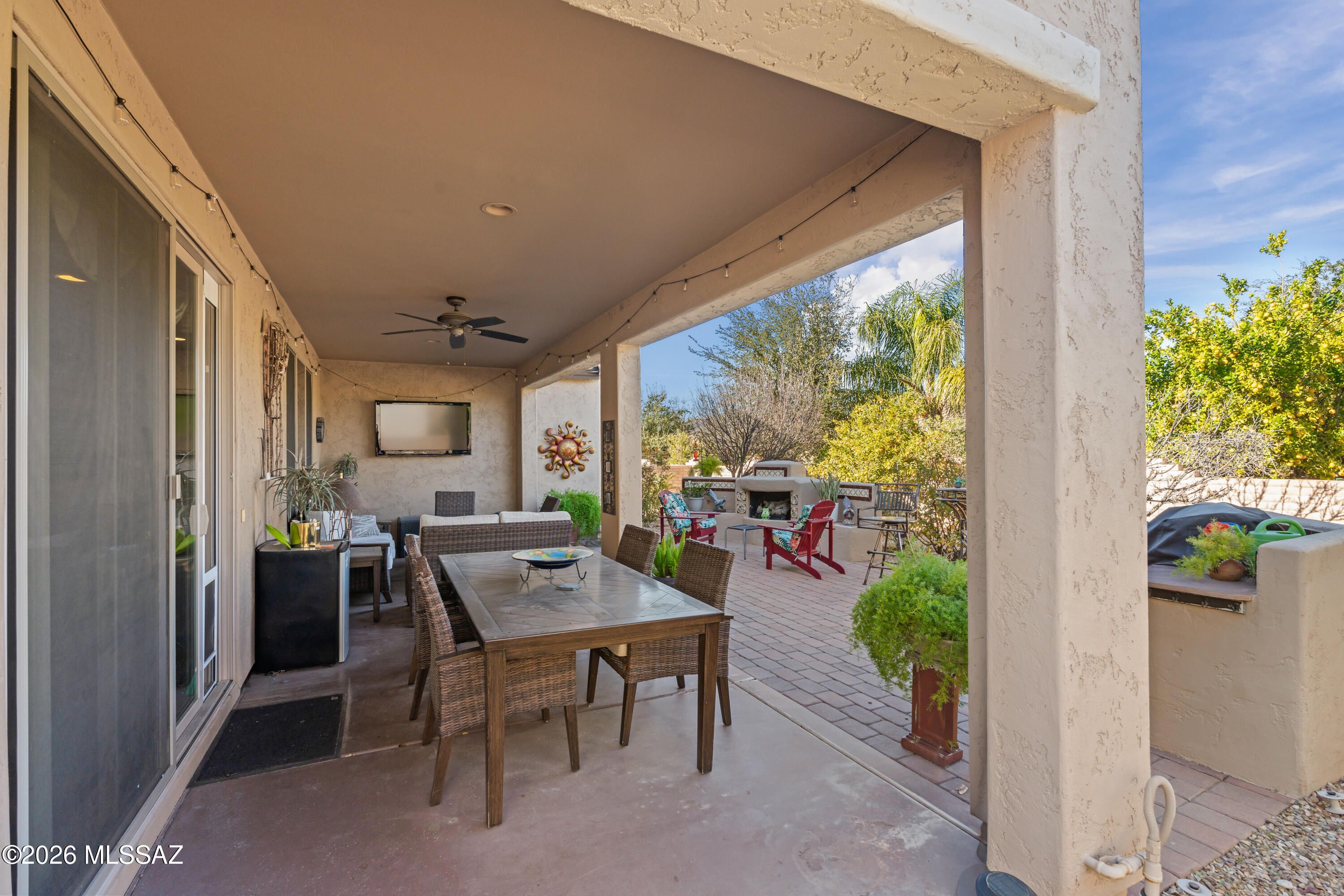 Living is easy in a Robson Community! Quail Creek offers more amenities than you'd ever dream - 2 clubhouses with many clubs and activities, pickle ball, golf, restaurant, and much more. This expanded Baja floorplan offers the perfect blend of comfort for full-time or easy part-time living. Large bedrooms, and the den w/barndoors is always a bonus to have. The kitchen is the perfect place to prep your specialties while entertaining your guests at the kitchen island. Bring them on out to the patio to watch TV (that stays with the sale) while finishing on the outdoor BBQ island. Garage has epoxy flooring and a deep sink. Come see all that Quail Creek has to offer! (Seller is a licensed Appraiser in Arizona. Seller is also a licensed Appraiser and Real Estate Broker in California.
