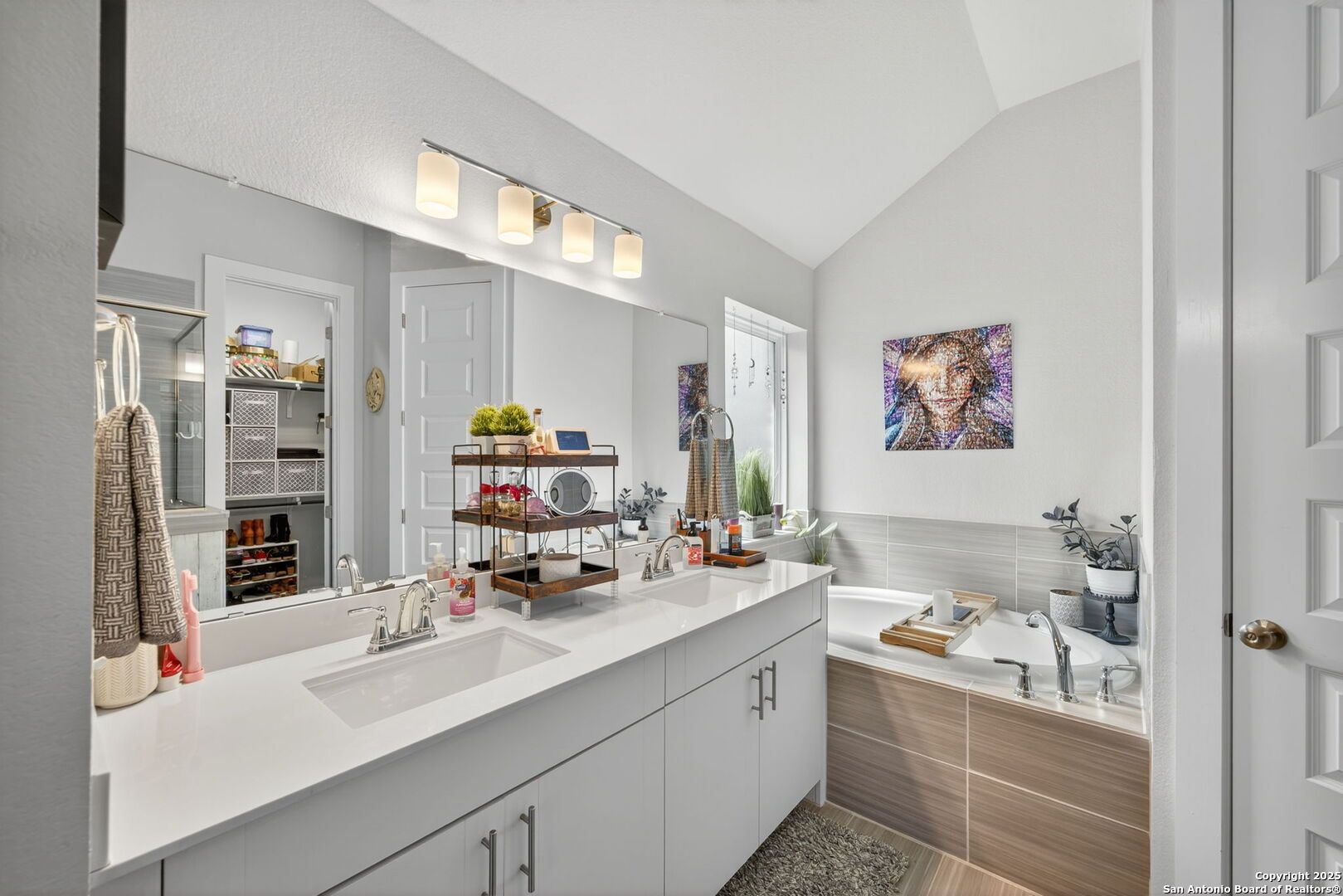 LOCATION AND LUXURY AWAIT YOU! Welcome to your Hill Country dream home in Veramendi, one of New Braunfels' most sought-after master-planned communities! This stunning Scott Felder one-story home blends modern style with family comfort, featuring an open-concept layout, a versatile flex room, and a chef's kitchen with quartz countertops, gas range, and stainless-steel appliances. The spacious family room is filled with natural light, while the primary suite offers a relaxing retreat with dual vanities, soaking tub, and walk-in shower. Step outside to your private backyard oasis-a custom-built 18'x30' two-level deck with an 8-person hot tub, covered patio with gas hookup, and fresh landscaping. Updates include an 8'x6' shed, water softener, whole home water filtration system and Aquasential reverse osmosis drinking water filtration system all by Culligan. Additional updates include a tankless water heater, garage epoxy floor 'tuxedo' coating, built-in work bench in garage, custom paint throughout the main living areas, plus ceiling fans throughout. Light wood-like flooring, soaring ceilings and an abundance of windows create a bright, airy atmosphere throughout the open-concept kitchen, dining and living areas. You will love the resort-style community pool, jogging trails and parks, plus the prime location near Landa Park, TOP-RATED SCHOOLS and quick access to San Antonio and Austin!