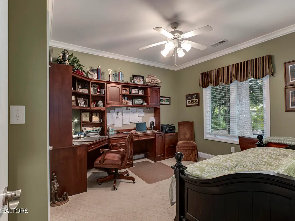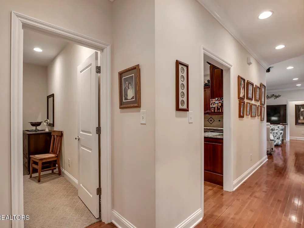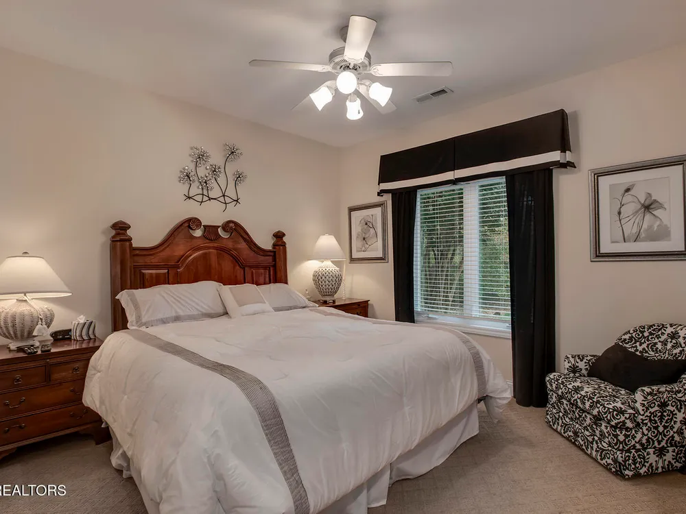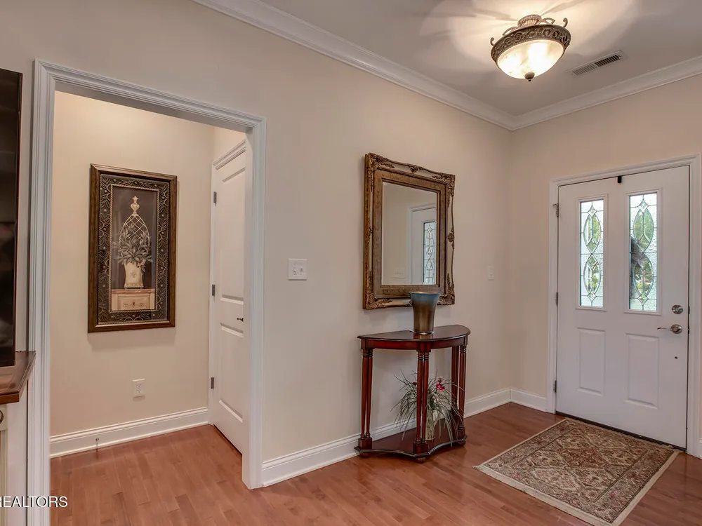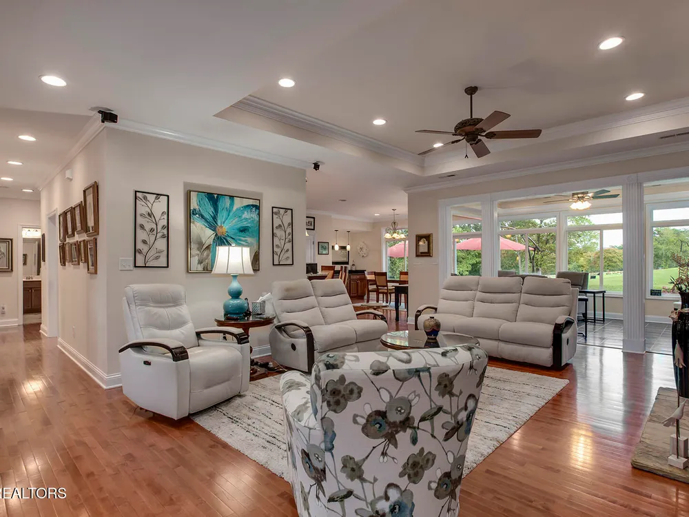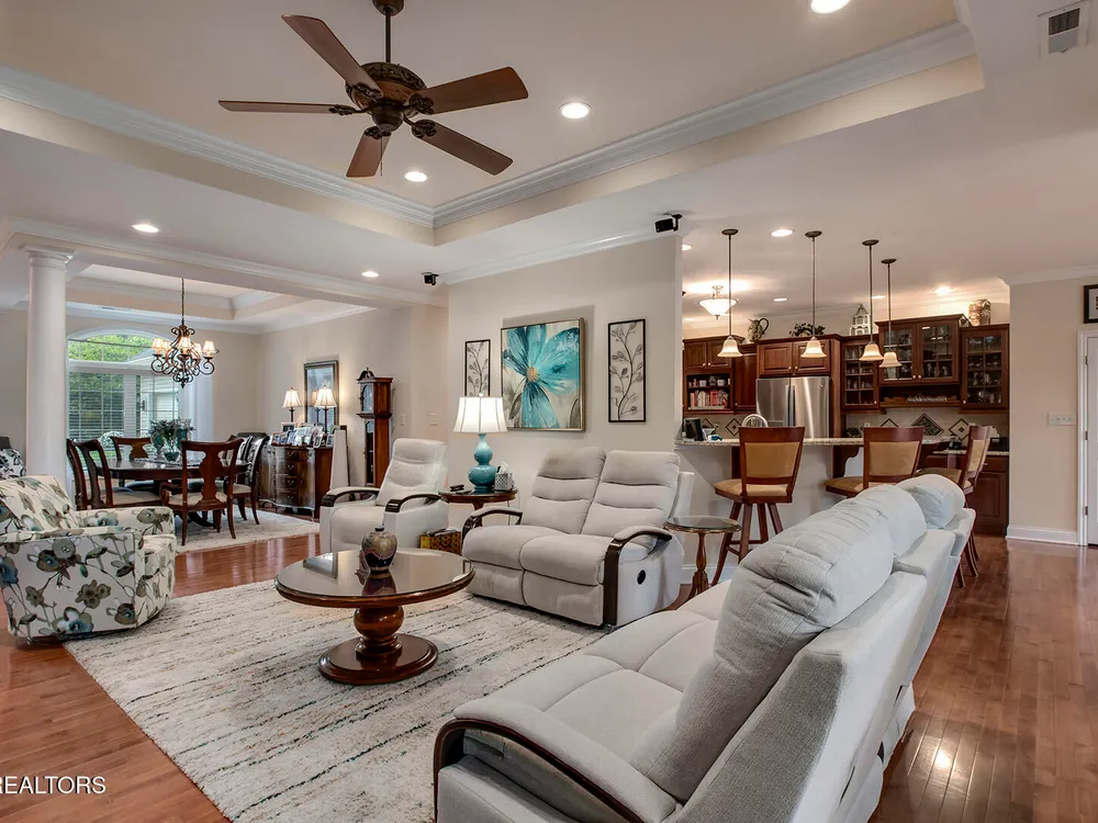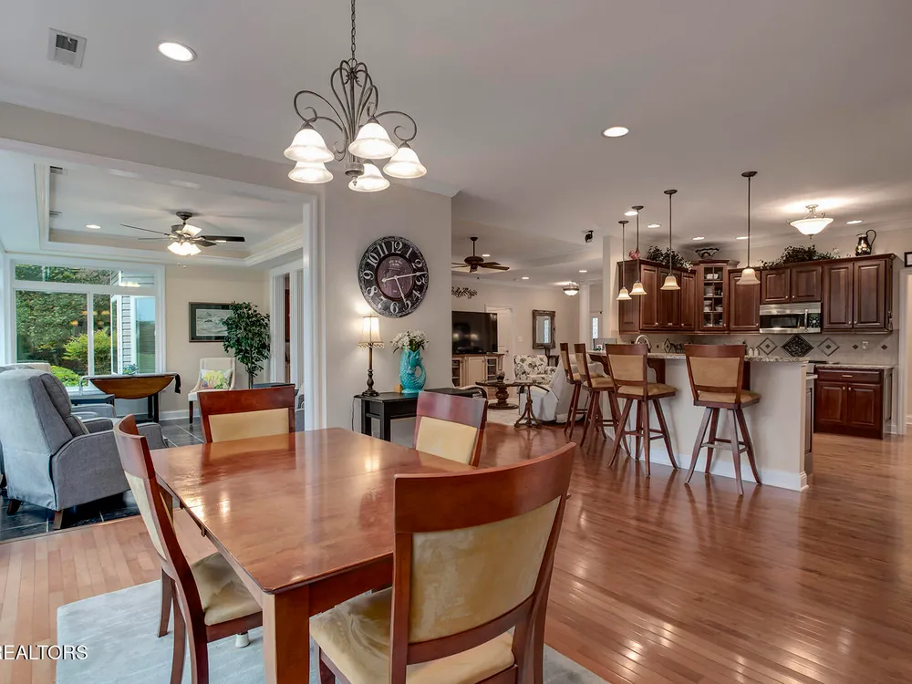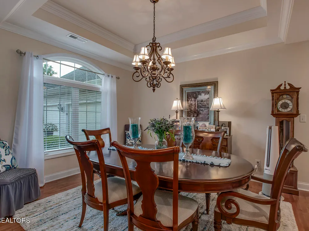 Location, location, location! This beautiful custom-built home is on the market for the first time in Tellico Village. Offering 2,700 square feet of living space, it's ideally situated on the Toqua golf course with easy access to putting greens, the driving range, Toqua restaurant, and Toqua Pavilion—where plenty of music and activities take place. If you'd rather drive your golf cart, there's convenient access on the right side of the home. The property features a large three-car garage with ample room for a workshop, golf cart, and vehicles. Inside, hardwood floors grace the entryway, dining room, and kitchen, while tray ceilings enhance the dining room and master bedroom. Crown molding runs throughout the home, complementing a great open floor plan that includes a stunning floor-to-ceiling stone fireplace flanked by custom cabinets on both sides. The custom kitchen boasts cabinetry with soft-close drawers, a raised bar area with plenty of room for stools, a wet bar with wine cooler, extra built-in cabinets, stainless steel appliances, and a spacious pantry. The eat-in area provides awesome views of the golf course. Off the living room, a lovely sunroom with tile floors offers even more scenic vistas, and a patio extends from both the sunroom and breakfast area. With three bedrooms in a split plan for guest privacy, plus two and a half baths, the home is designed for comfort. The nice large laundry room includes space for an office and a laundry tub. The master suite features tray ceilings, double vanities with a makeup area, a jetted tub, walk-in shower, and a very large closet. Outside, enjoy a sprinkler system and professional landscaping. Buyer to verify square footage.