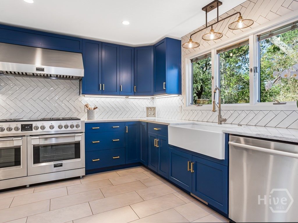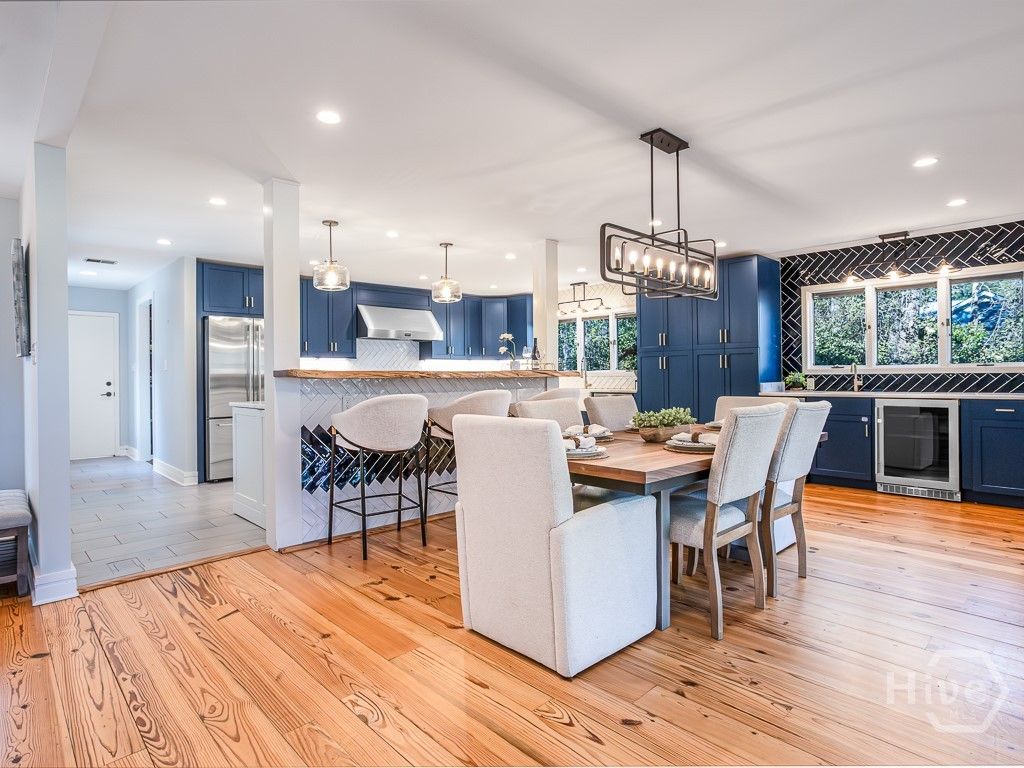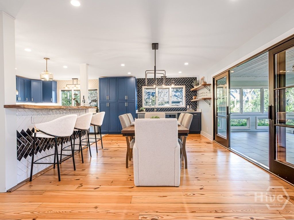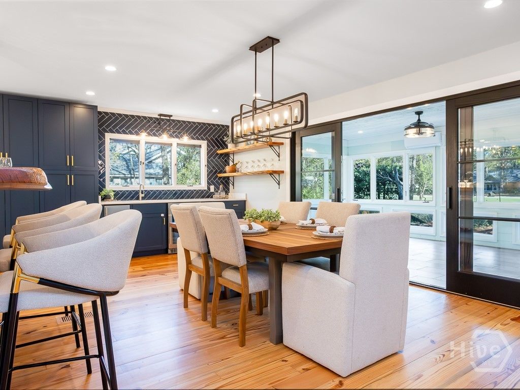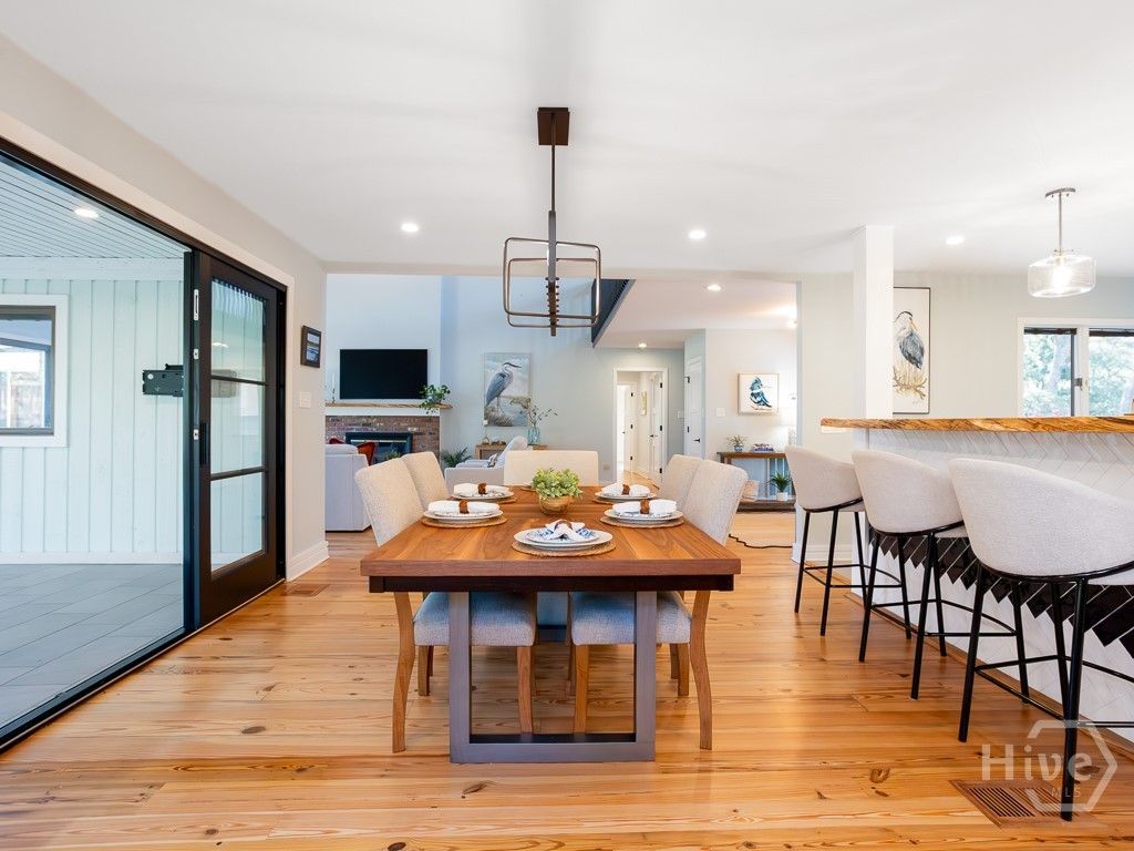 Double lot premium, move-in ready Landings home recently remodeled by Josh Waters Building & Design. The residence sits on over a half-acre of John Glenn landscaped property with quiet views of #2 Terrapin Point tee box & lagoon. A Monaco paved driveway circles the entry to an art deco homesite surrounded by ancient live oaks. The floorplan features heart pine floors throughout a renovated main level with new kitchen & wet bar, laundry room, powder room, guest bedroom with full size bath + an oversized primary suite with its own ensuite bathroom. Kitchen highlights include ceiling height backsplash tile, 48” Fulgor gas range, warming oven, Monogram refrigerator, marble & red oak tops & custom cabinetry; ensuite highlights include walk-in steam shower, standalone tub, Marsh brand double vanity and walk-in closet with quartzite topped island. 2 additional ensuite bedrooms upstairs complete the floor plan. A sunroom and 2 Timbertech laced porches (covered & non) extend hospitality space with views. All major home maintenance (roof, HVAC, 2 tankless gas water heaters, encapsulated crawlspace, paint) and bonuses (landscape lighting, irrigation, well) are new. Within the gated Landings community, the location provides daily lifestyle opportunities: 5 minute golf cart ride to Palmetto club for dining & club sports or to Delegal Marina and the iconic Intercoastal Waterways.