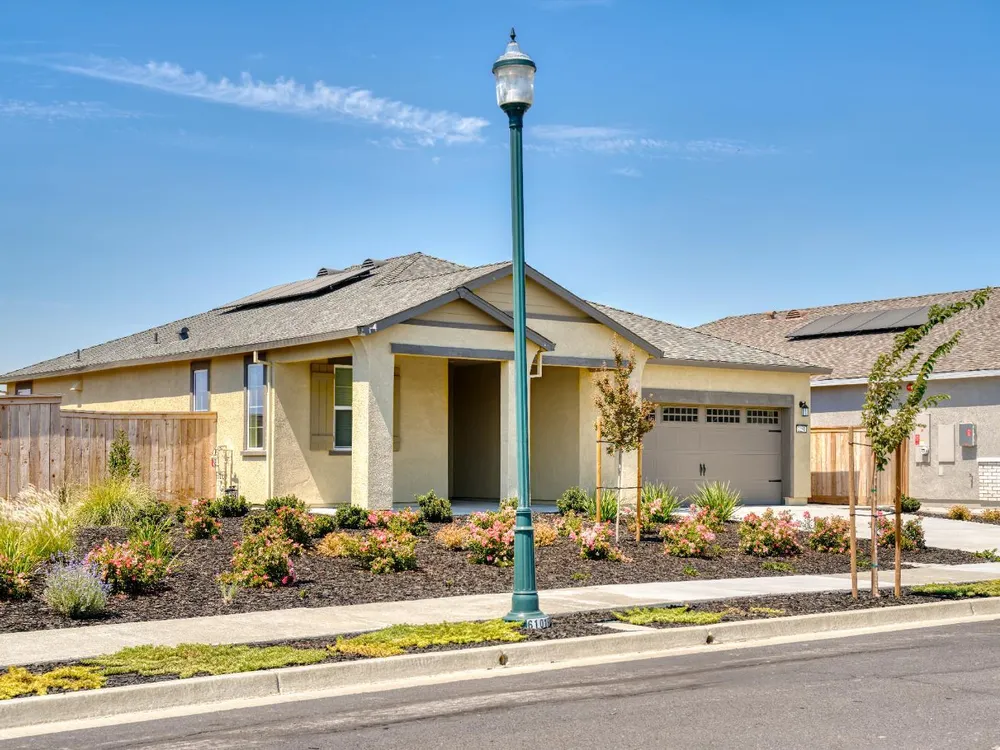 Boasting charm and modern comfort, this beautifully upgraded single-story home is nestled in the vibrant 55+ community of Summit at Liberty in Rio Vista. Designed with both style and function in mind, the open layout includes two spacious bedrooms, two full bathrooms, a generous family room, and inviting covered outdoor areas perfect for relaxing or entertaining. Just a short walk away, you'll find incredible resort-style amenities including a sparkling pool, clubhouse, fitness center, and more, making every day feel like a getaway. This home also comes packed with premium features at no extra cost, such as energy-efficient Whirlpool® appliances, gleaming granite countertops, designer wood cabinetry with crown molding, a Wi-Fi-enabled garage door opener, included solar panels, and more!