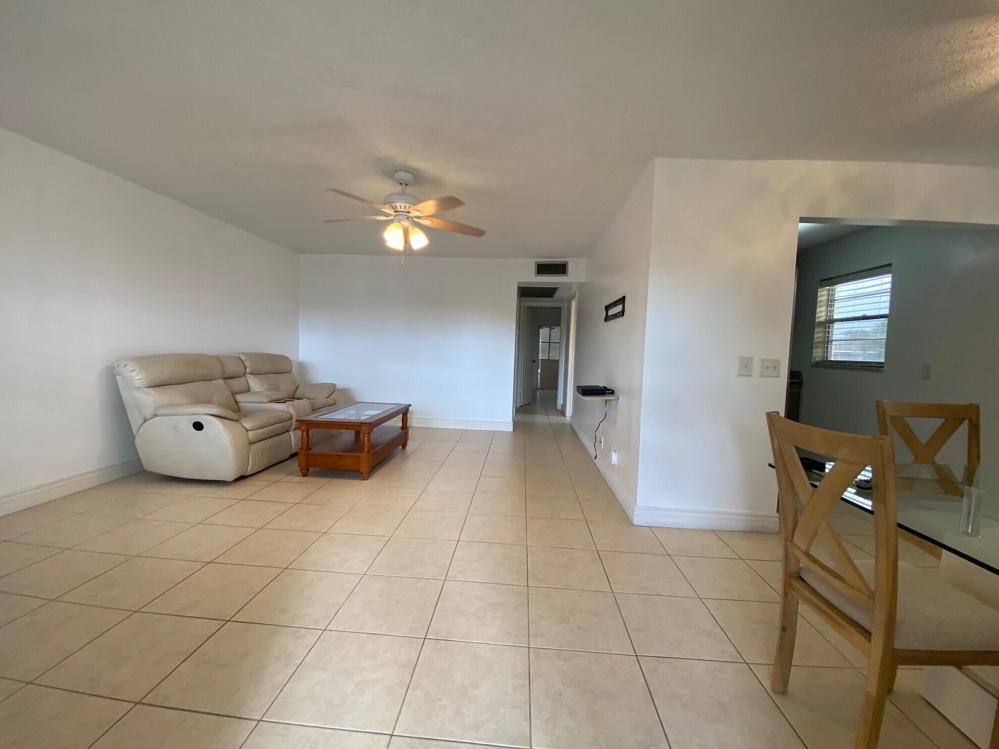 MOTIVATED SELLERS! Live the Florida Lifestyle in Century Village WPB! Beautiful light and bright second floor corner unit. Move-in ready, furniture included! Wonderful recent updates with premium appliances, granite and solid wood cabinets. Ceramic tile throughout including enclosed lanai. Newer A/C 2022. . Bathrooms feature newer vanities, toilets and a walk-in shower. Two bedroom layout features an opening in wall allowing you to use one as a Master bedroom sitting room or close the expandable doors to create two separate bedrooms. One bedroom has a walk-in closet and lanai has a storage closet as well. Building has second floor laundry.